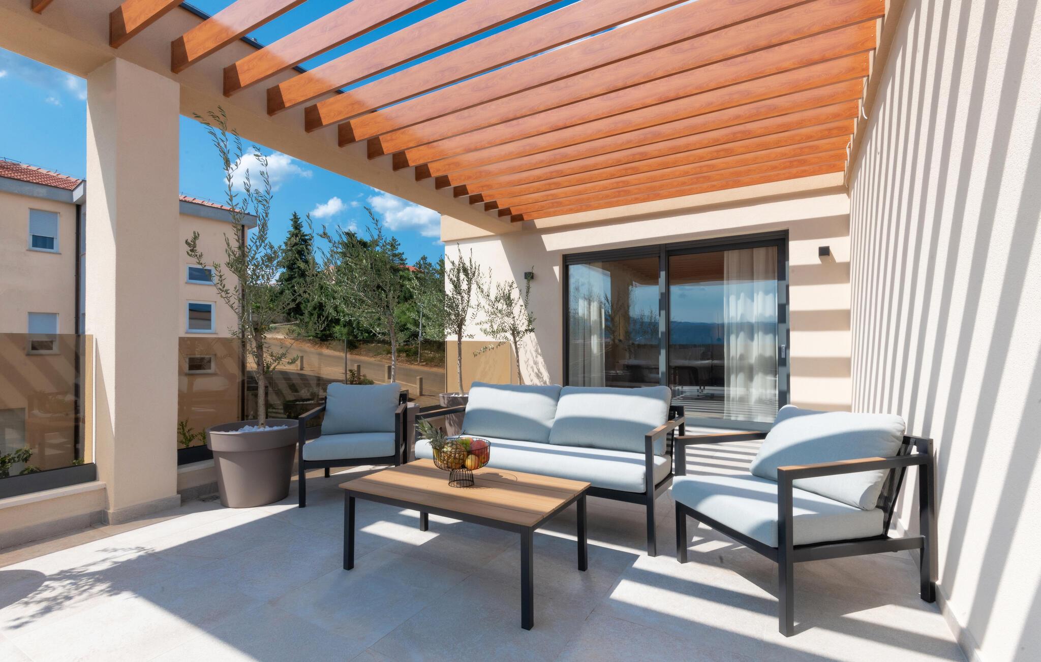 Start dagen med et spring i den smukke pool og nyd soltimerne i den velholdte udendørs oase. Læn jer tilbage på en af de hyggelige liggestole, eller spil en runde bordfodbold eller bordtennis med børnene. Lad de små udforske de mange legefaciliteter, såsom trampolinen og rutsjebanen. Saunaen med direkte adgang til poolen og spabadet giver ekstra afslapning. Om aftenen er den store terrasse det ideelle sted til at afslutte dagen med en traditionel kroatisk barbecue. I kan slappe af i den stilfulde stue, mens det elegante køkken indbyder til fælles madlavning.