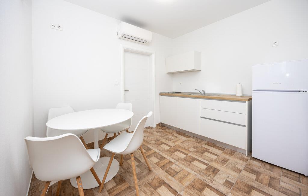 Denne moderne og venlige ferielejlighed med højt til loftet og rummelige værelser giver jer lige den komfort, I ønsker jer på ferien. Det hyggelige køkken, der er fuldt udstyret, indbyder til fælles madlavning, mens det komfortable opholdsområde er perfekt til afslappede aftener med spil og hygge. På ejendommen står en fælles grill til rådighed – ideel til at tilberede lækre retter under åben himmel, måske endda lokale specialiteter.