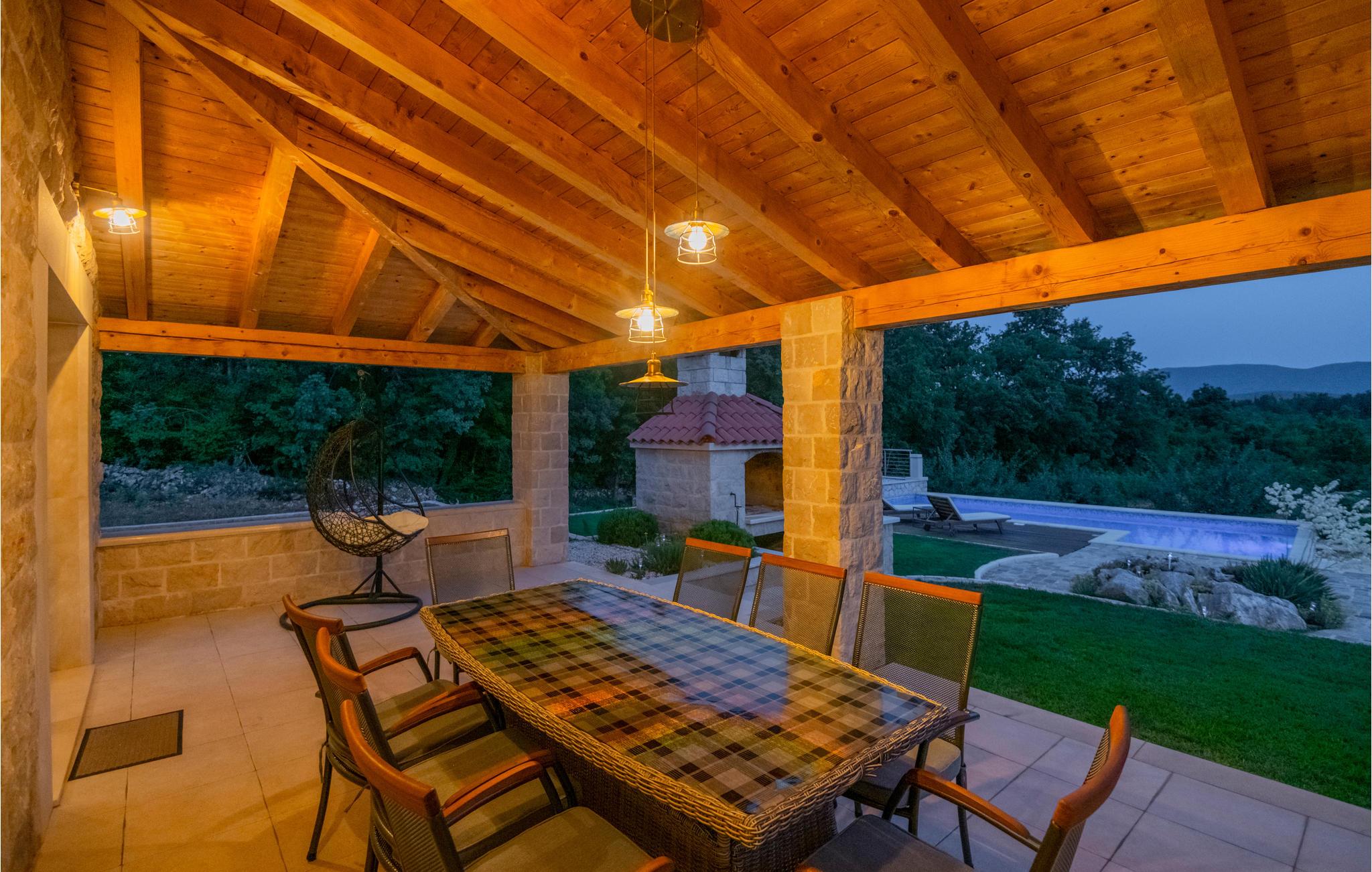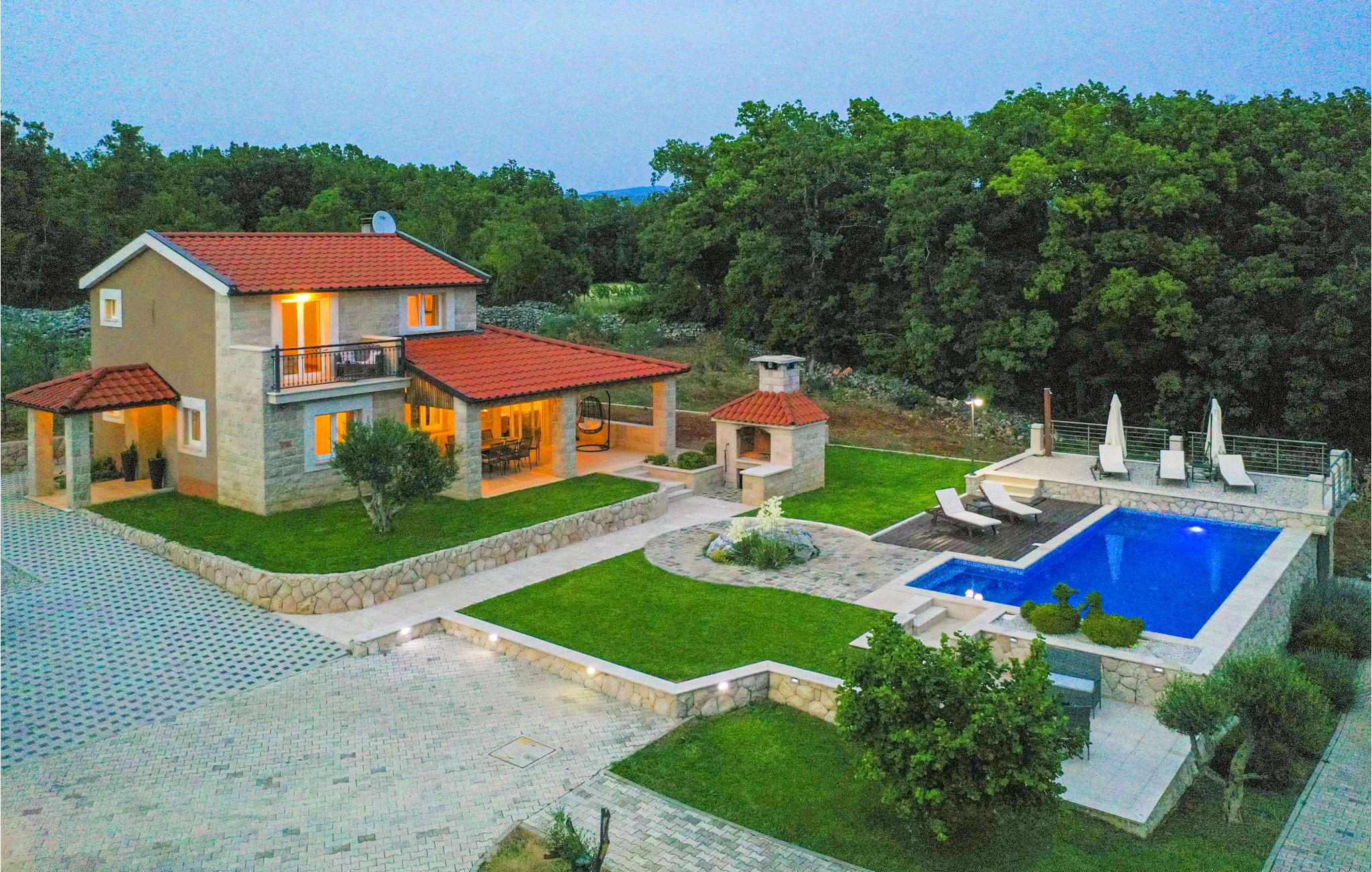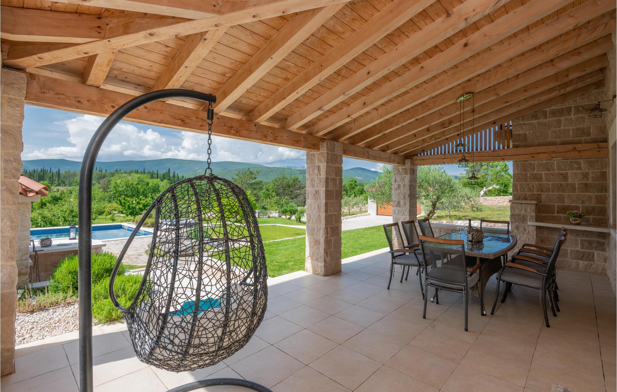 Dette skønne feriehus ligger i idylliske landlige omgivelser. Det er smagfuldt indrettet og omgivet af en grund med frugt- og oliventræer. Bag huset, med separat indgang er der et aktivitetsrum med dart, bordfodbold og PlayStation. Der hører også cykler med til huset, som I kan bruge til at udforske området på to hjul. Foran huset er der en overdækket terrasse med grill, herfra kan i nyde udsigten over Naturparken Biokovos nordside. På husets sydside er der en pool med massagedyser og legeredskaber til børnene. De sidste ca. 400 m op til huset er en grusvej. Det tager ca. 20 minutter at køre til Makarska.