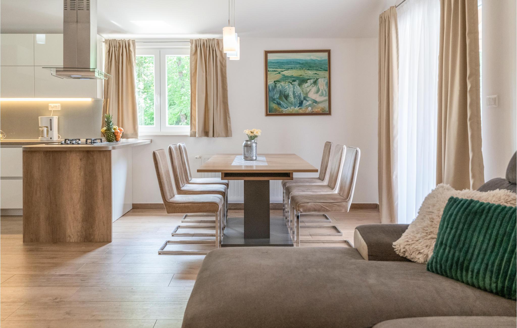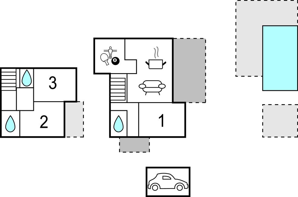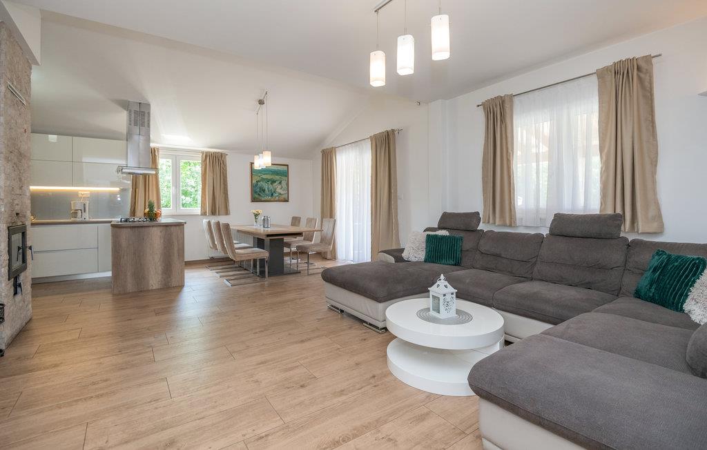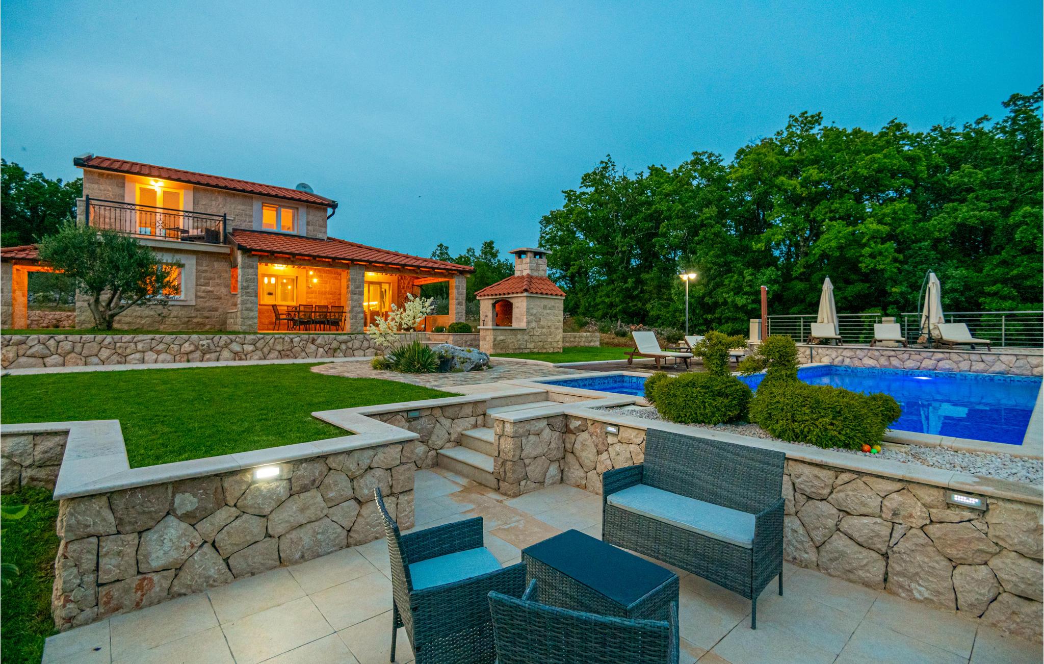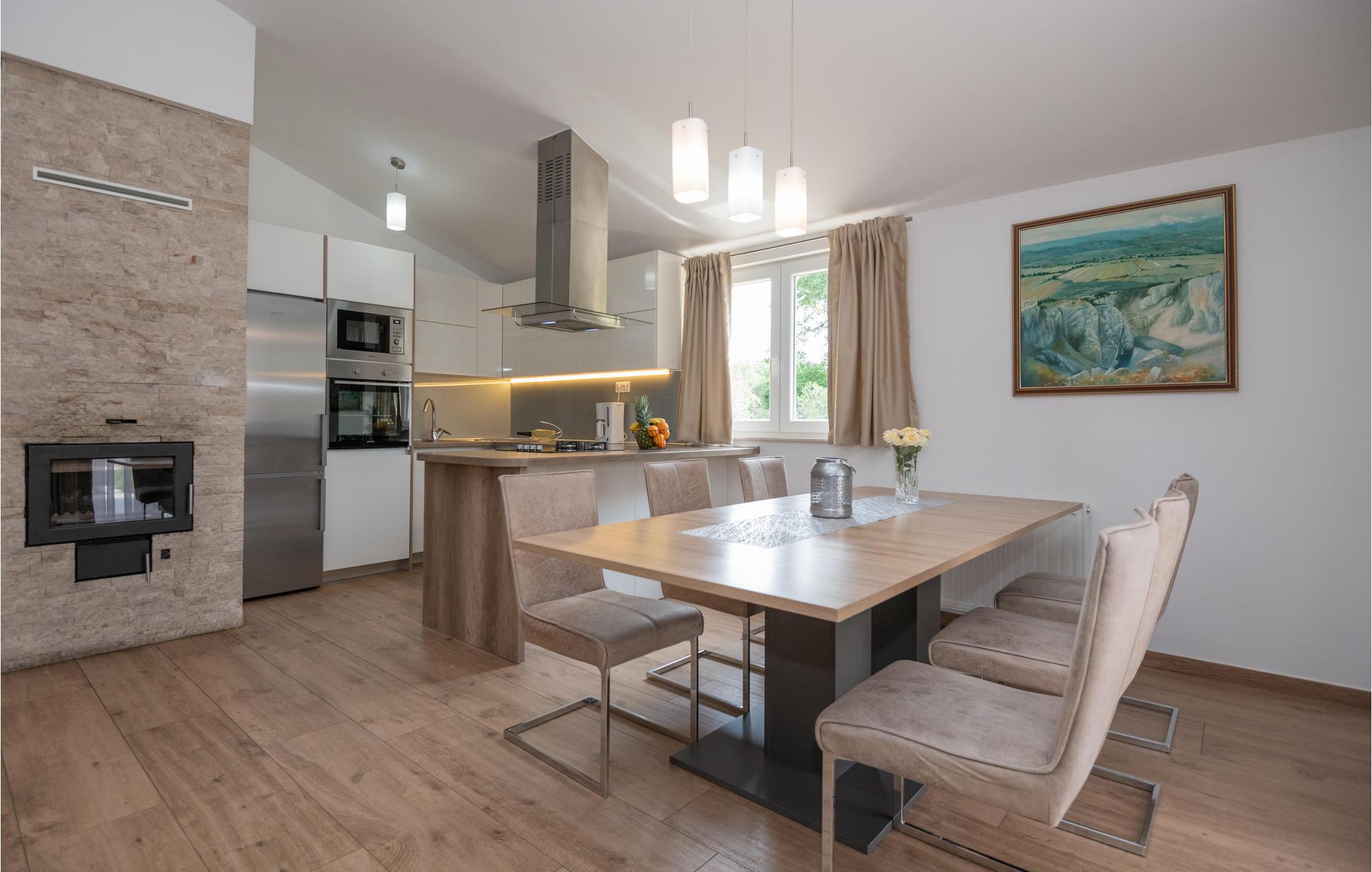 Dette skønne feriehus ligger i idylliske landlige omgivelser. Det er smagfuldt indrettet og omgivet af en grund med frugt- og oliventræer. Bag huset, med separat indgang er der et aktivitetsrum med dart, bordfodbold og PlayStation. Der hører også cykler med til huset, som I kan bruge til at udforske området på to hjul. Foran huset er der en overdækket terrasse med grill, herfra kan i nyde udsigten over Naturparken Biokovos nordside. På husets sydside er der en pool med massagedyser og legeredskaber til børnene. De sidste ca. 400 m op til huset er en grusvej. Det tager ca. 20 minutter at køre til Makarska.