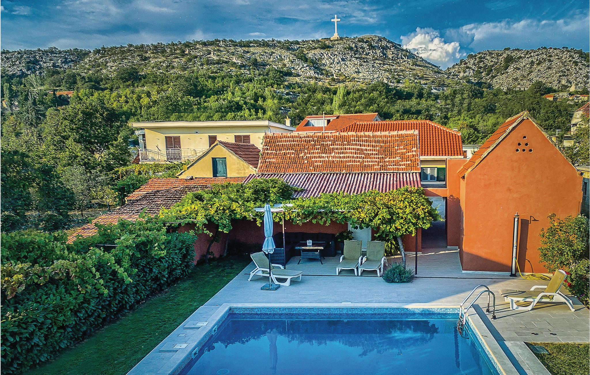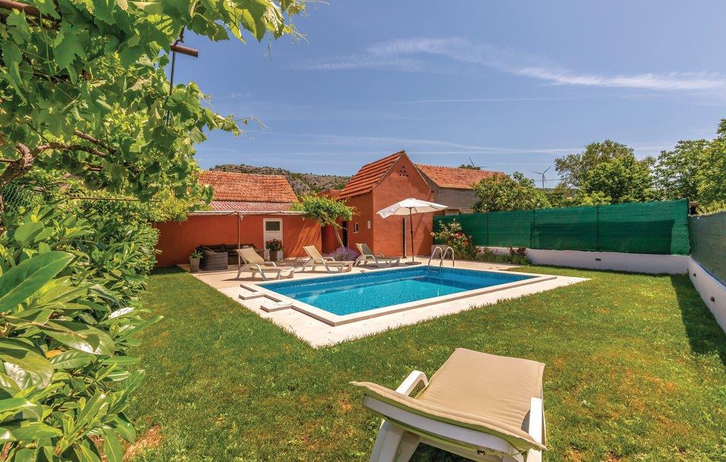 Hold en dejlig ferie i dette pæne feriehus med pool i det mellemste Dalmatiens bagland. Huset er smagfuldt indrettet og giver jer den nødvendige komfort til jeres ferie. Foran huset ligger der en dejlig terrasse med grill og et legeområde til børn. Poolen i haven foran huset har udsigt til naturparken Biokovo. Tag til de små byer Brela og Baska Voda med herlige kiselstrande. Floden Cetina er kun ca. 500 m væk. Centrum i den lille by med indkøbsmuligheder, restaurant og café når I efter ca. 2,5 km.