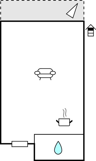 Opholdsstue/køkken 20m2 - 2 Sovepladser. (Dobbeltseng(e)).