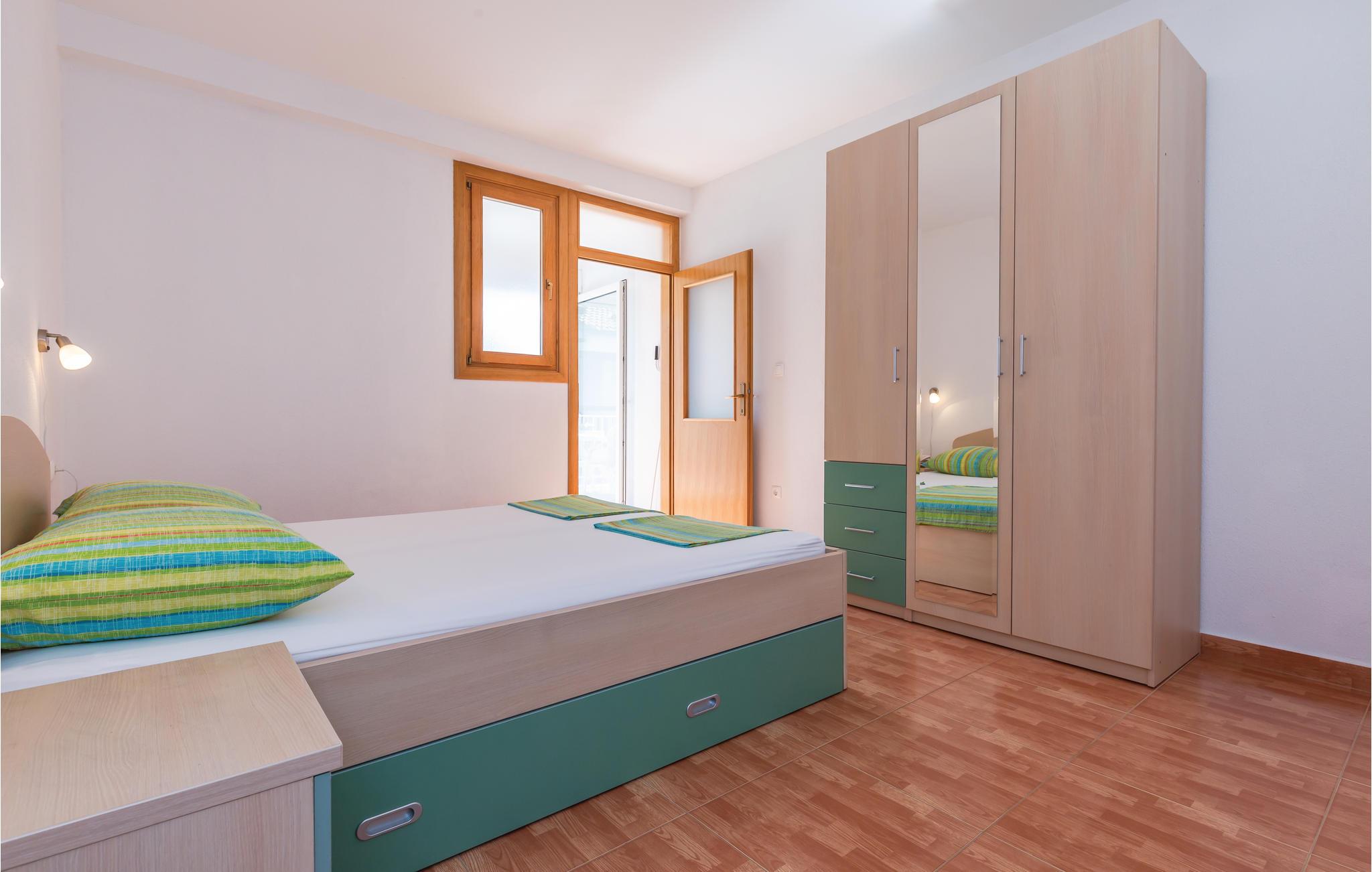 Disse ferielejligheder (CDE547-548) ligger på anden sal i en ejendom i den lille by Krvavica, mellem Makarska og Baska Voda. Lad jer fortrylle af den skønne riviera ved Makarska. Slap af på balkonen, med en herlig udsigt over byen Baska Voda. Lejlighederne er smukt indrettet og kan efter ønske bookes sammen, hvis I har brug for god plads. Foran huset er en grillplads med grill der bruges af alle husets gæster. Det tager kun få minutter at gå til den skønne familievenlige strand i byen Bratus. Holder I af kultur, sjove arrangementer, historie og vil have et godt udvalg af restauranter og cafeer, så besøg byerne Split og Trogir.