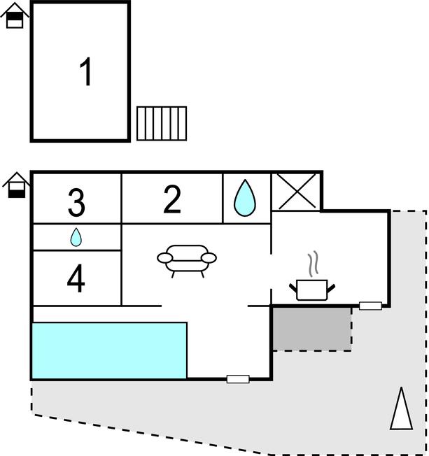 Badeværelse 4m2 (nr. 2) - WC. Varmt og koldt vand. Bruser