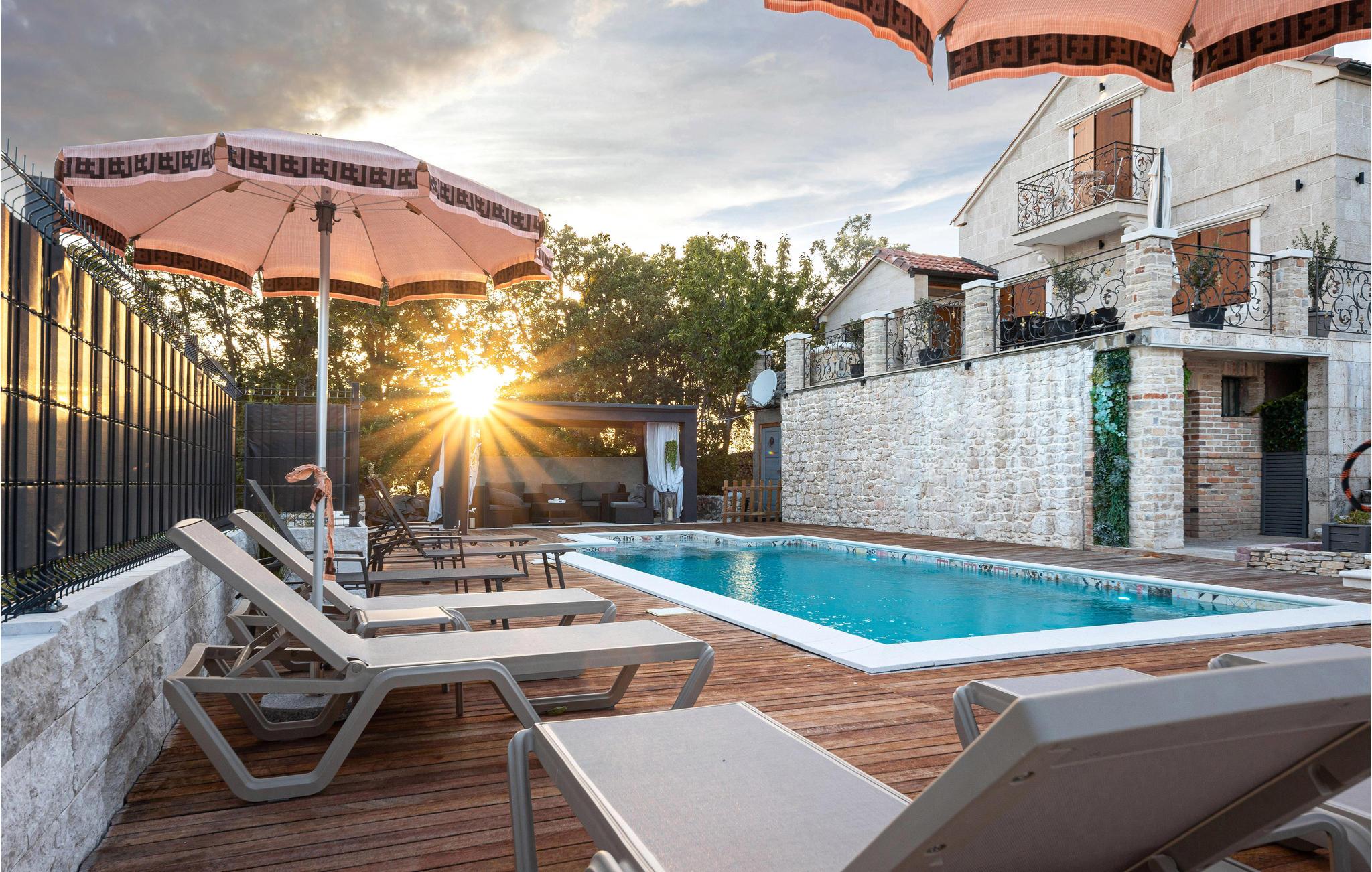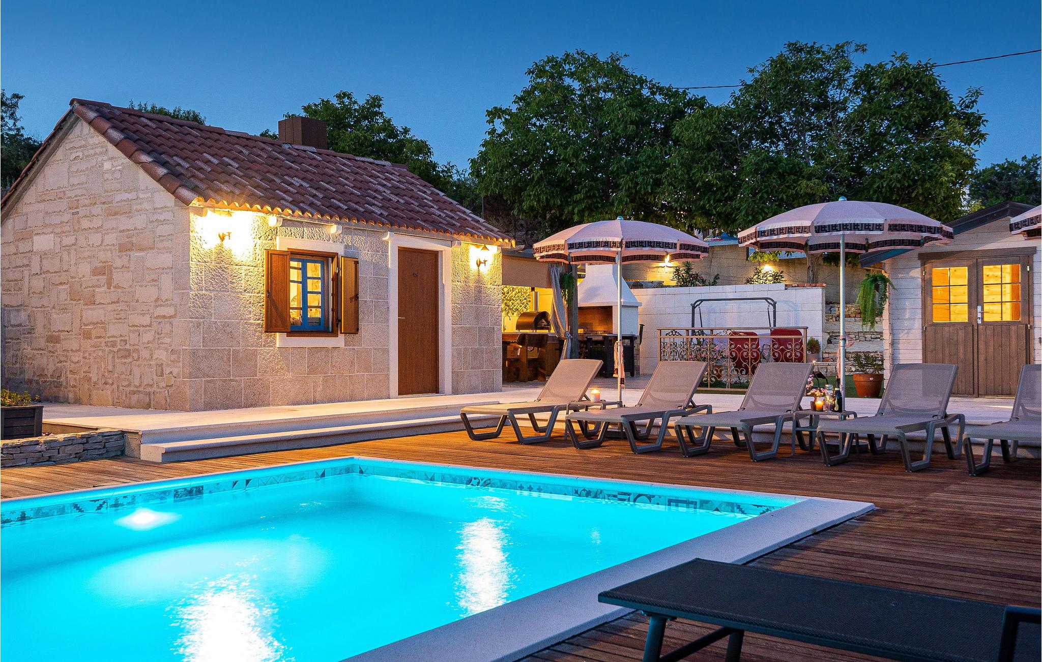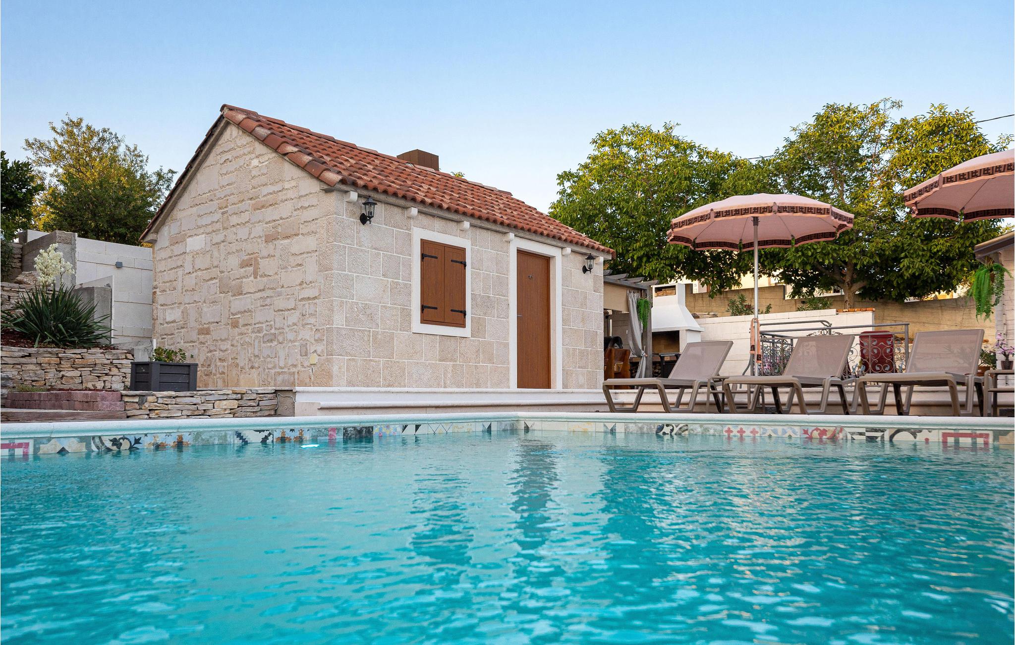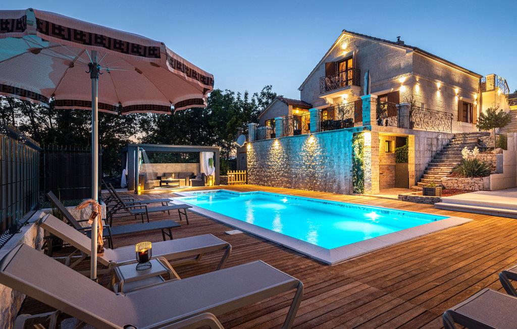 Det indbydende stenhus er komfortabelt indrettet og danner perfekte rammer om en sol- og badeferie. Kombinationen af sten- og træelementer skaber en autentisk, rustik atmosfære, men udstyret er moderne og bekvemt. Start dagen med at nyde en lækker morgenmad på en af husets terrasser efterfulgt af skønne timer, hvor I plasker rundt i poolen og solbader fra liggestolene. Huset tilbyder også skøn wellness i form af spa- og sauna, som kan nydes om aftenen med en kold forfriskning ved hånden - måske efter en lækker grillmiddag? Ejendommen har mange dejlige hyggekroge, hvor I kan læse, småsnakke og sole jer. Der er også gynger og sandkasse til børnene.