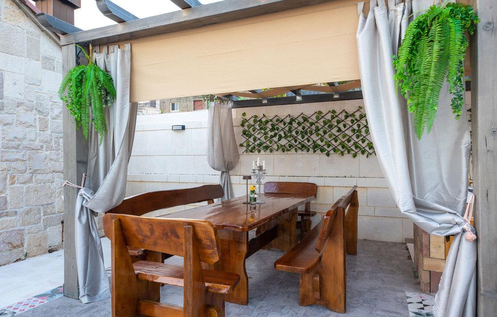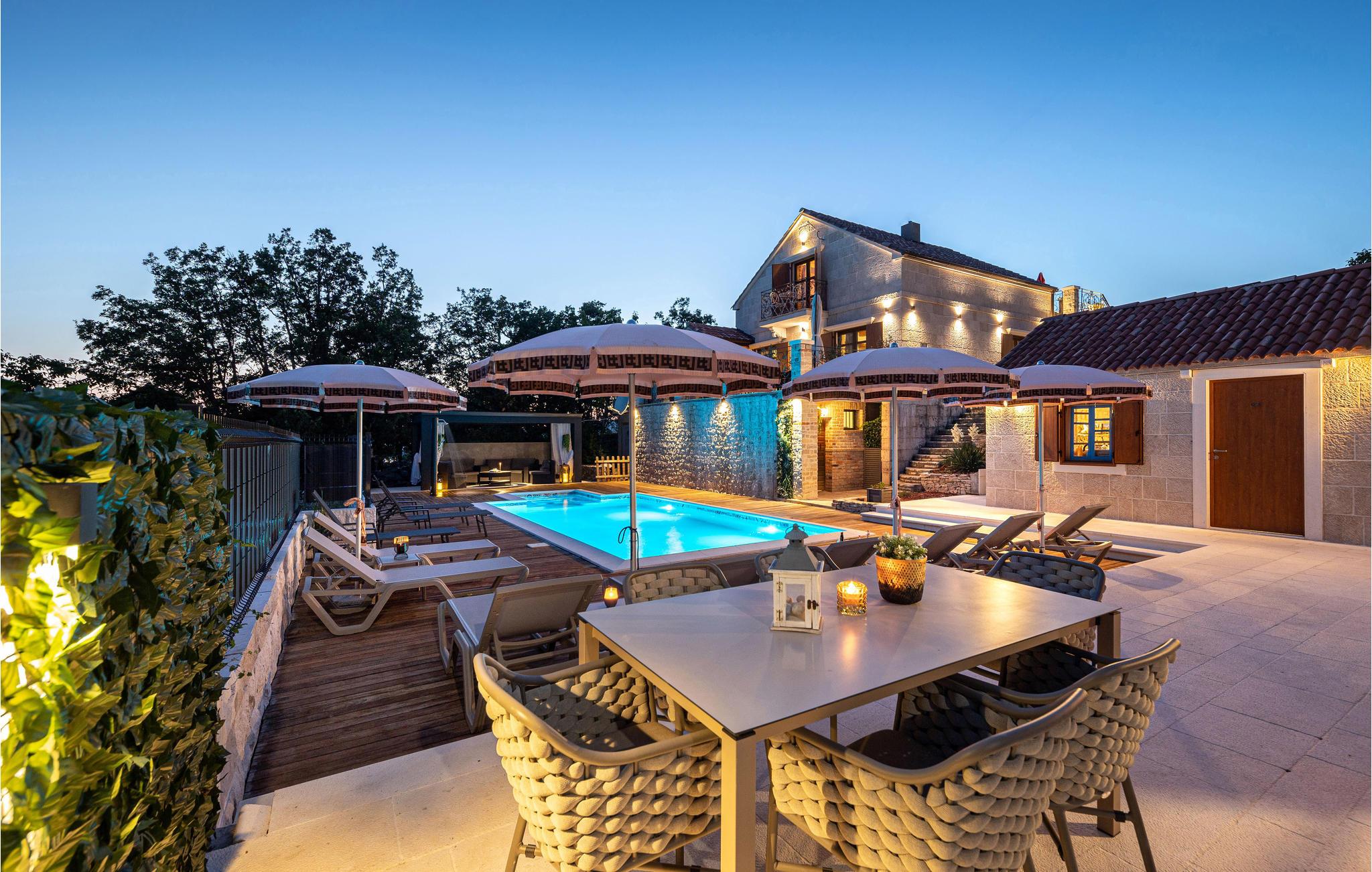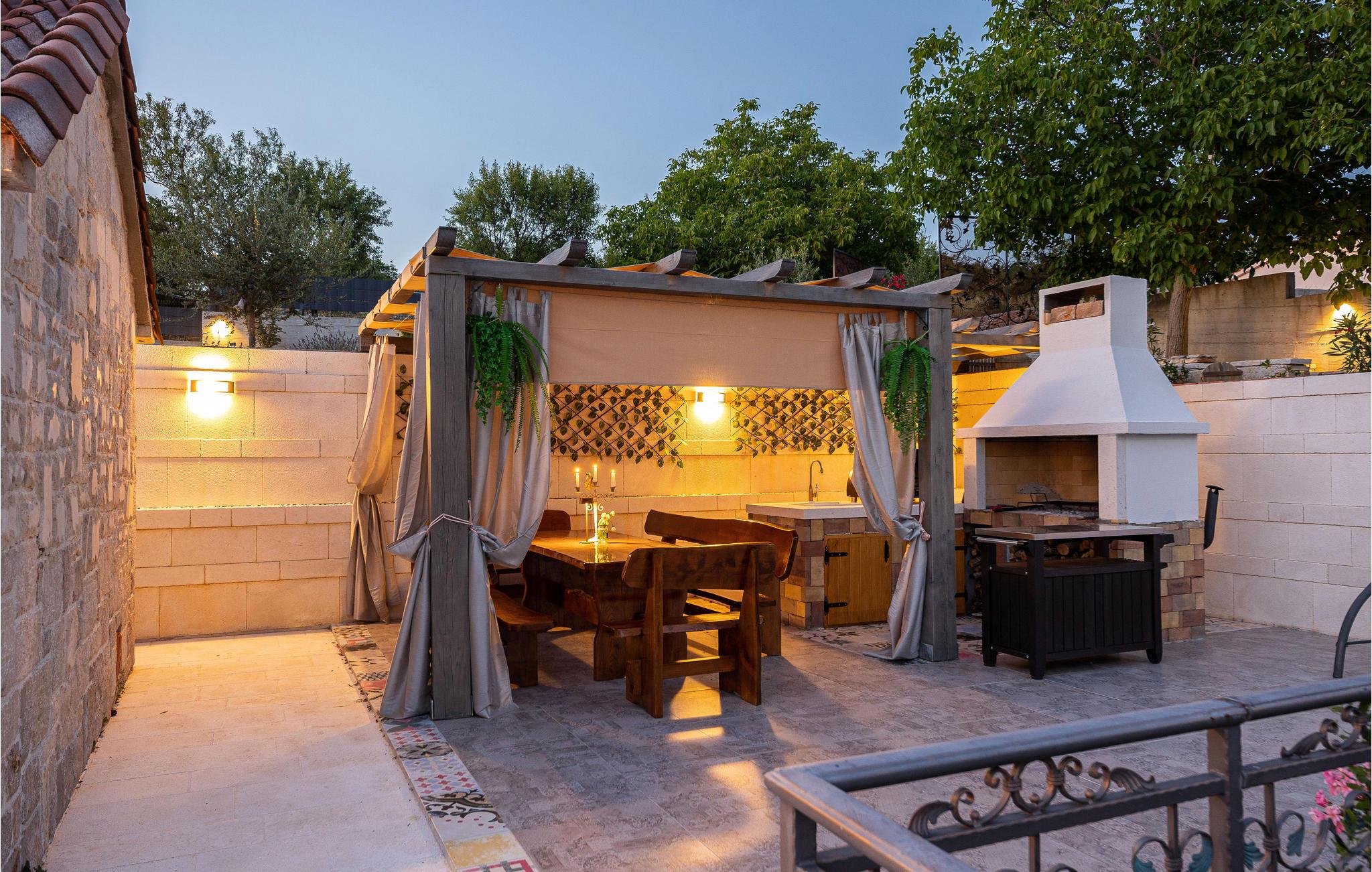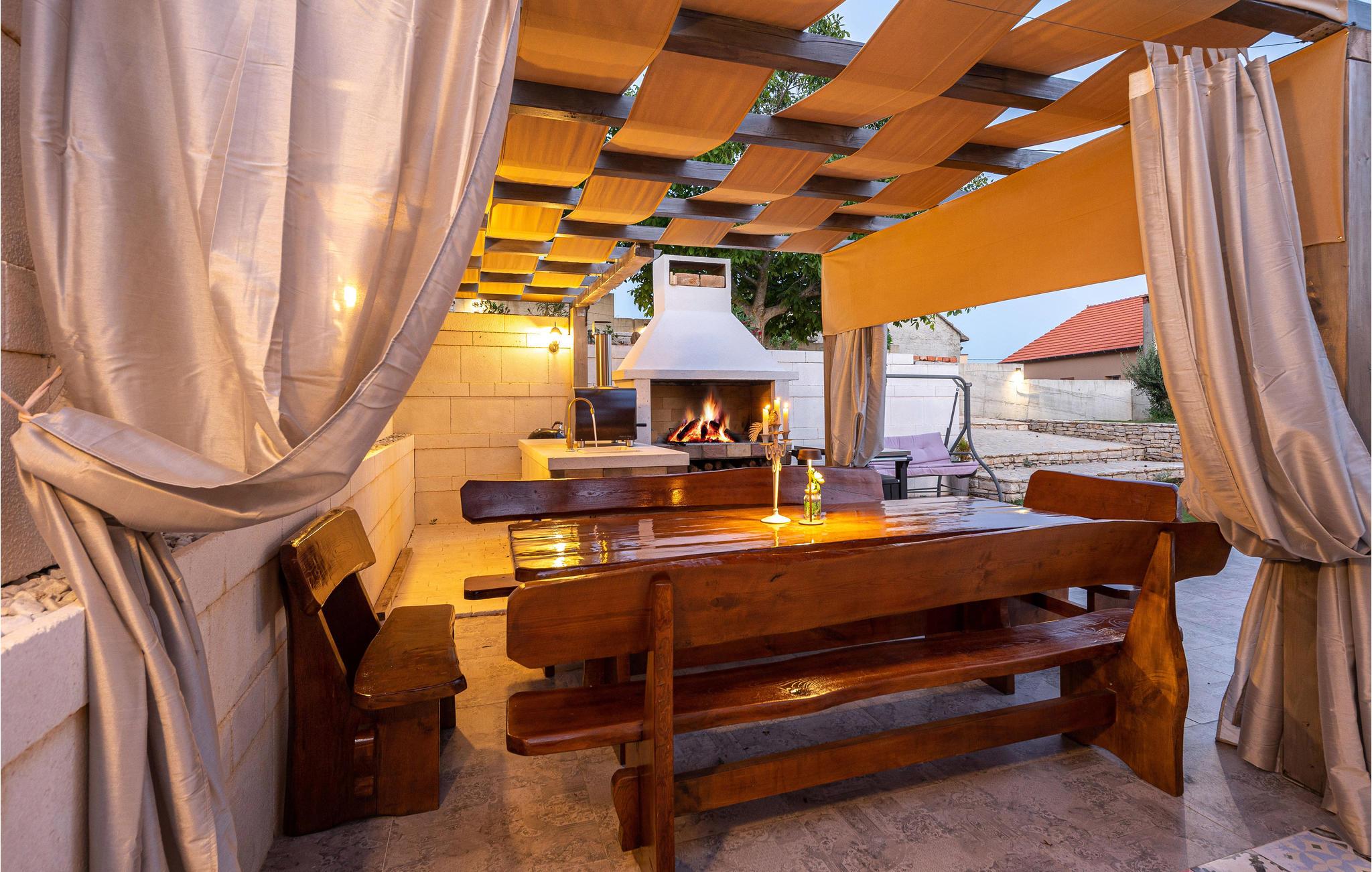 Det indbydende stenhus er komfortabelt indrettet og danner perfekte rammer om en sol- og badeferie. Kombinationen af sten- og træelementer skaber en autentisk, rustik atmosfære, men udstyret er moderne og bekvemt. Start dagen med at nyde en lækker morgenmad på en af husets terrasser efterfulgt af skønne timer, hvor I plasker rundt i poolen og solbader fra liggestolene. Huset tilbyder også skøn wellness i form af spa- og sauna, som kan nydes om aftenen med en kold forfriskning ved hånden - måske efter en lækker grillmiddag? Ejendommen har mange dejlige hyggekroge, hvor I kan læse, småsnakke og sole jer. Der er også gynger og sandkasse til børnene.