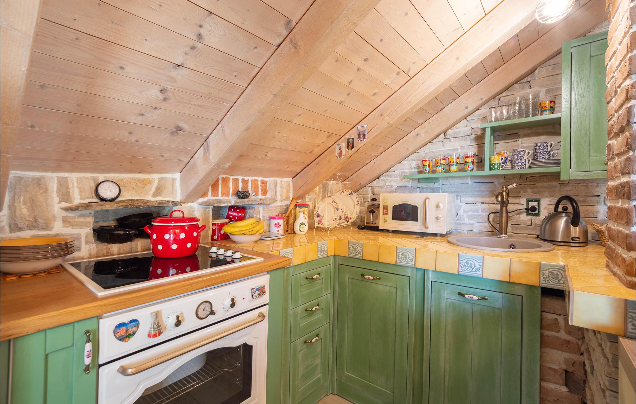 Hvis I trænger til lidt afveksling, er der 14 km til en dejlig grusstrand, hvor I kan bade i krystalklart vand. Der er restaurant og indkøbsmuligheder i gåafstand fra huset.