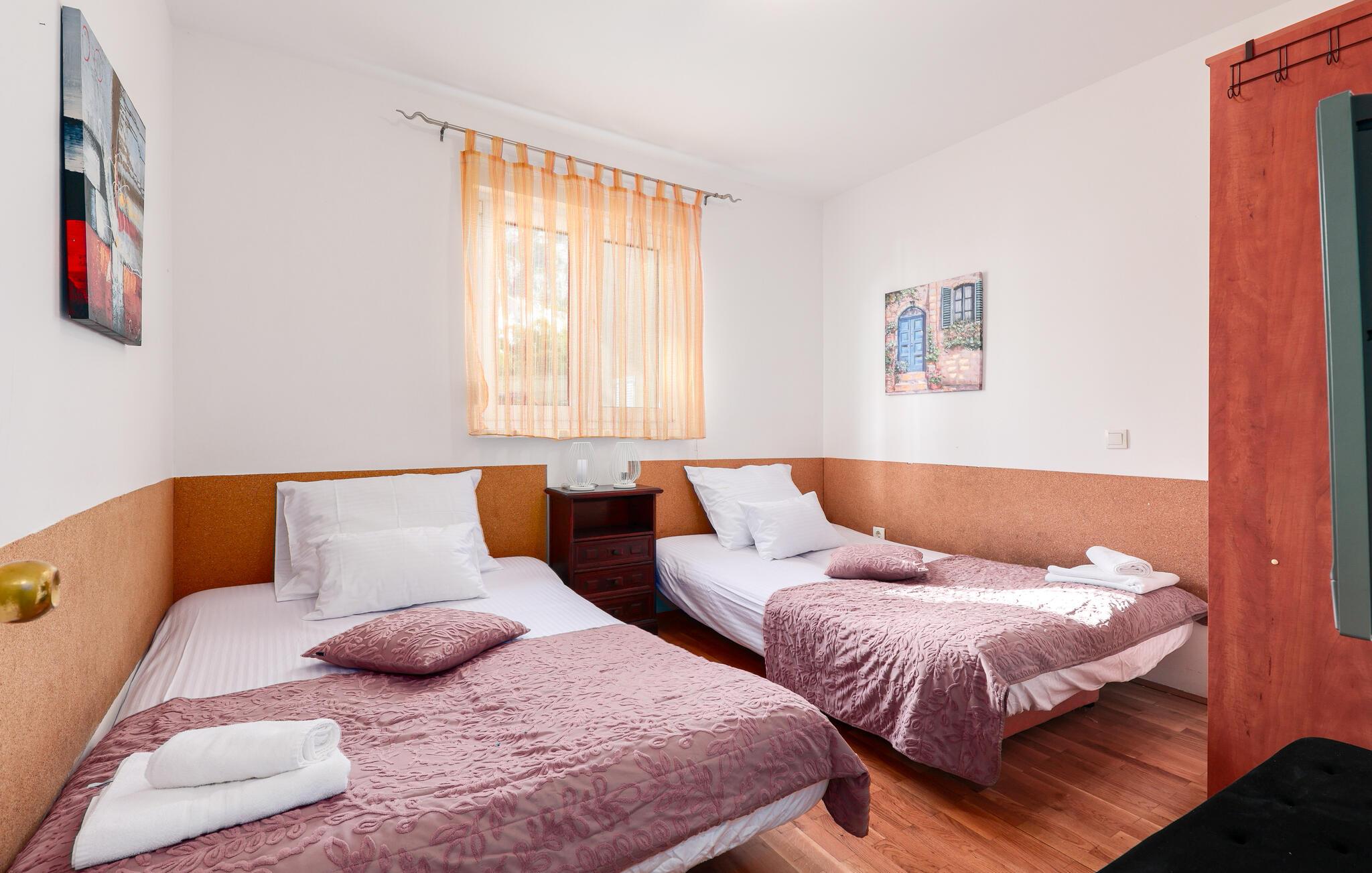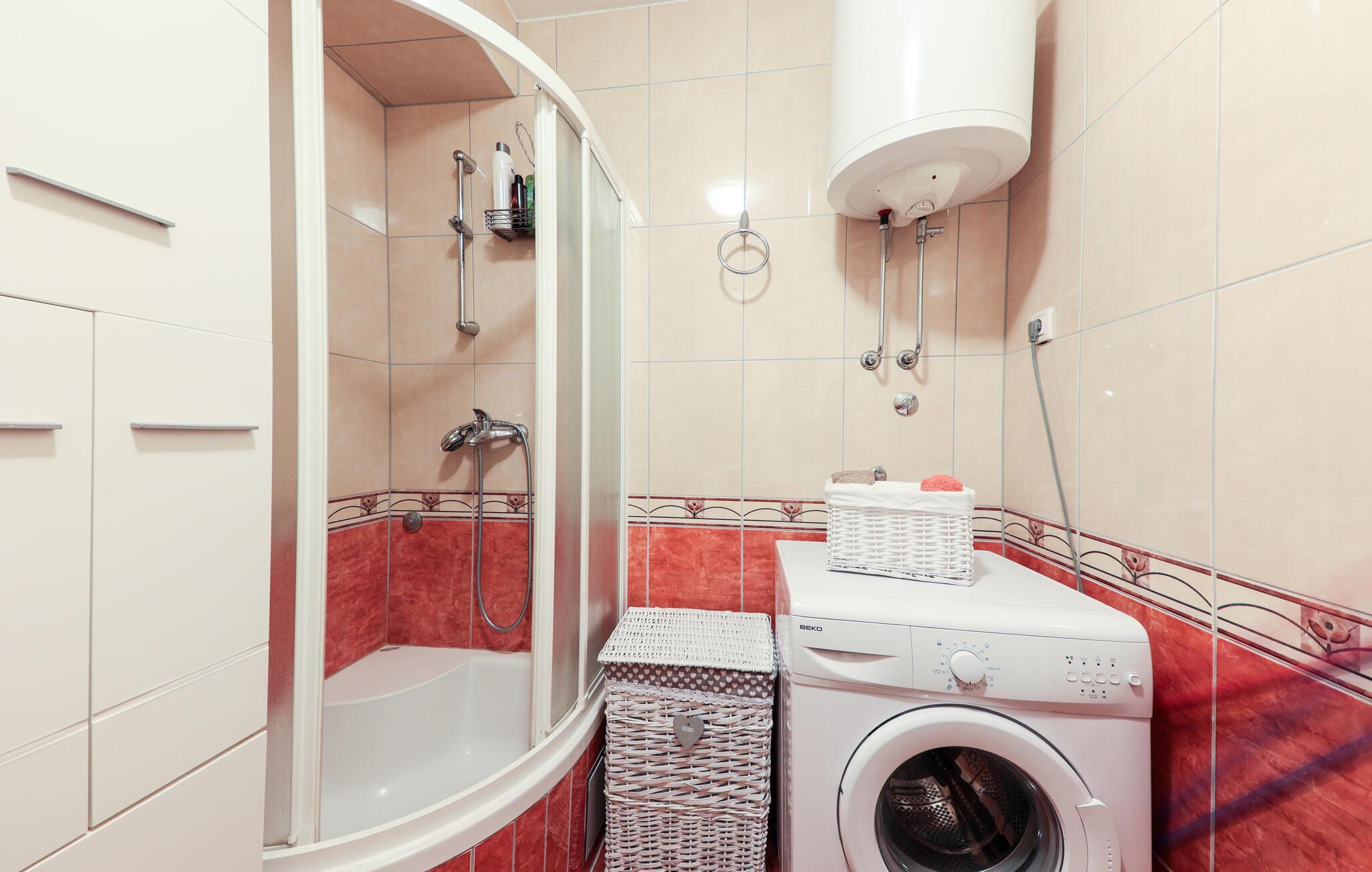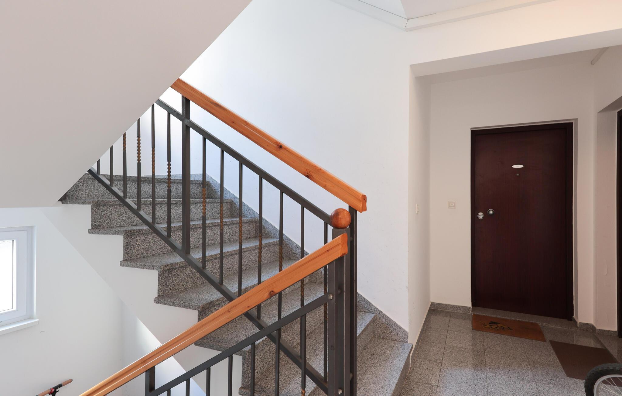 Denne lyse og hjemlige lejlighed i Makarska er ideel til familier, der leder efter komfortabel indkvartering nær stranden. Den rummelige lejlighed tilbyder jer et veludstyret køkken og lægger op til at lave mad og slappe af. Nyd hyggelige timer på jeres private terrasse eller start dagen med morgenmad med udsigt over de omkringliggende bjerge. Den stille gadeudsigt skaber en afslappet atmosfære, mens den centrale beliggenhed byder på adskillige udflugtsmuligheder.