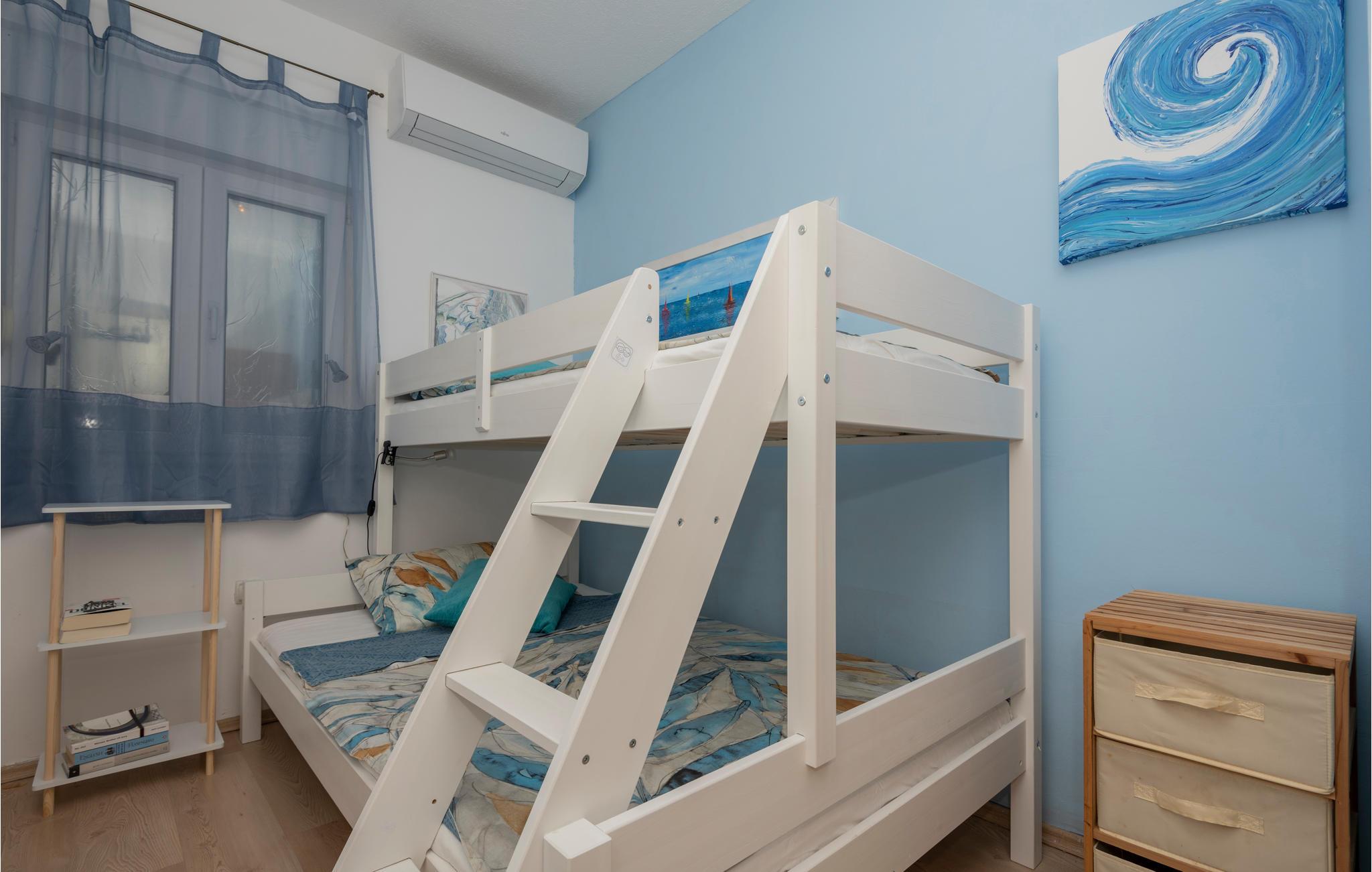 Denne smagfuldt indrettede ferielejlighed venter på jer i den maleriske landsby Podaca på Makarska-rivieraen. De komfortable møbler skaber en indbydende atmosfære for jeres ophold. Start dagen på den overdækkede terrasse med en vidunderlig panoramaudsigt over havet. En fælles pool giver kølende og afslappende timer, som I kan nå via en passage.