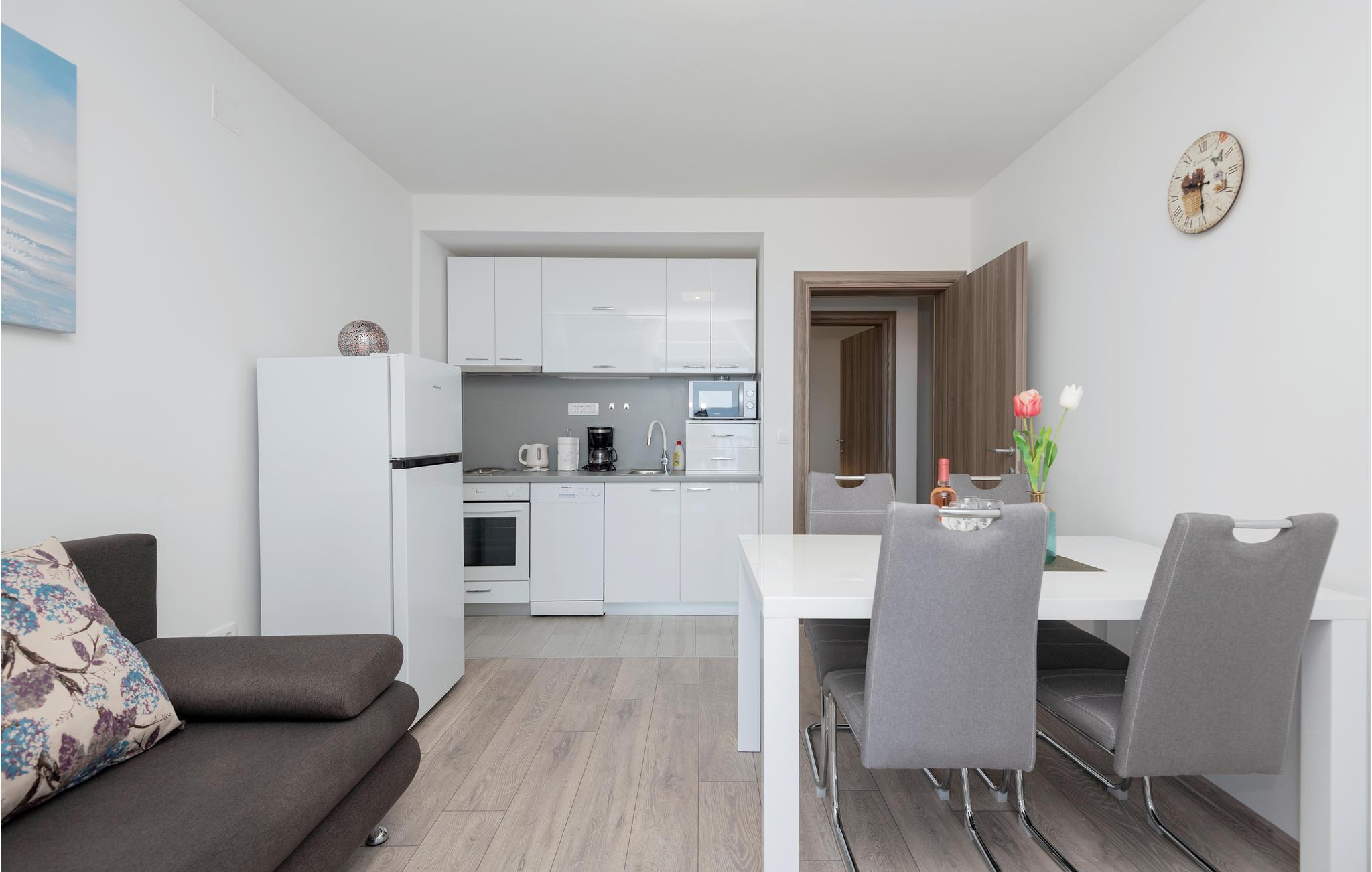 Velkommen til en ferie med vidunderlige oplevelser og afslappende øjeblikke i denne ferielejlighed i udkanten af ??Makarska. Lejligheden er komfortabelt indrettet og af god standard med attraktive møbler. Boligarealet er opdelt i 2 soveværelser, 2 badeværelser, en stue med køkken og en hall. To af sovepladserne er i opholdsstuen.