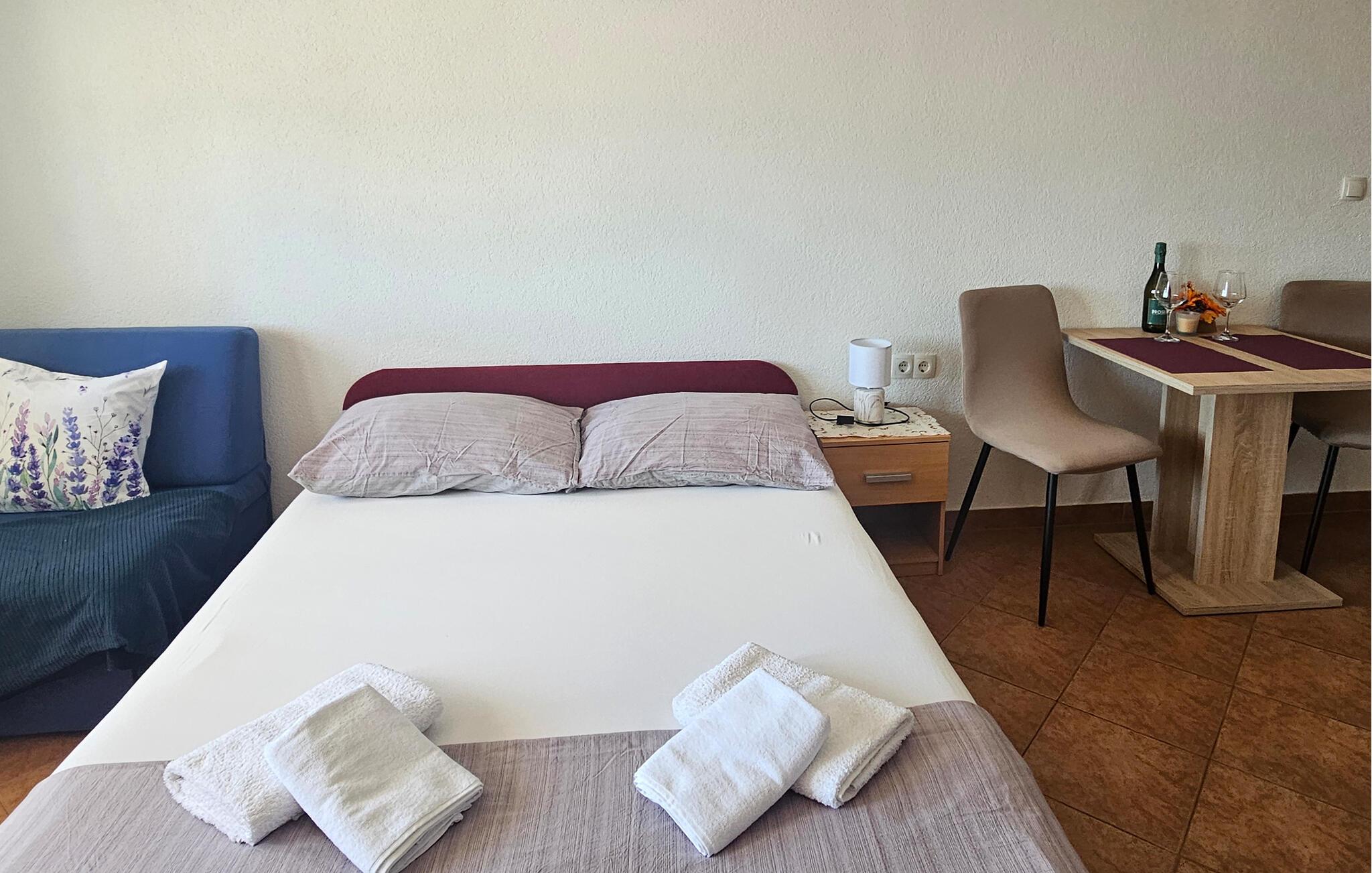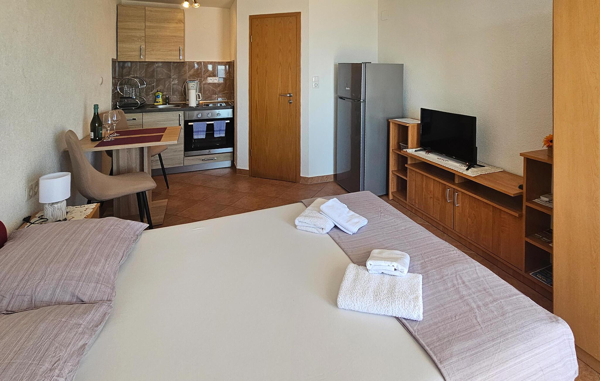 Hver af disse lejligheder har en overdækket terrasse med vidunderlig udsigt til de nærliggende øer, byens centrum og havet. I forbindelse med huset er der en swimmingpool og en grill til fælles brug. Her kan I tilbringe dejlige grillfester sammen.