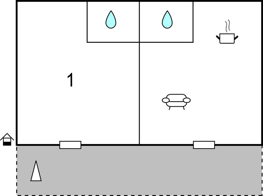Opholdsstue/køkken 23m2 - 2 Sovepladser. (Sofa, madras eller lignende).