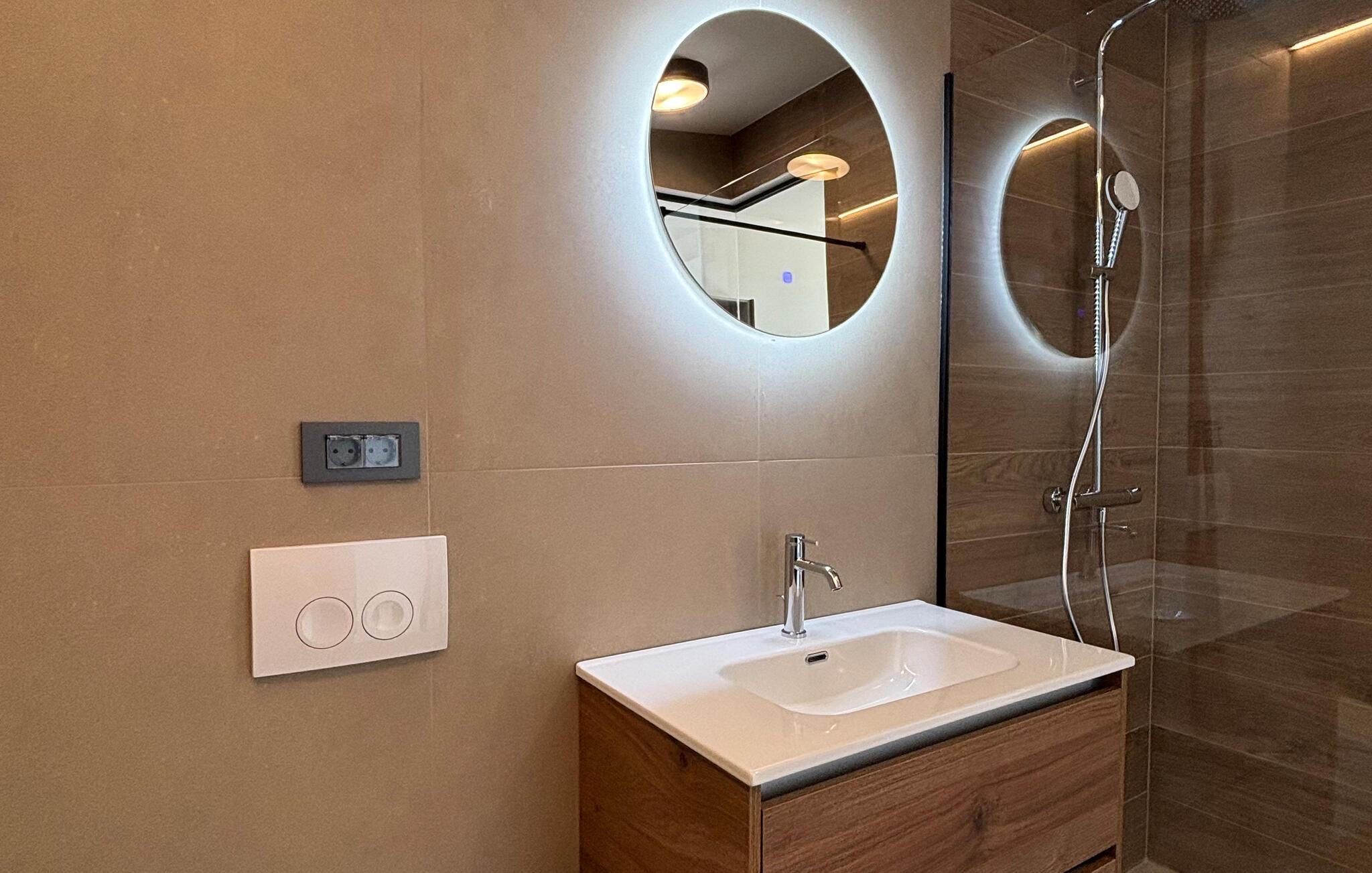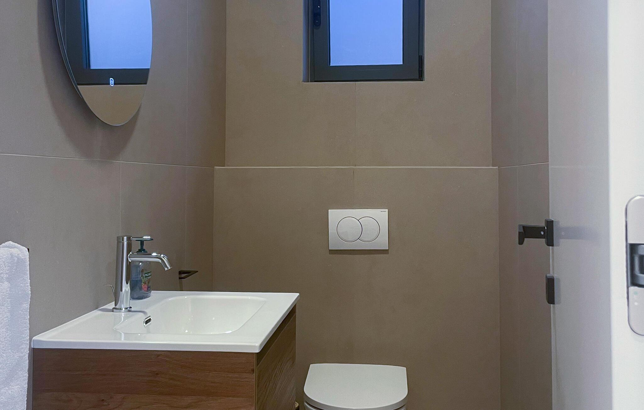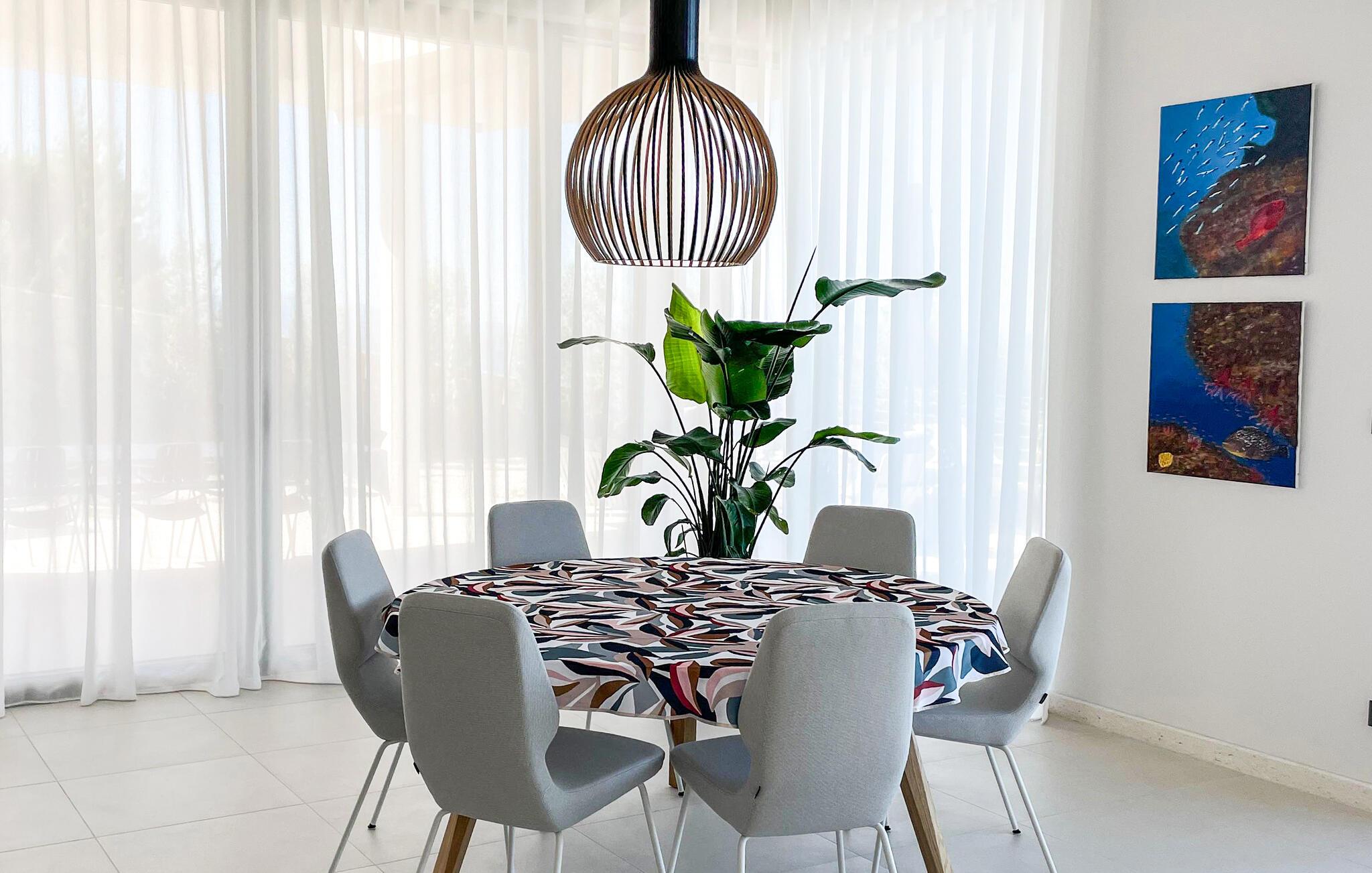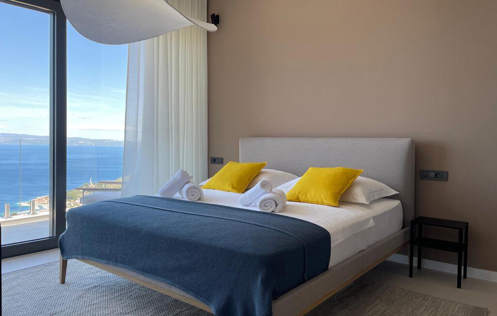 Denne moderne middelhavsvilla vil forkæle jer med adskillige ekstrafunktioner og et stilfuldt interiør af høj kvalitet. Store vinduer tilbyder udsigt over det vidtstrakte hav og skaber en behagelig og stemningsfuld atmosfære. Skab kulinariske lækkerier, hold jer i form på træningsudstyret, og nyd hyggelige timer i den komfortable stue, hvor I kan streame en film eller være vært for en spilleaften.
