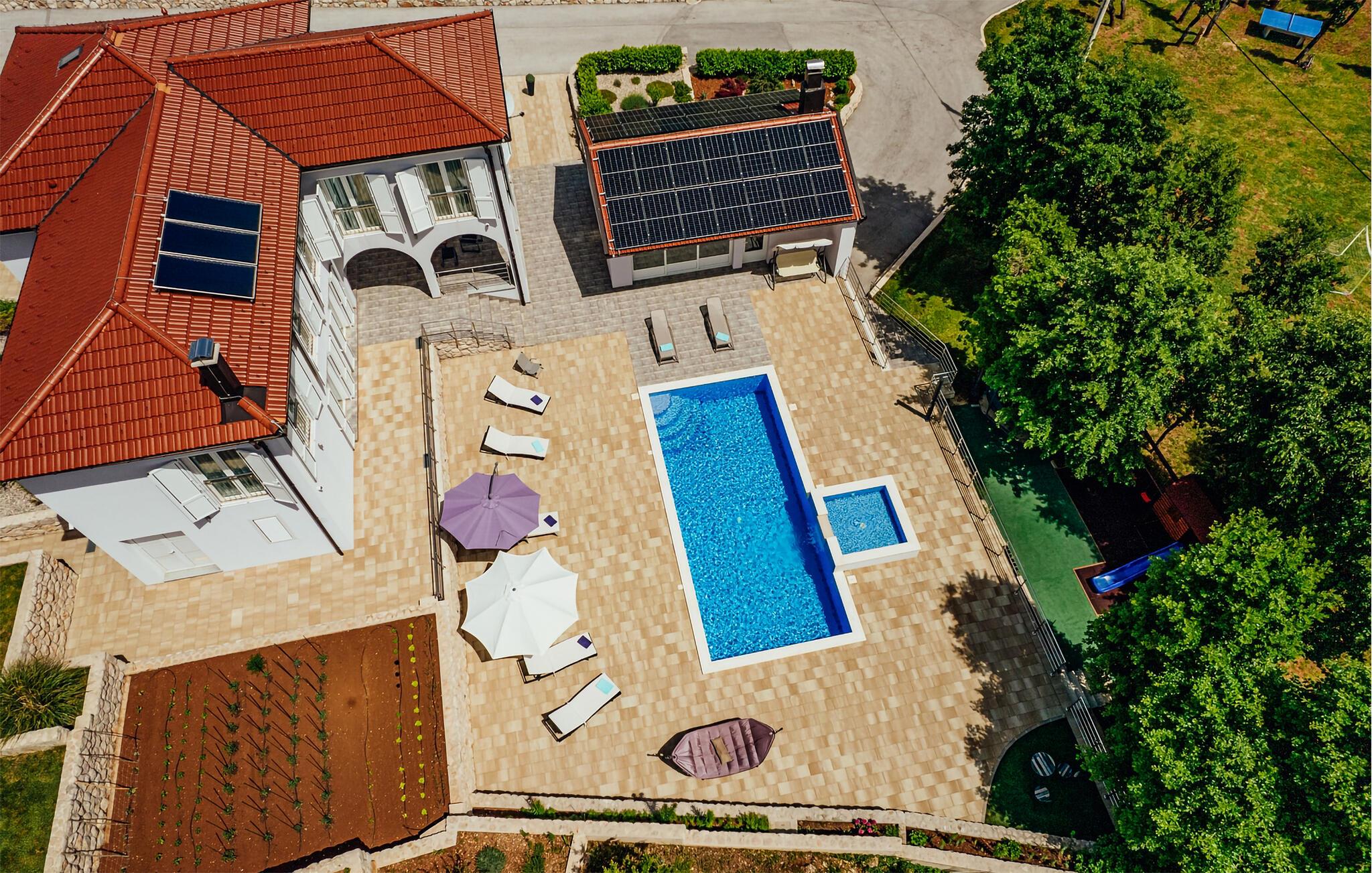 Dette luksuriøse og fremragende udstyrede feriehus med pool ligger i indlandet af Dalmatien på Makarska Rivijera.
