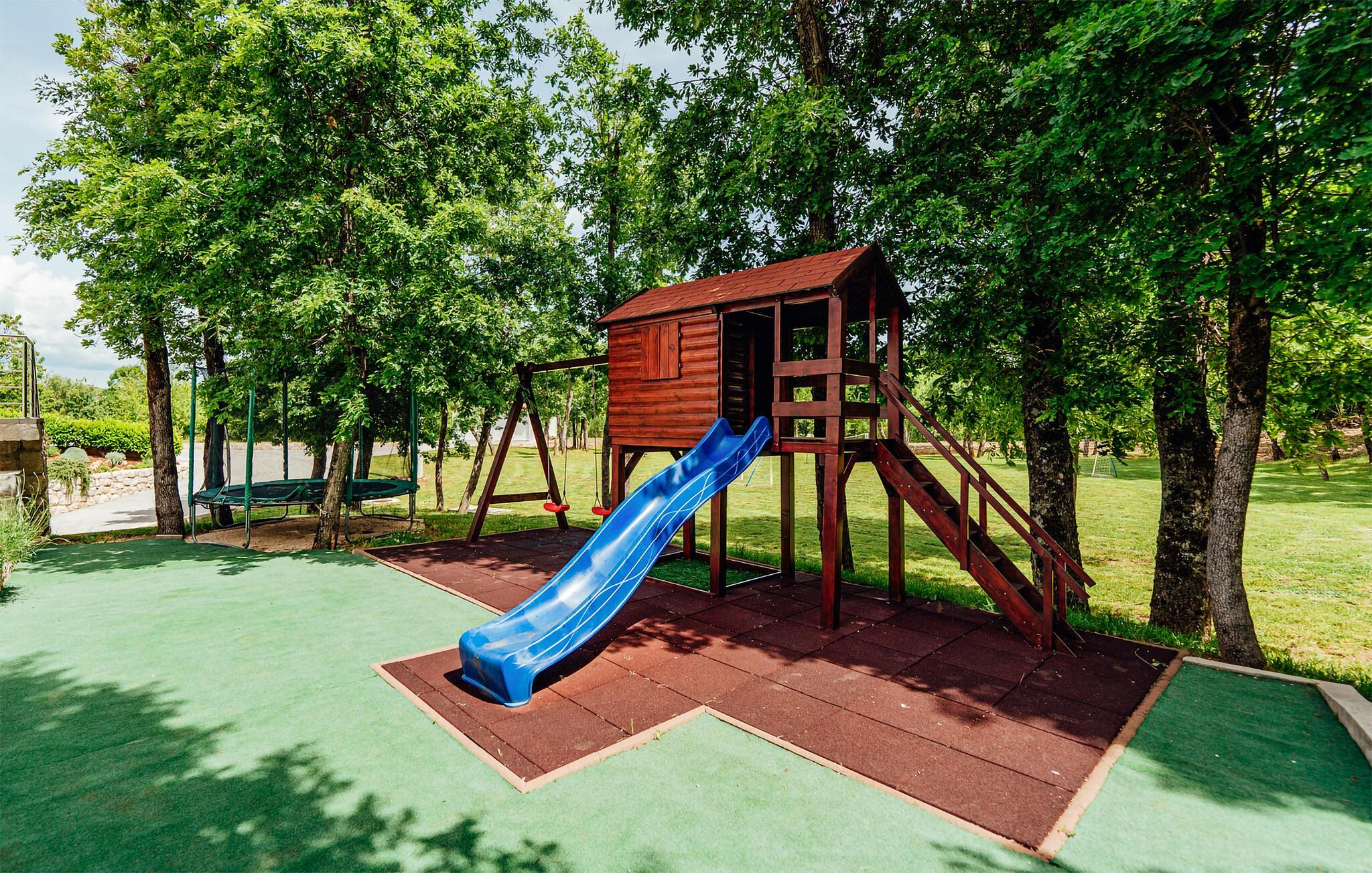Villaen har et udhus. Der er en stor indendørs grill til rådighed til kulinariske oplevelser samt et stort bord til 10 personer. Mulighederne for fritidsaktiviteter er forskellige. Fra dart til bordfodbold og billard til udendørs bordtennis, fodbold og badminton. Børnene glæder sig over børnehuset med gynger, trampolin og rutsjebane!