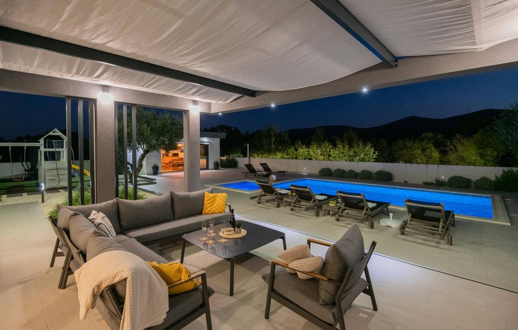 Dette moderne og fremragende udstyrede feriehus med opvarmet pool er beliggende i det indre Dalmatien, ikke langt fra Makarska Riviera.