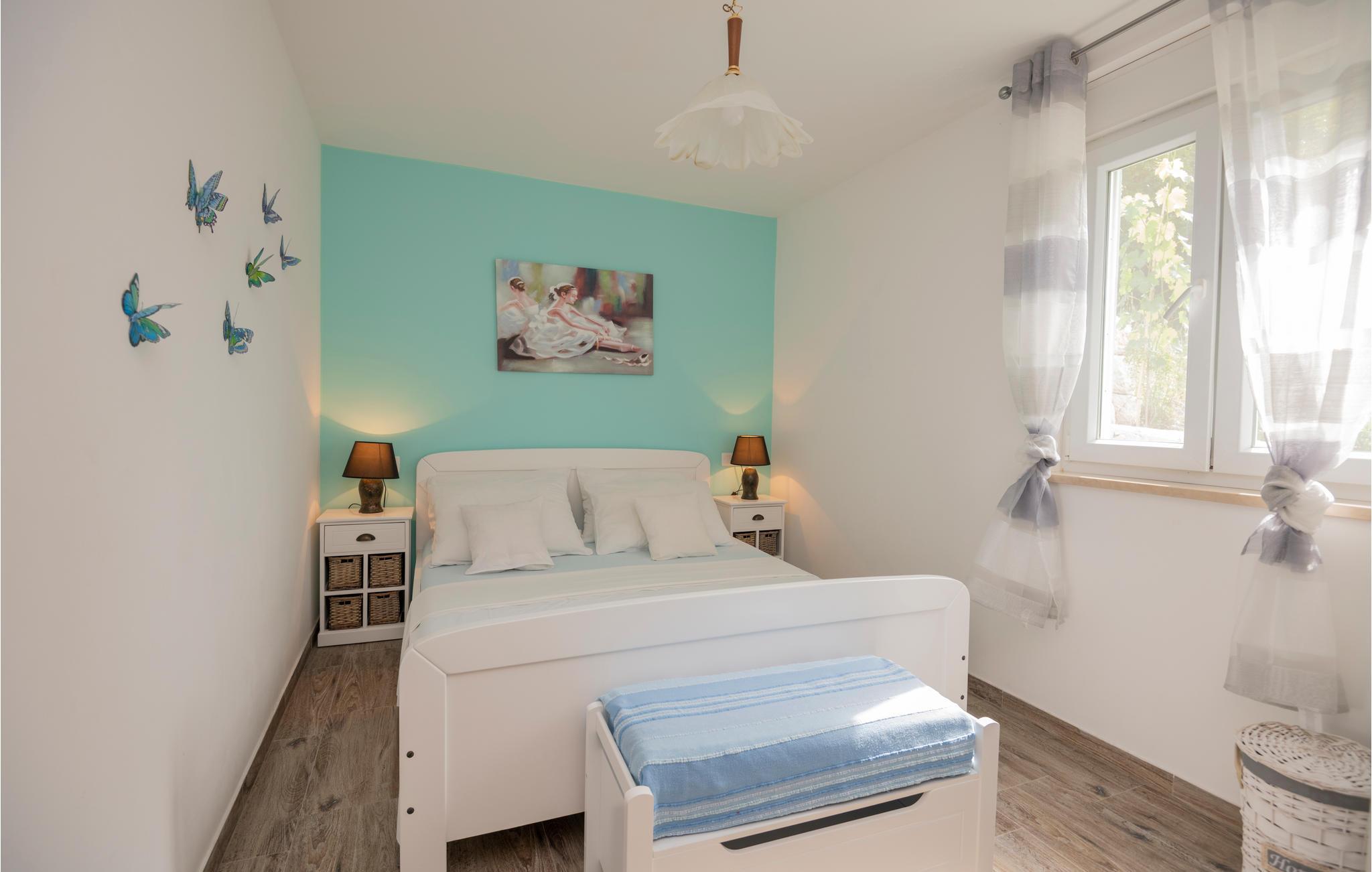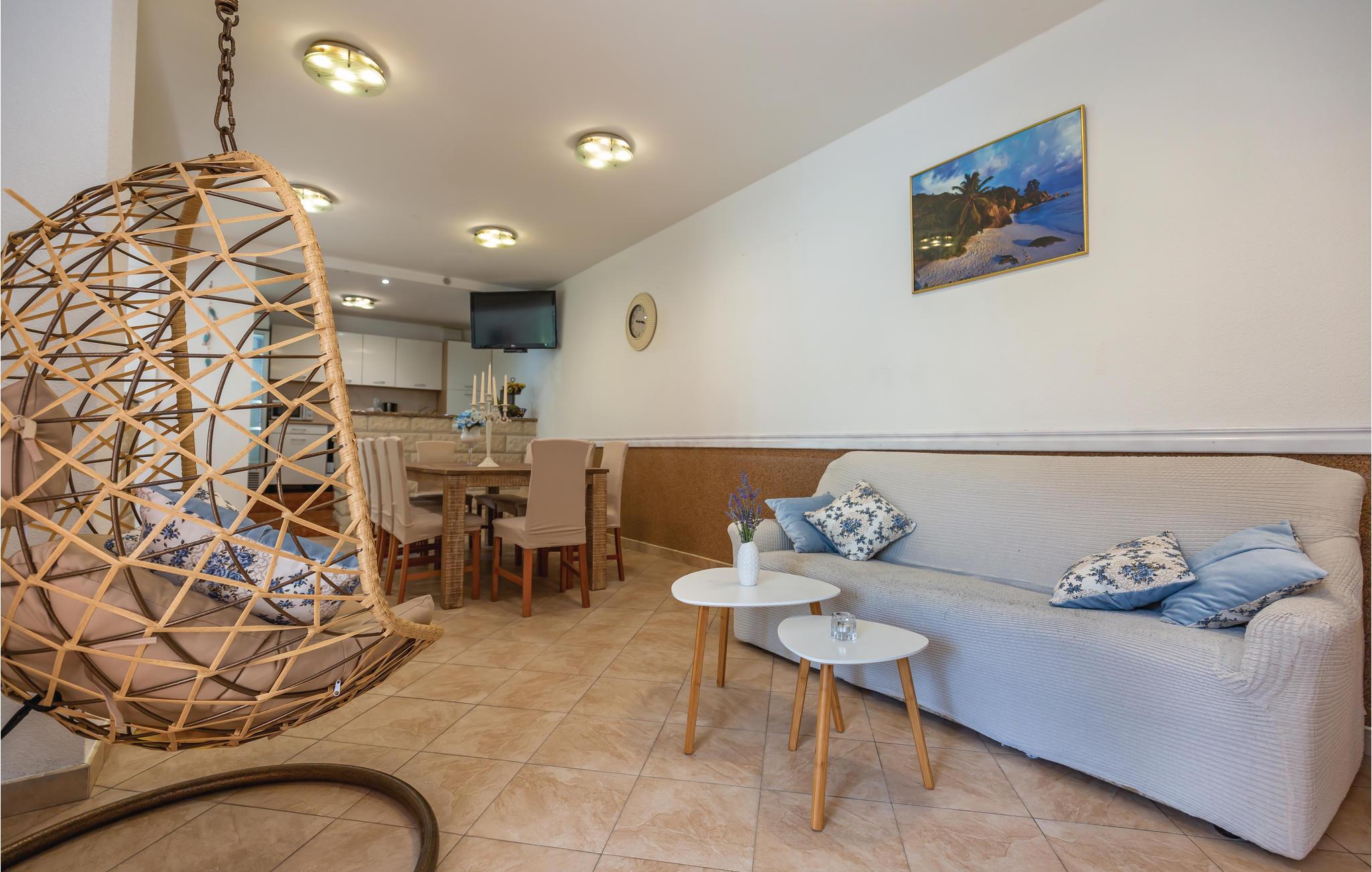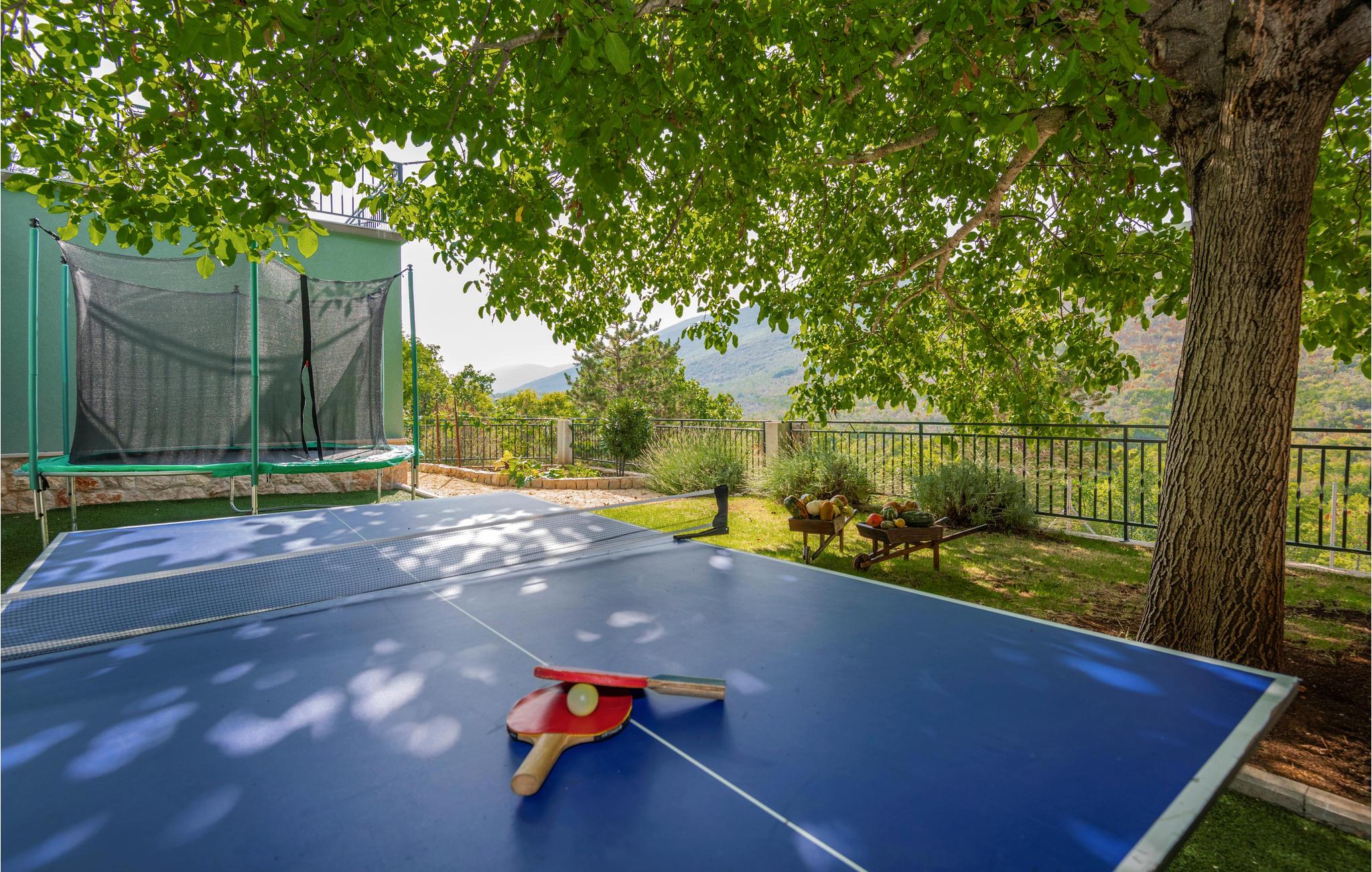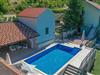 Dette rummelige og dejligt indrettede feriehus ligger i rolige omgivelser i Markarskas indland. Det rummer to ferielejligheder med udendørs trappe. To trappetrin mellem dagligstue og køkken. I haven er der pool lige ved siden af terrassen, hvor I kan slappe af og tilberede nem og lækker mad på grillen. På idrætspladsen kan I spille tennis, fodbold og badminton. Der hører cykler med til huset, så opleve området i ro og mag på to hjul, eller tag bilen og kør til Makarskas riviera hvor de underskønne kiesstrande indbyder til lange afslappede badedage. Imotski ligger ca. 8 km fra dette hus – her er der butikker, cafeer, spisesteder og forskellige former for sommerunderholdning.