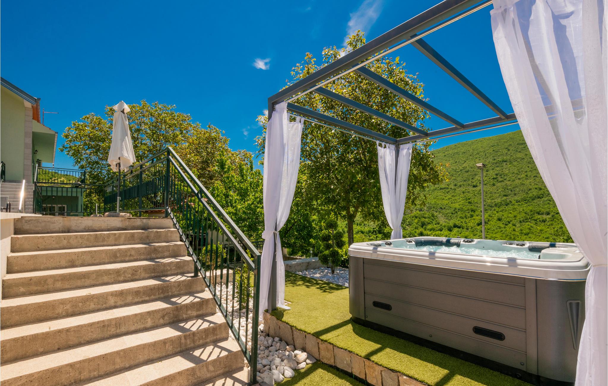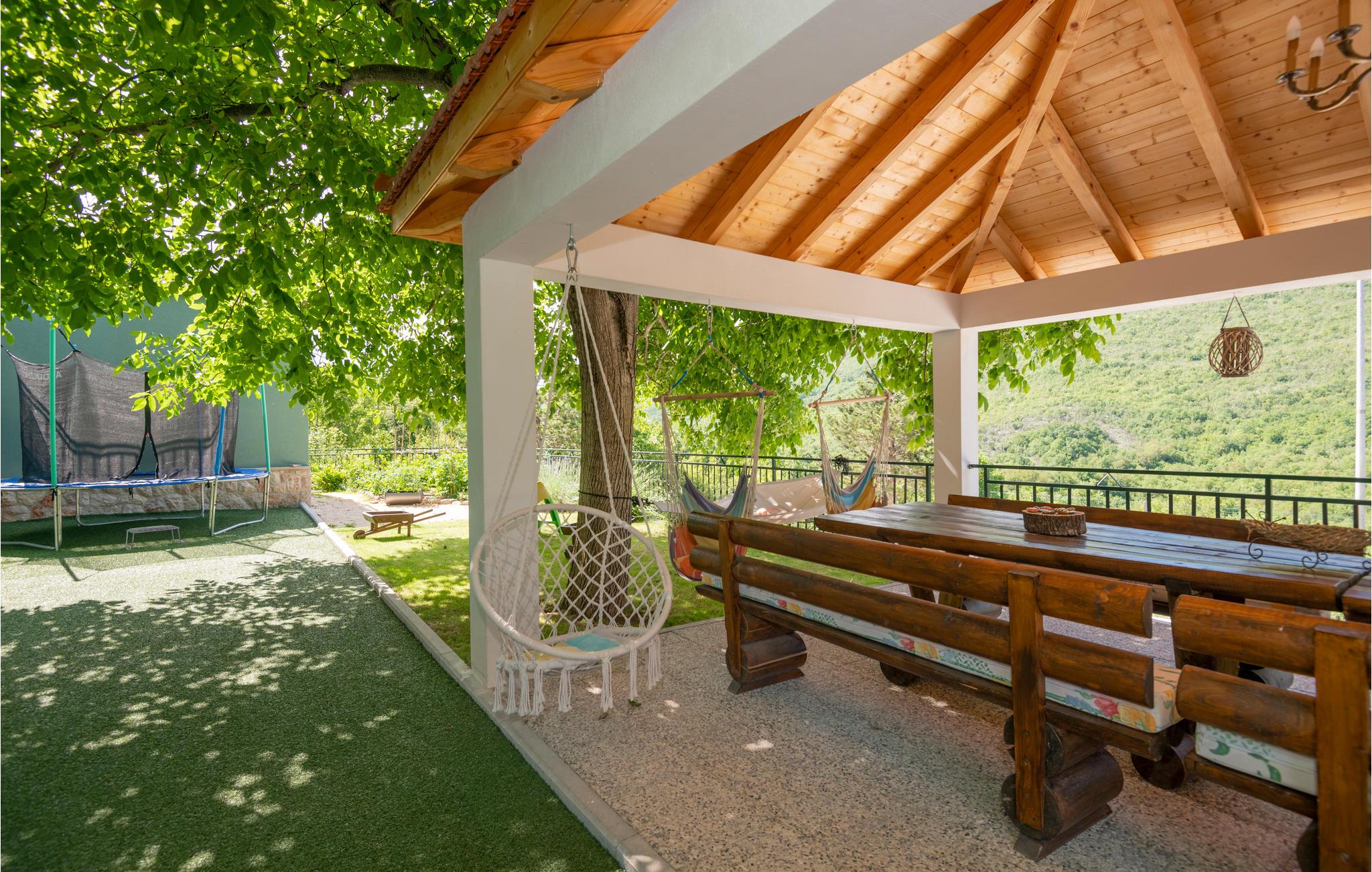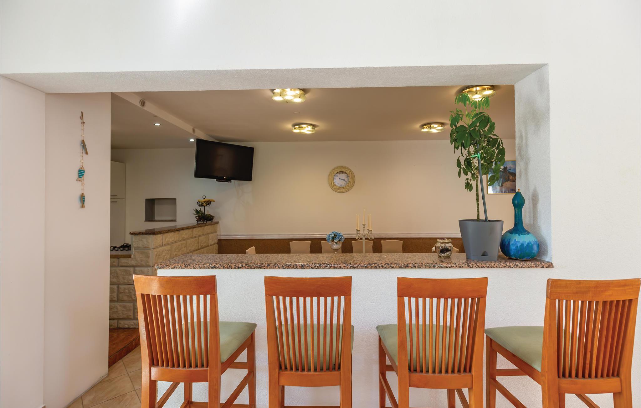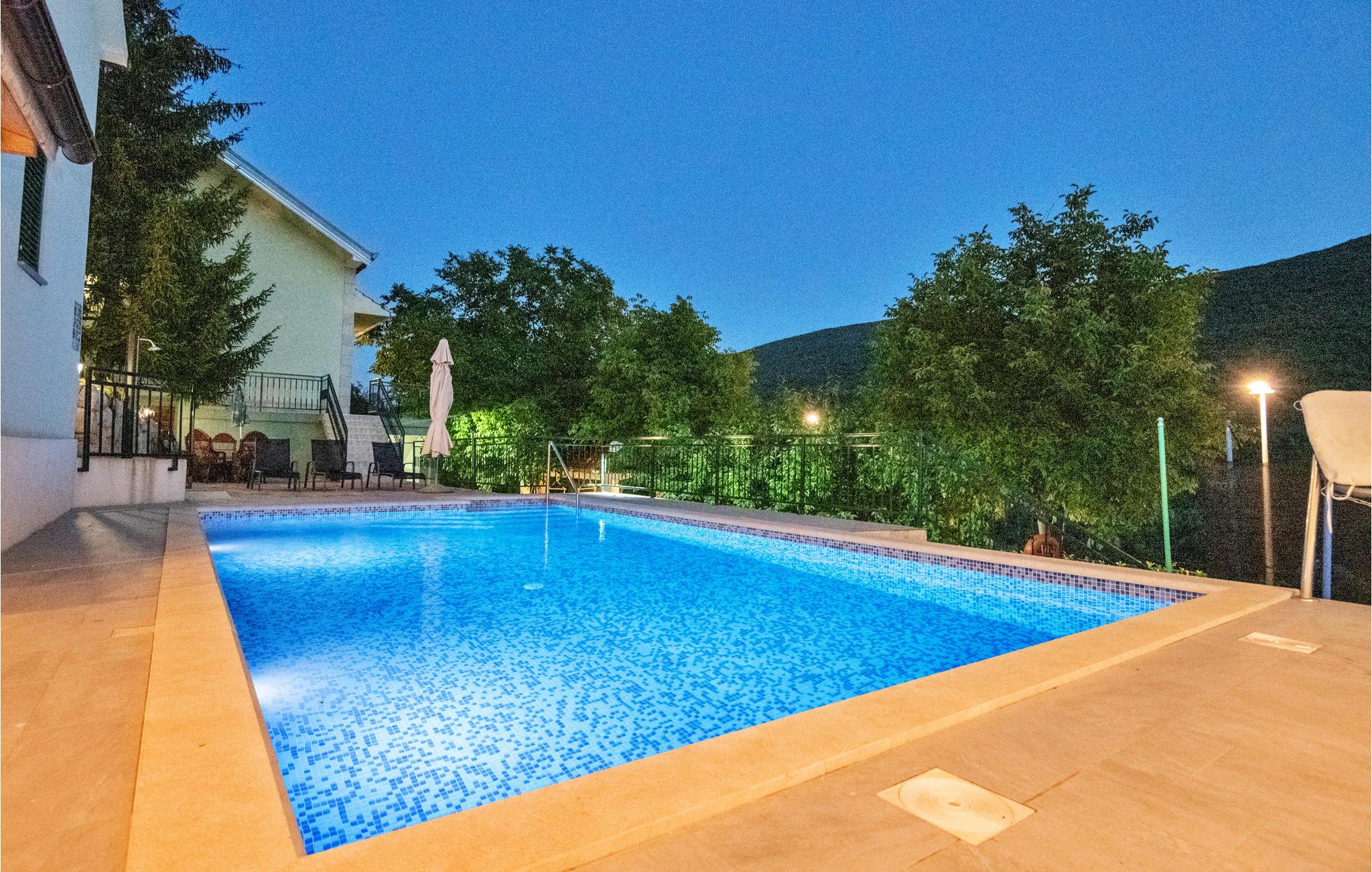 Dette rummelige og dejligt indrettede feriehus ligger i rolige omgivelser i Markarskas indland. Det rummer to ferielejligheder med udendørs trappe. To trappetrin mellem dagligstue og køkken. I haven er der pool lige ved siden af terrassen, hvor I kan slappe af og tilberede nem og lækker mad på grillen. På idrætspladsen kan I spille tennis, fodbold og badminton. Der hører cykler med til huset, så opleve området i ro og mag på to hjul, eller tag bilen og kør til Makarskas riviera hvor de underskønne kiesstrande indbyder til lange afslappede badedage. Imotski ligger ca. 8 km fra dette hus – her er der butikker, cafeer, spisesteder og forskellige former for sommerunderholdning.