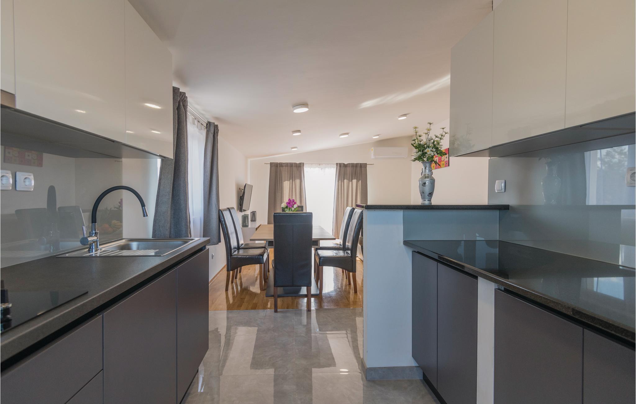 Dette skønne feriehus med privat pool ligger i den lille by Grubine, ikke langt fra Imotski. Huset er fordelt på stueplan, hvor der også er en garage, og en overetage, der nås ad en udendørs trappe. Fra stuen er der udgang til en terrasse, foran hvilken den ugenerte private pool ligger. Desuden er der grill og legeplads til jeres børn. Fra balkonen på nordsiden er der en skøn udsigt over byen Imotski og på de omliggende marker og vinbjerge. Her kan I se den blå og den røde sø og besøge de skønne byer langs Makarskas riviera, fx Baška Voda, Brela og Makarska.