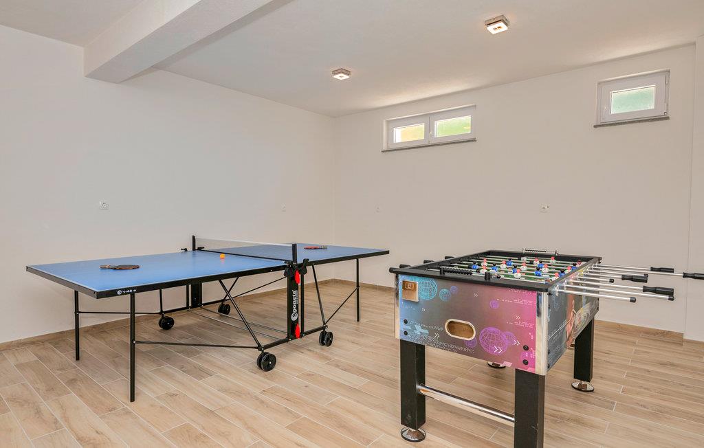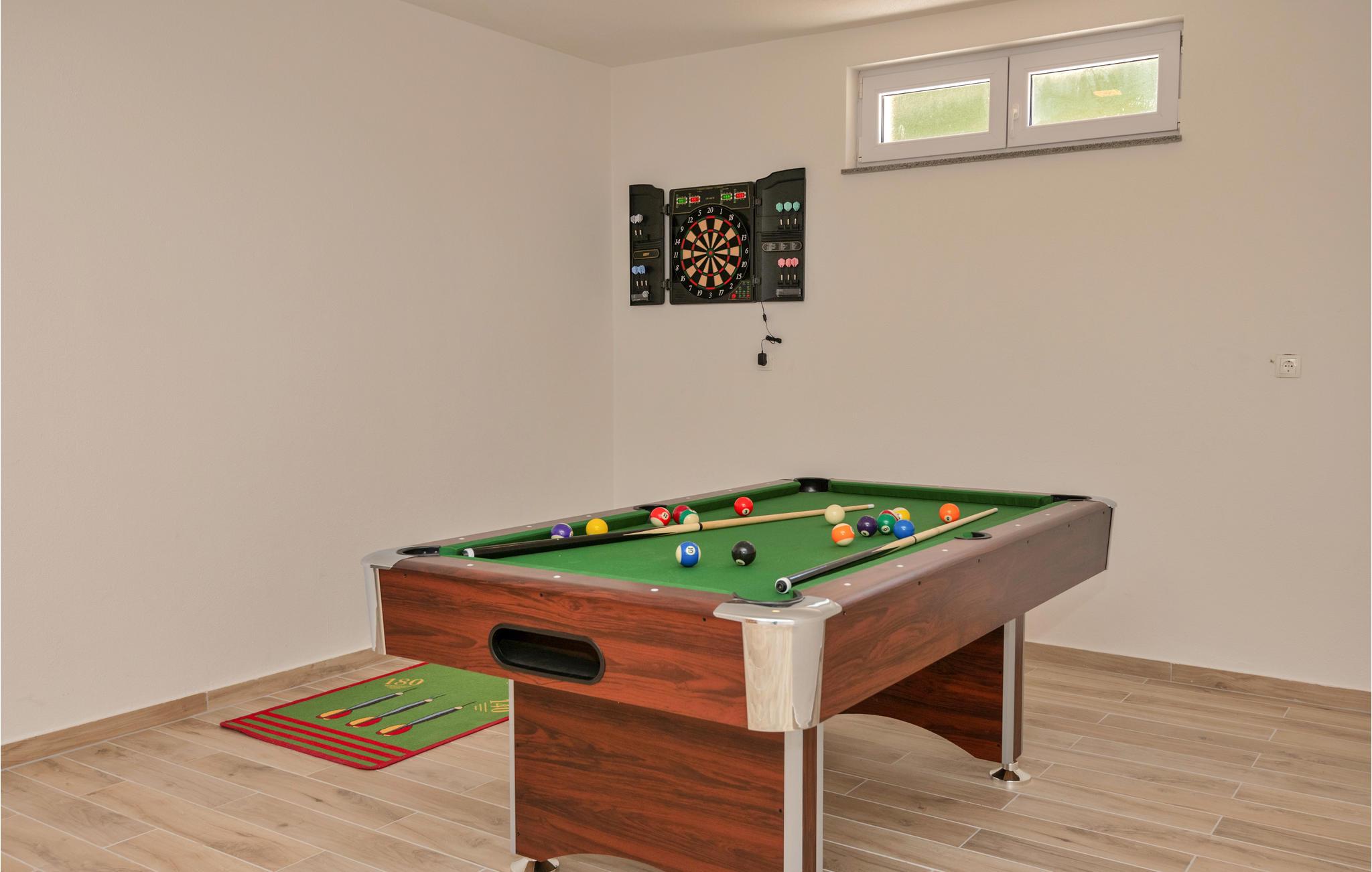 Dette veludstyrede hus byder sine gæster velkommen med stilfulde, moderne møbler og lyse værelser. På underetagen finder I billard, bordfodbold og bordtennis, mens stuen og soveværelset er i stueetagen og første sal. Etagerne er forbundet med en intern trappe.