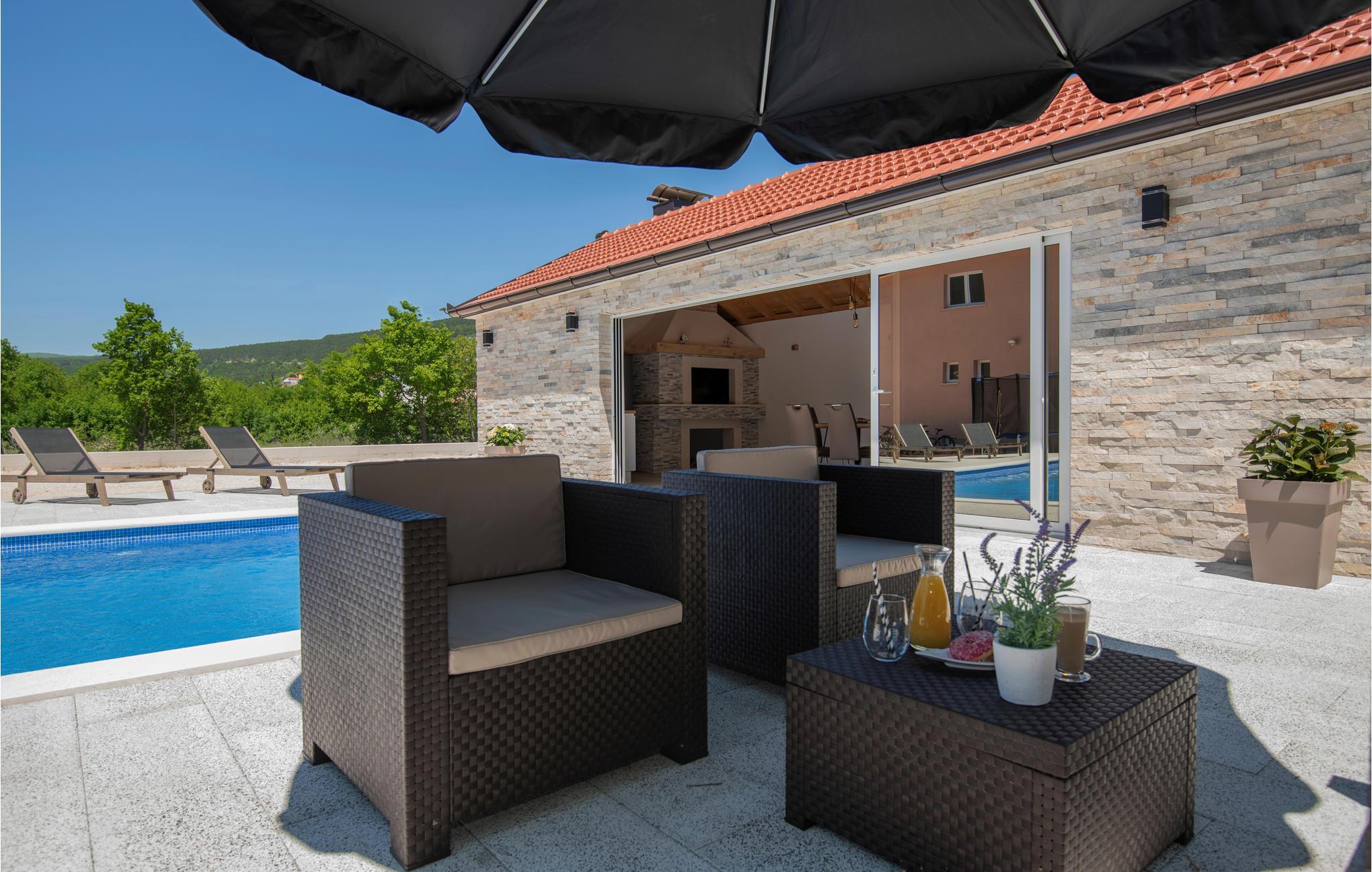 Moderne og indbydende sommerhus med pool og masser af aktiviteter.