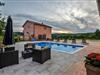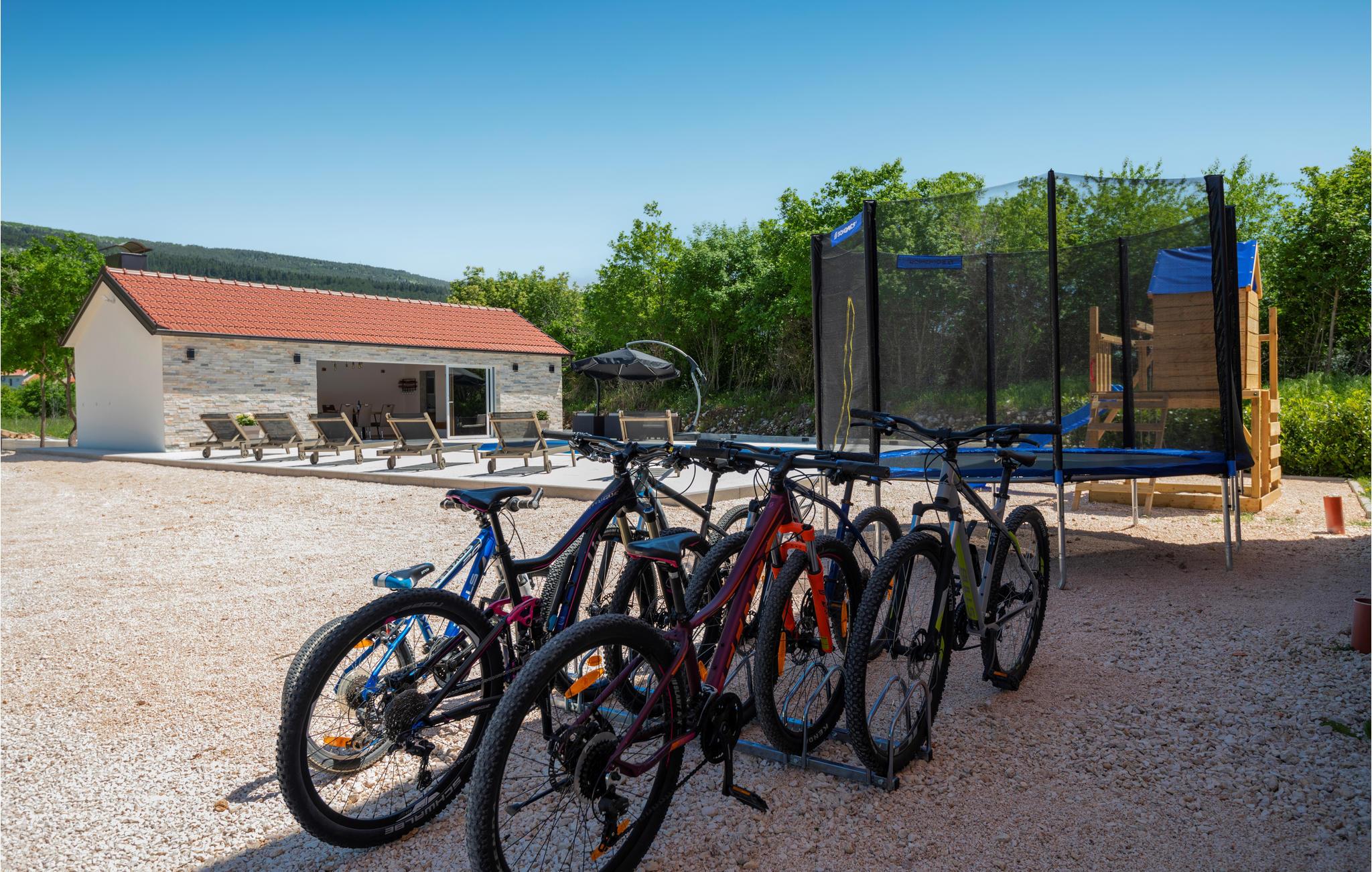Haven er rummelig og fuldt indhegnet. Bag huset er der en stor pool og et fuldt udstyret sommerkøkken med grill. Der er en legeplads for de yngste. Der er cykler til rådighed for at udforske området, og der er en fiskesø i nærheden.