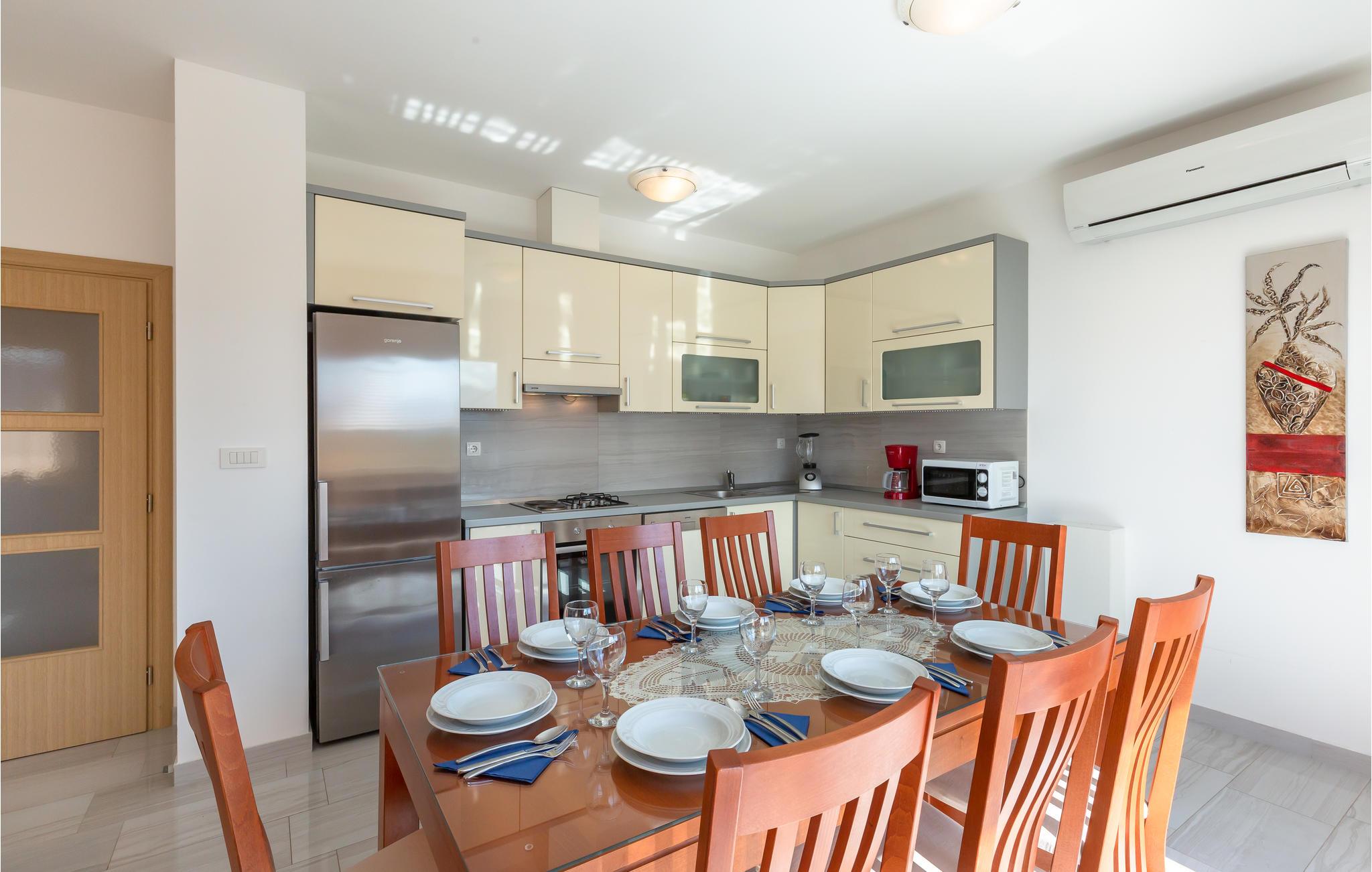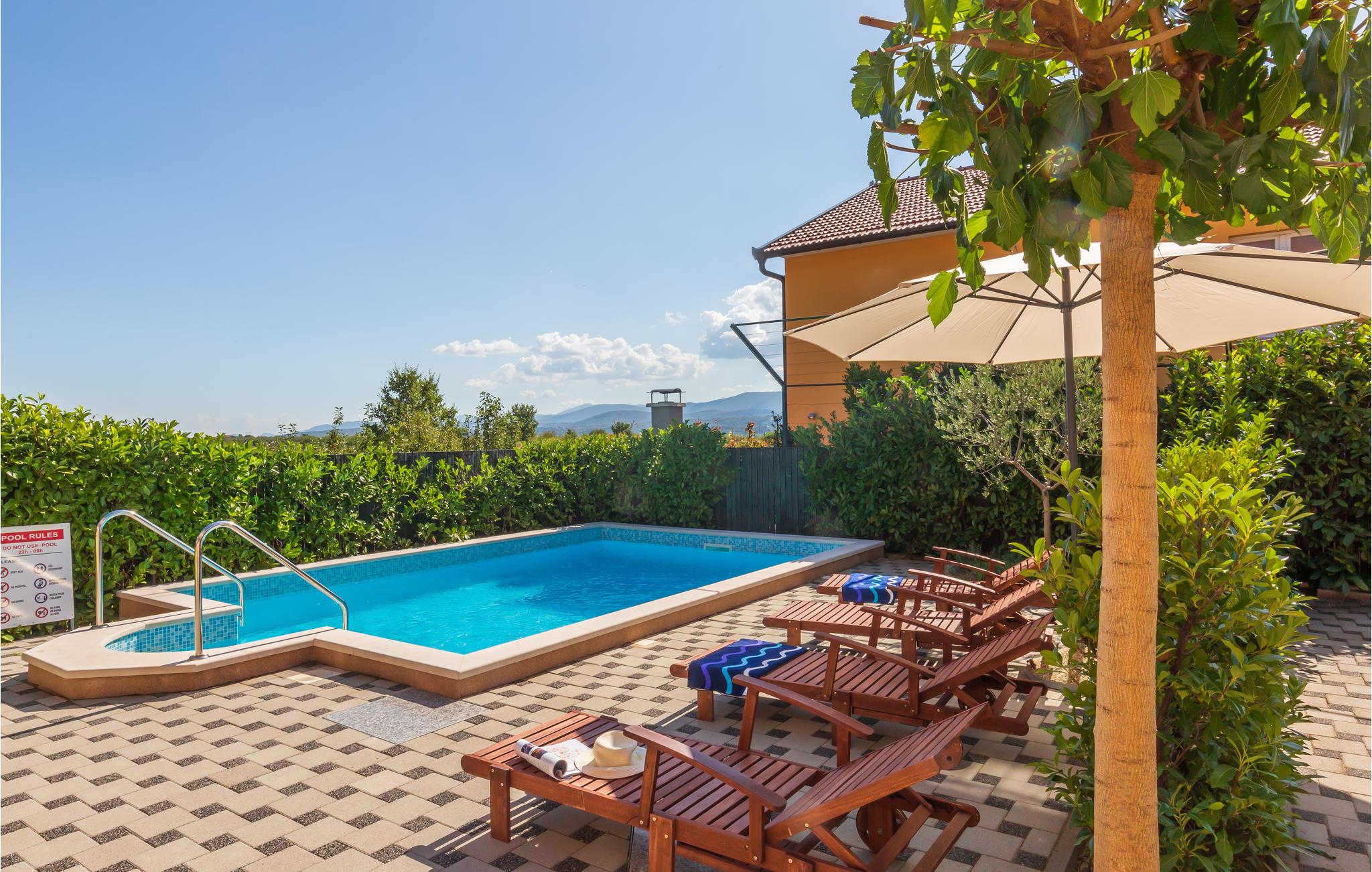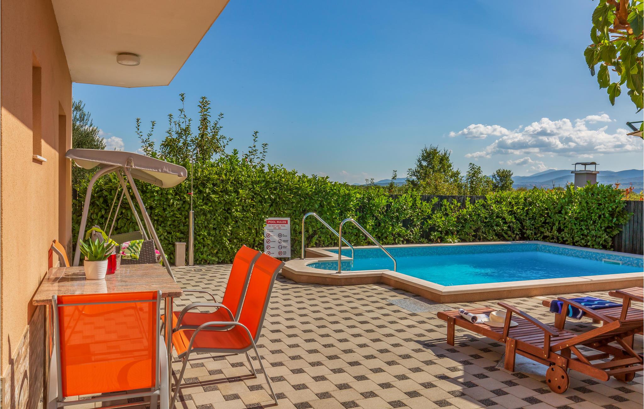Et moderne indrettet feriehus i Prolozac Donji i nærheden af byen Imotski. Det er godt indrettet til en behagelig og afslappende ferie. Afkøling giver den udendørs pool jer, og sportsligt kan I være aktive i fitnessrummet med både billard, bordtennis og bordfodbold. På grillen kan I lave lækker mad til hele familien.