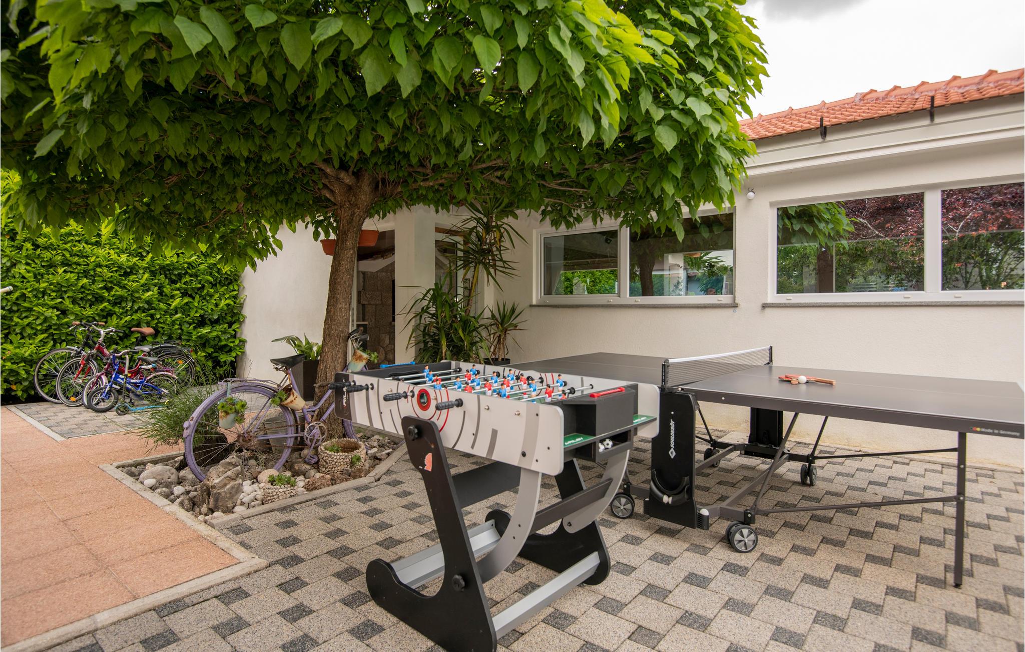 Det er moderne indrettet og godt udstyret. Huset består af to boligenheder med indgang udefra. Bagerst i huset er der et værelse med billard, bordfodbold og bordtennis, hvor I kan tage en dyst, mens de mindste plasker løs i børnebassinet med hydromassage.
