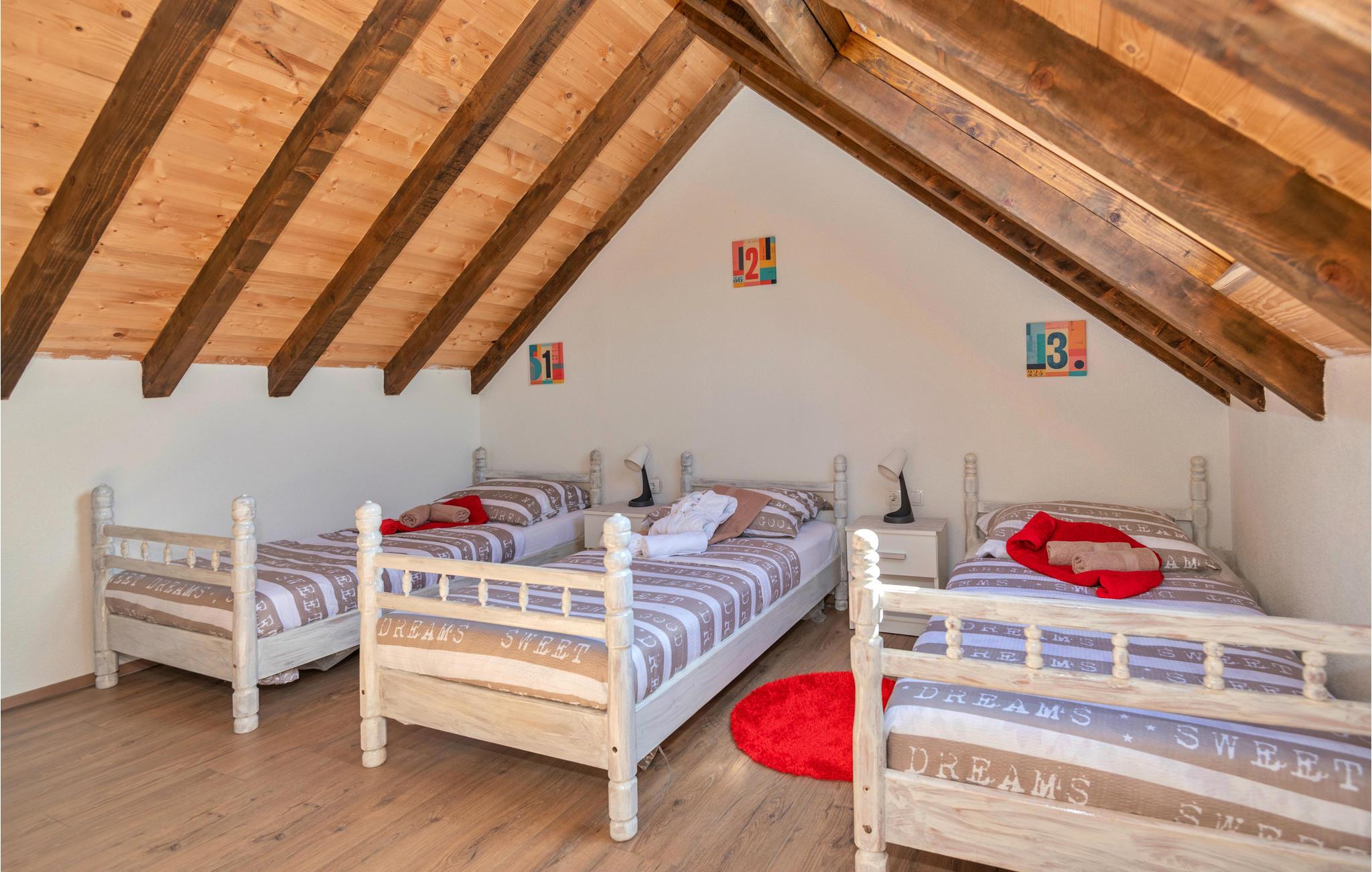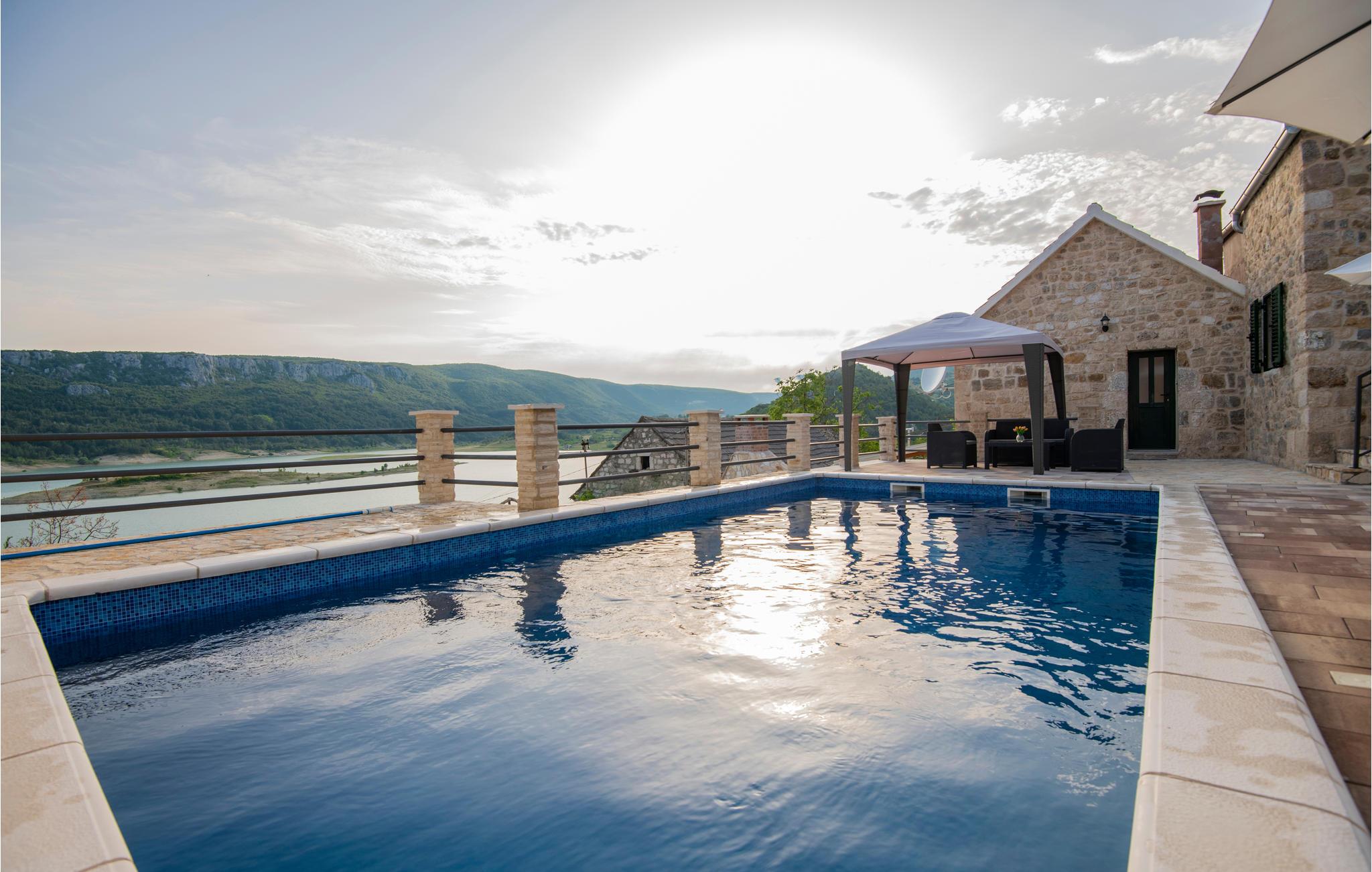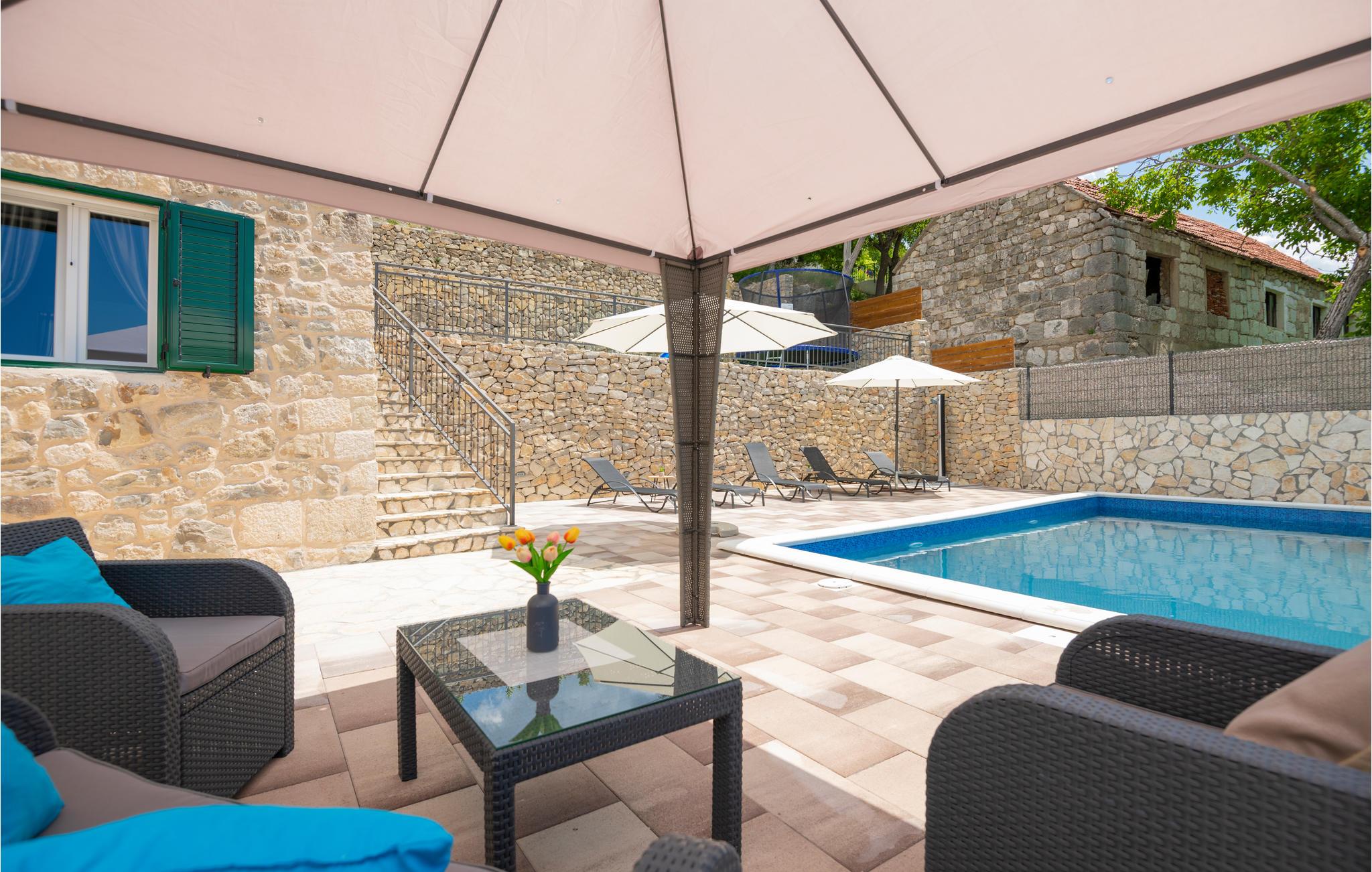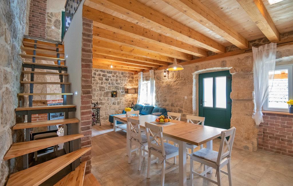 Dette charmerende stenhus med pool er kærligt møbleret og ligger i den lille by Ricice i det centrale Dalmatien. Det består af en stueetage, den øverste etage og en loftsrum (laveste højde 120 cm) og er forbundet med indvendige trapper.