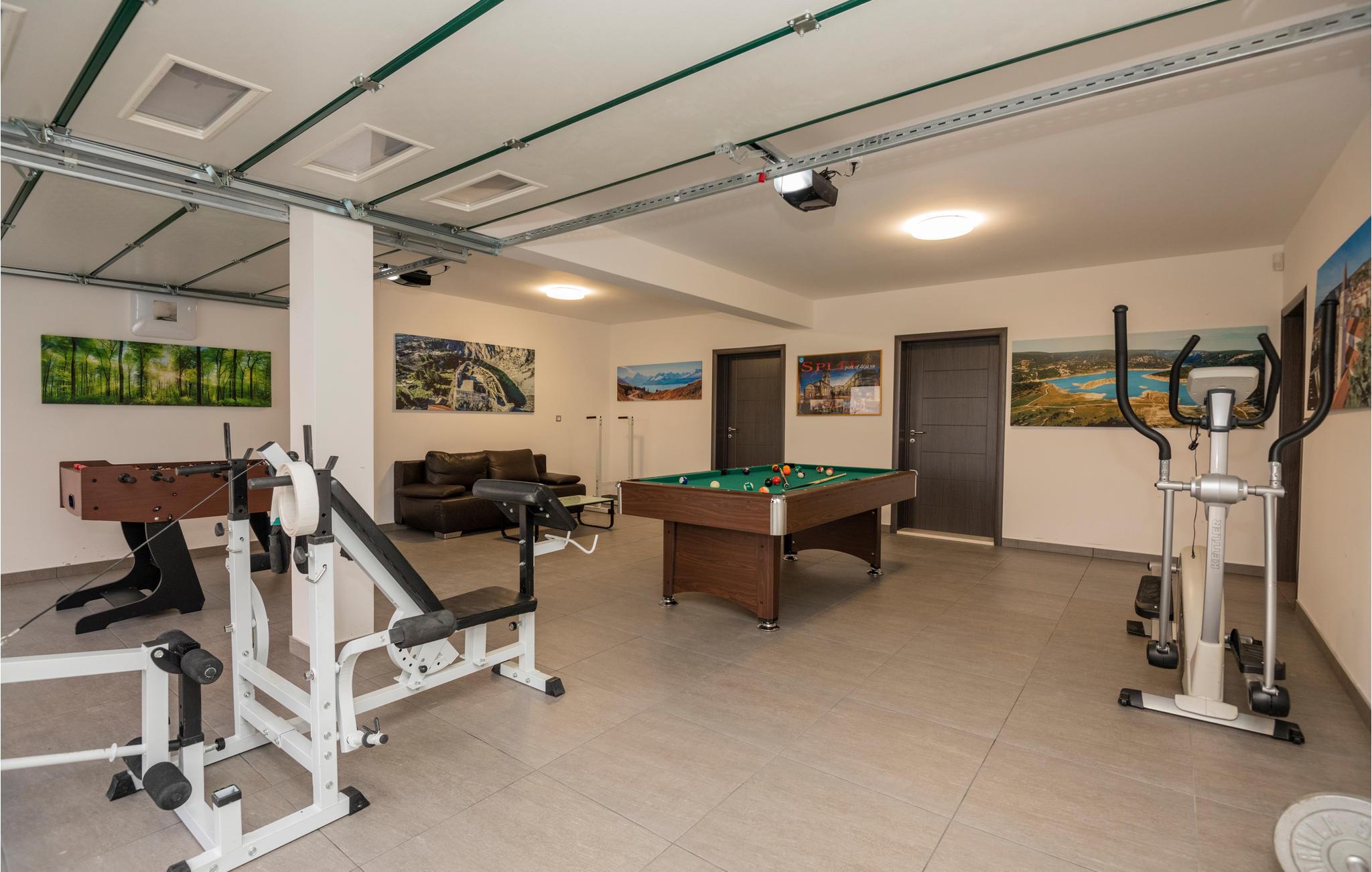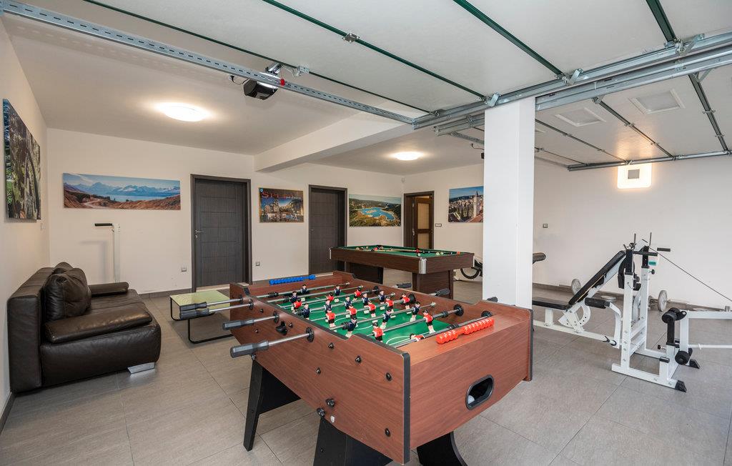 Husets moderne interiør tilbyder jer alt, hvad I har brug for til et komfortabelt ophold. De stilfulde indendørs områder inviterer jer til at sætte jer til rette i en af de store, komfortable sofaer og lade dagen slutte af. Der er også masser af aktiviteter for både store og små. Benyt fitnessområdet for at holde jer i form, eller tilbring en underholdende tid i spillelokalet med bordfodbold og billard. Børnene kan lege på husets egen legeplads og hoppe på trampolinen, mens I slapper af i haven eller spiller en omgang bordtennis.