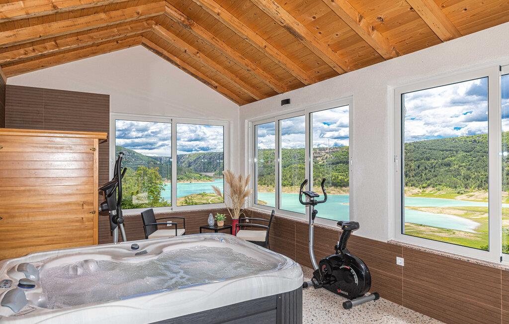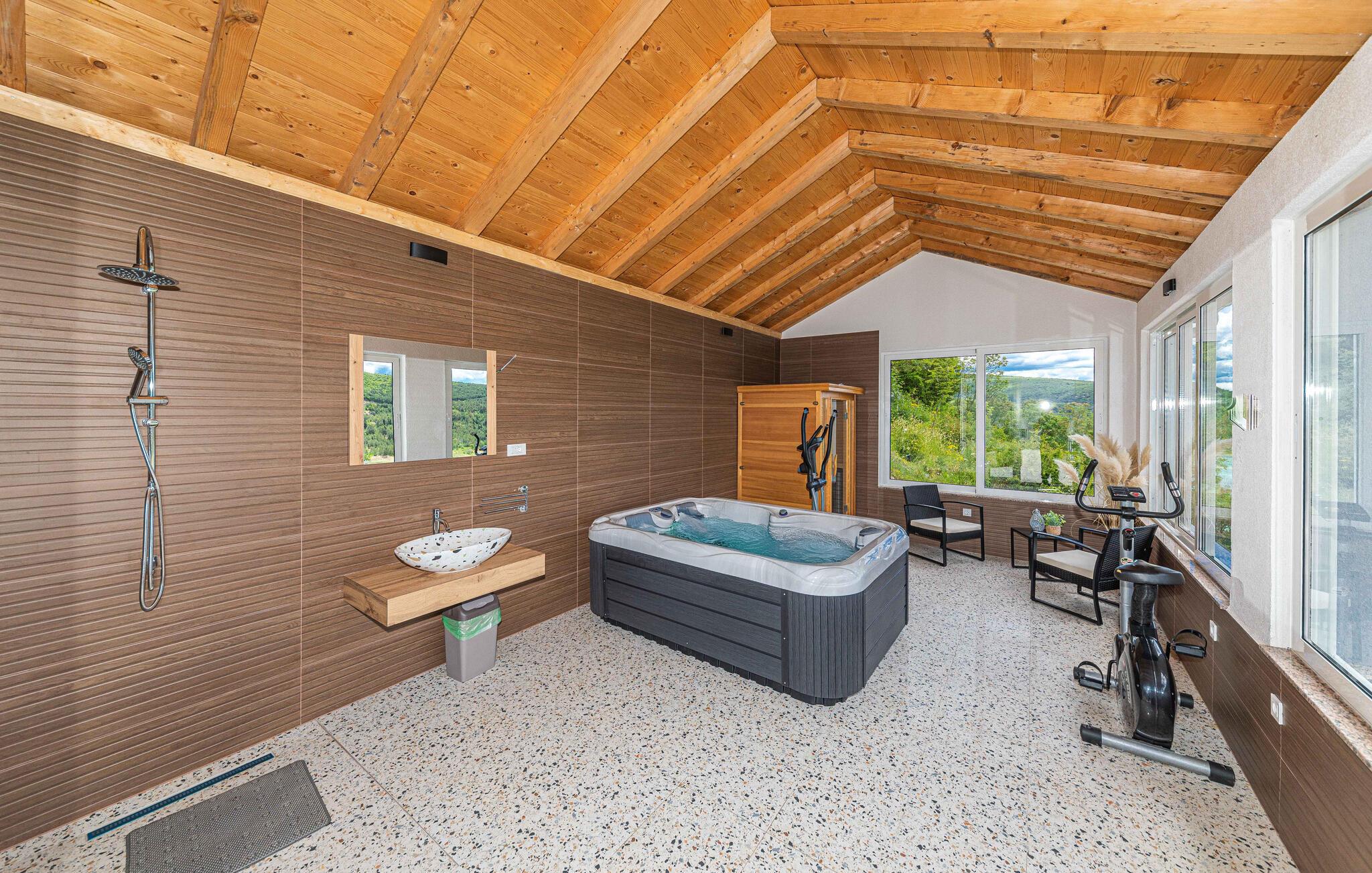 Dette moderne feriehus ligger i et malerisk landskab og forkæler jer med komfortable ekstrafunktioner, der vil gøre jeres ferie til en uforglemmelig oplevelse. Føl jer hjemme i det smagfulde interiør, mens I nyder hyggelige måltider og streamer jeres yndlingsserier. Hold jer i form på motionscyklen og forkæl jer selv med nogle forkælelsesøjeblikke i saunaen eller spabadet.