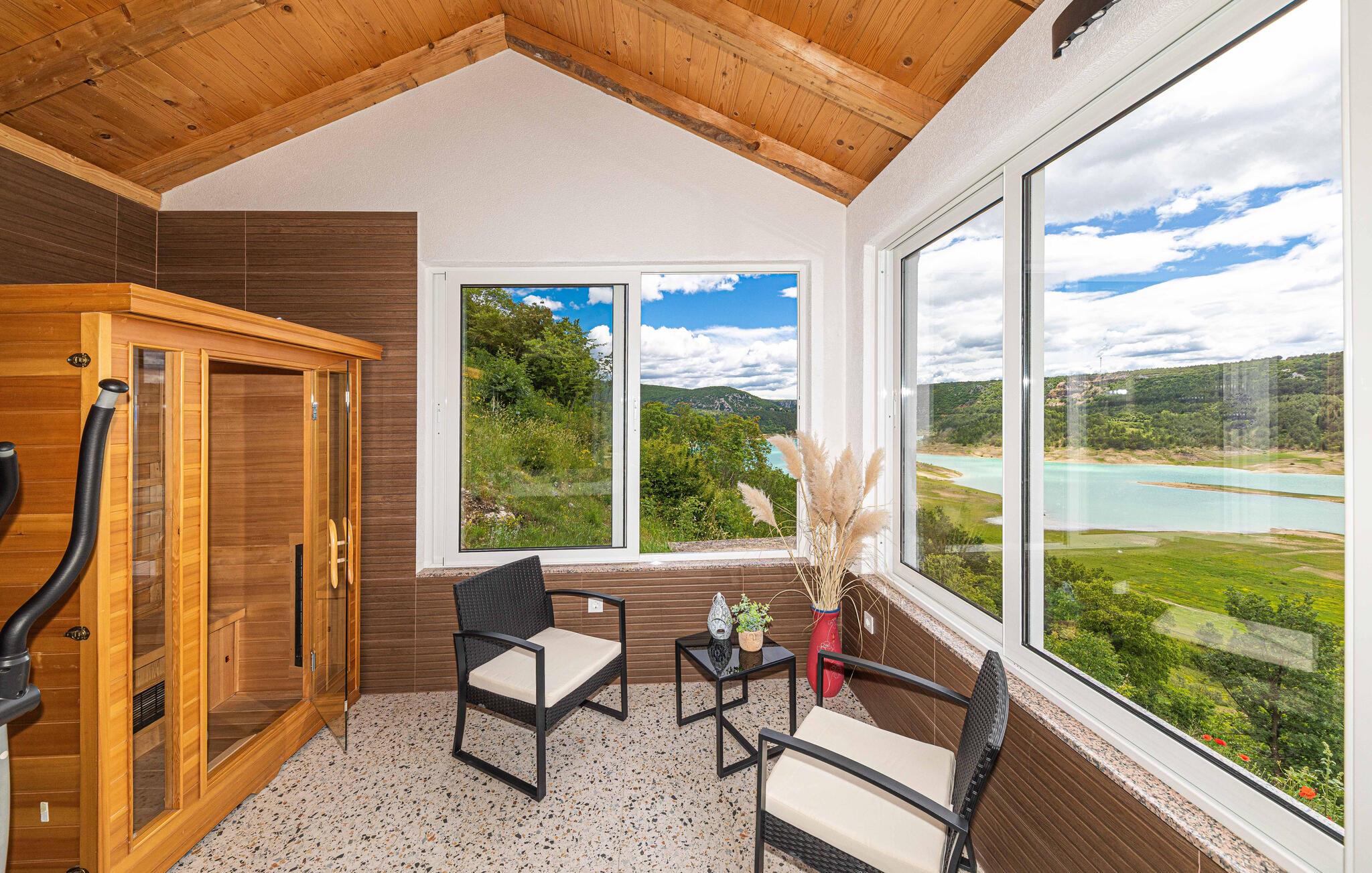 På jeres rummelige solterrasse kan I nyde den fredfyldte atmosfære på en liggestol og kigge ud over det fantastiske naturlandskab. Glæd jer til stemningsfulde måltider under den klare stjernehimmel.