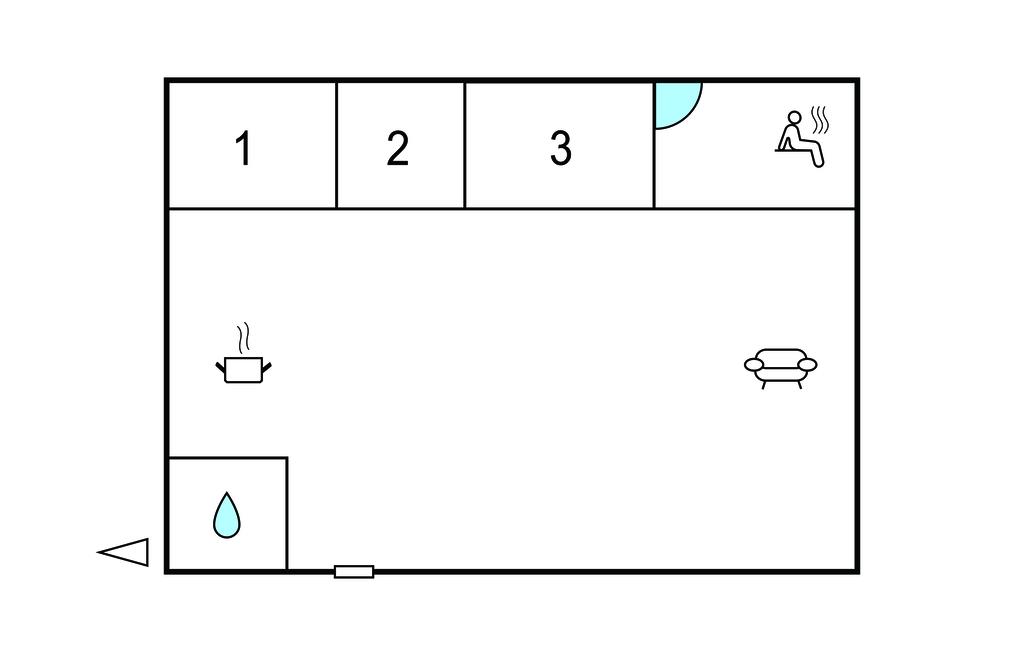 Opholdsstue/køkken 20m2 - 2 Sovepladser. (Sofa, madras eller lignende).