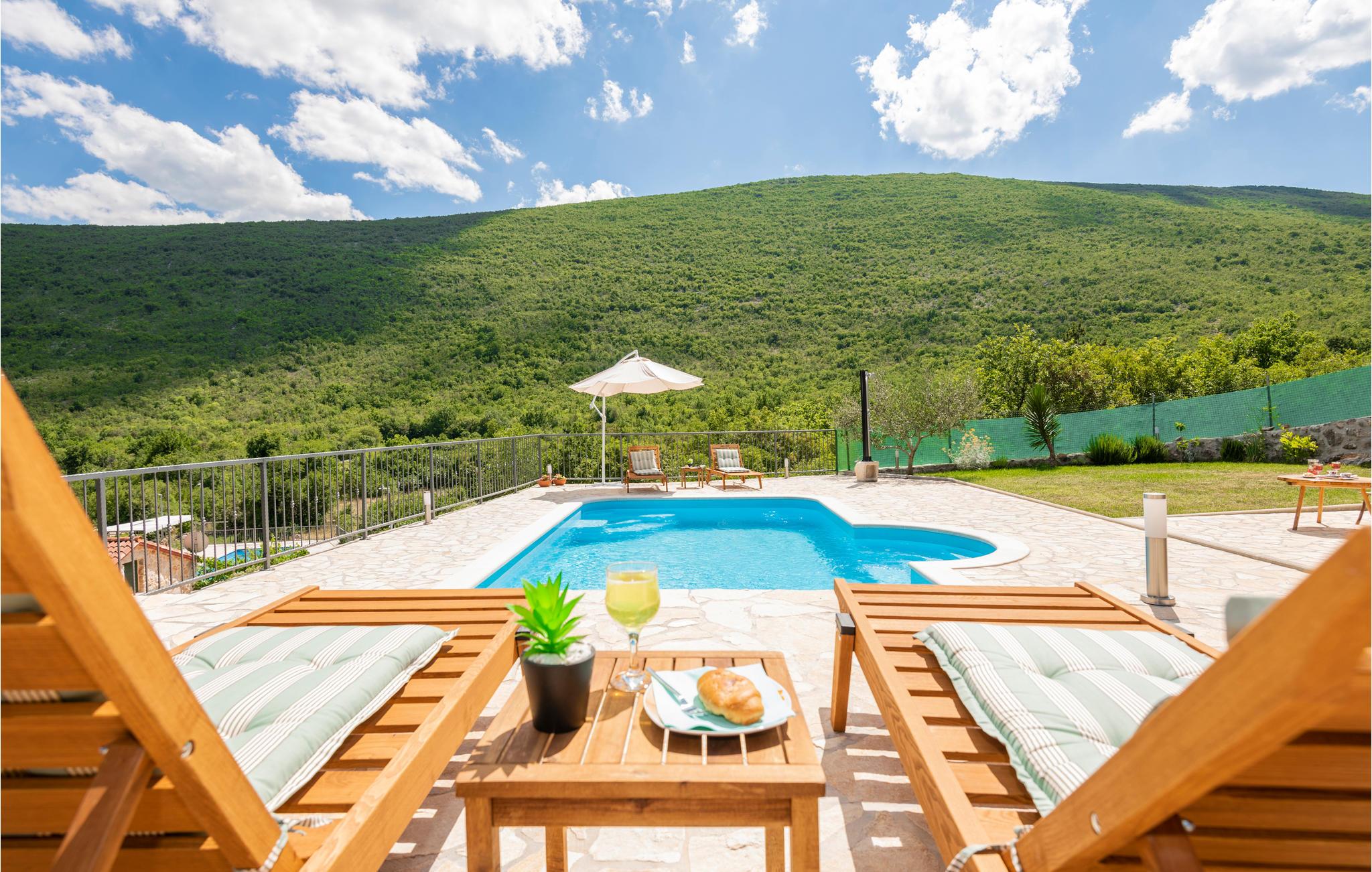 Glæd jer til et stilfuldt feriehus i Kroatien, som vil tilbyde jer utrolig meget plads. Husets rustikke detaljer giver en særlig atmosfære, som automatisk får jer til at sænke skuldrene og slappe af. Grunden byder på en grill, overdækket terrasse og udendørsspil til de mindste gæster, så alle får det sjovt og hyggeligt. Den udendørs swimmingpool med liggestole er et ideelt sted at nyde solen og køle ned.