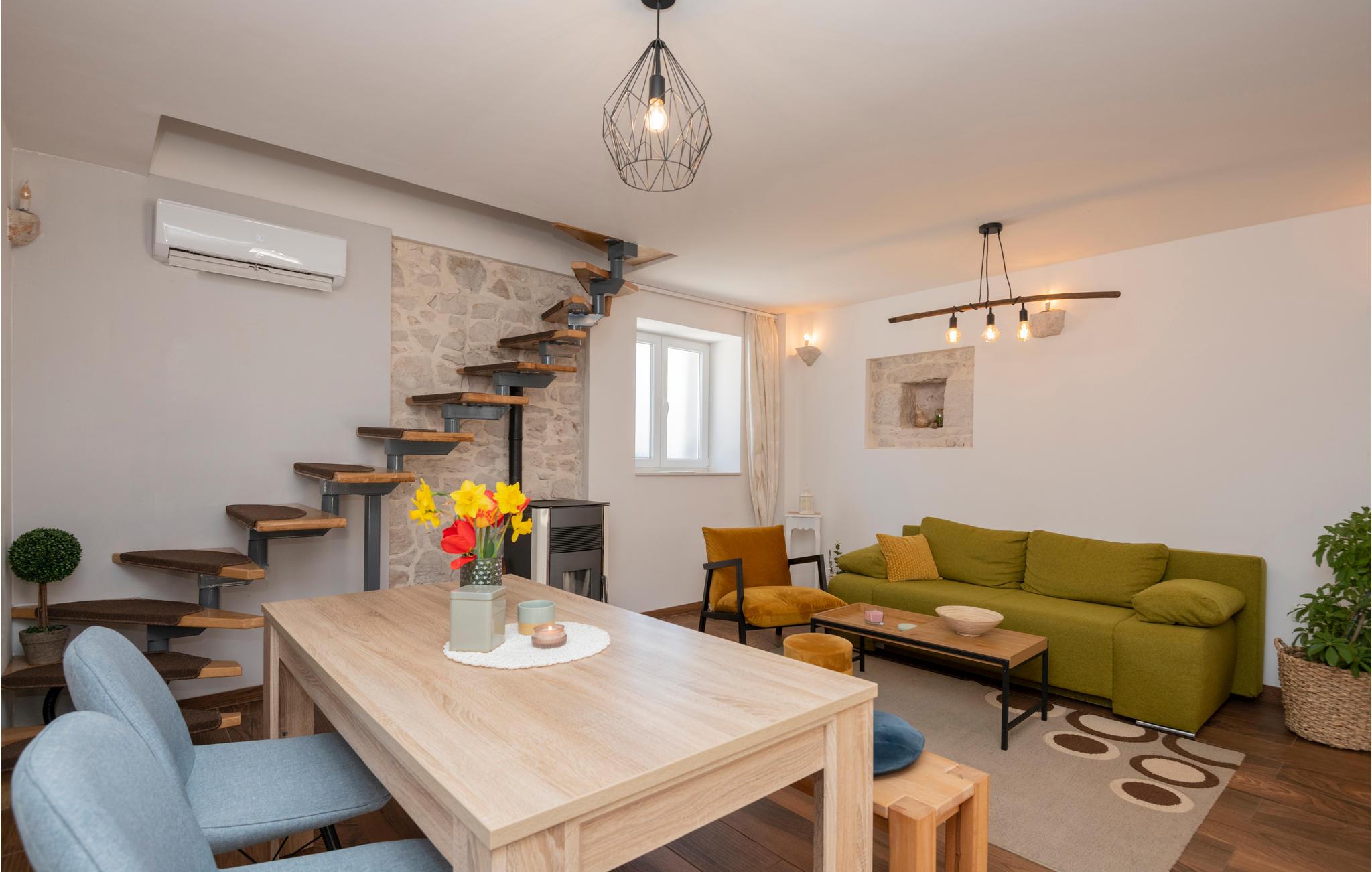 Dette flotte, renoverede feriehus ligger på en bakke på nordsiden af ??Biokovo Naturpark, ikke langt fra byen Imotski. Huset er smagfuldt indrettet og emmer af en varm atmosfære, så alle familiemedlemmer vil føle sig hjemme her.