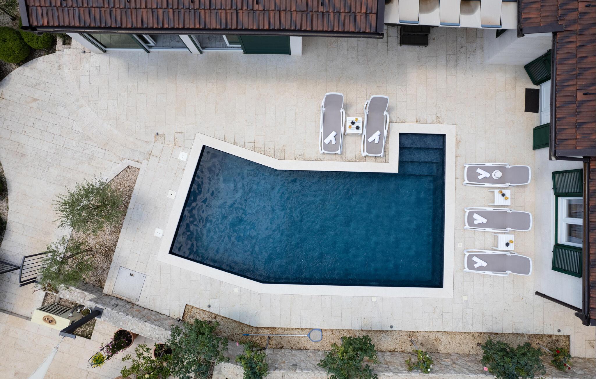 I baglandet ved Makarska Riviera og ikke langt fra byen Imotski finder I denne ekstremt smukke ejendom med swimmingpool.