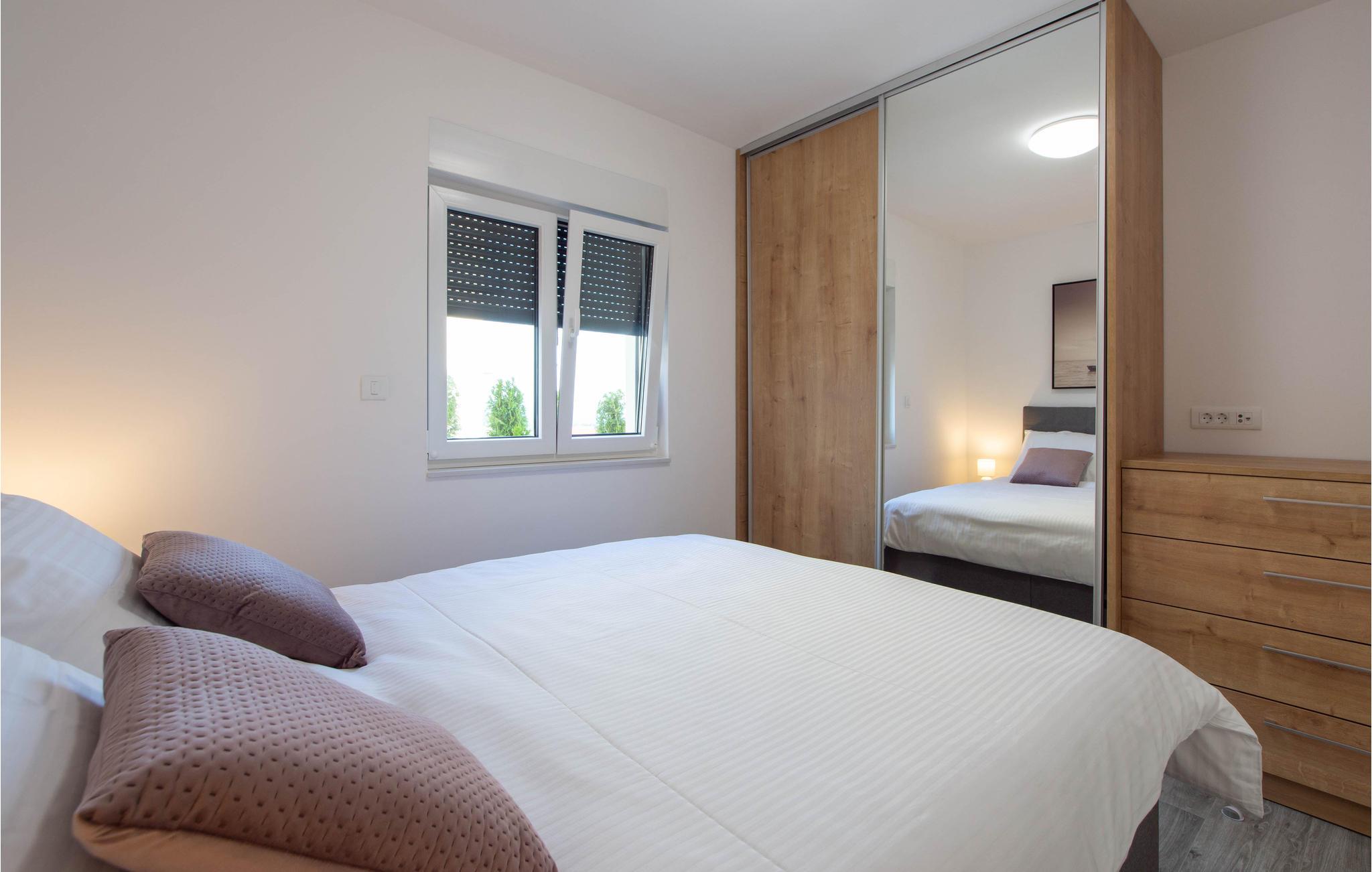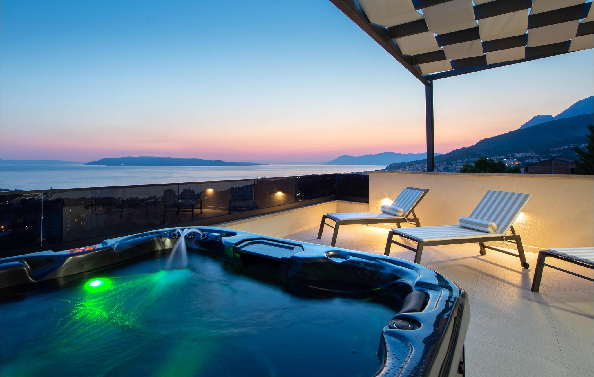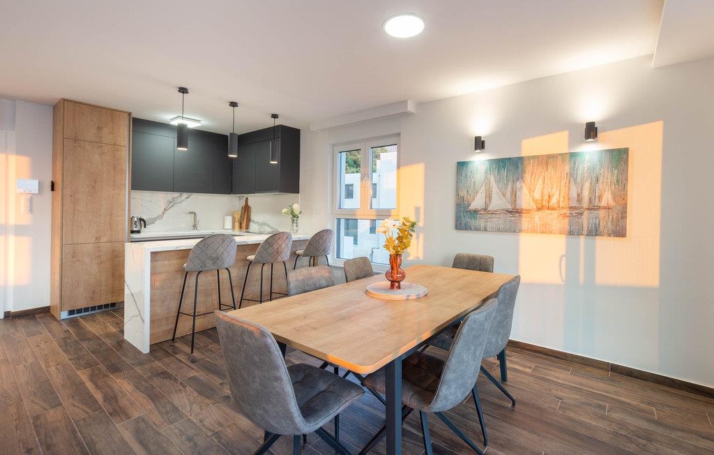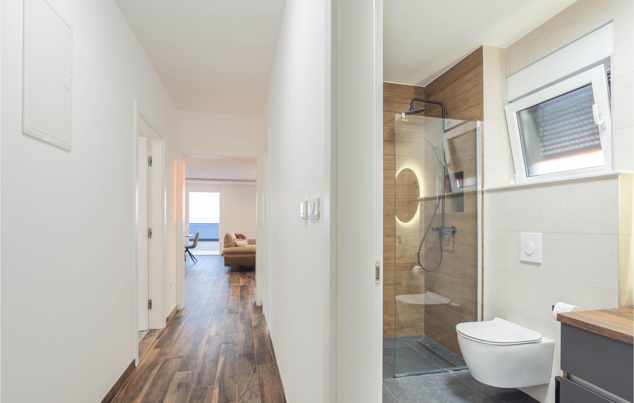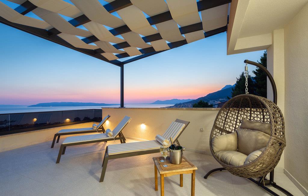 Planlægger I en ferie med familien? Så har I fundet jeres drømmebolig her. Denne stilfulde lejlighed i et moderne hus troner over centrum af Makarska. I kan næsten se det som jeres private hotel. Antallet af soveværelser, badeværelser og toiletter sørger for afslapning og privatliv. Den smarte indretning emmer af hygge, og den smagfuldt indrettede stue giver jer også mulighed for at lave noget i huset sammen med familien. Faciliteterne i huset fuldendes af et fitnessrum og et fritidsrum.