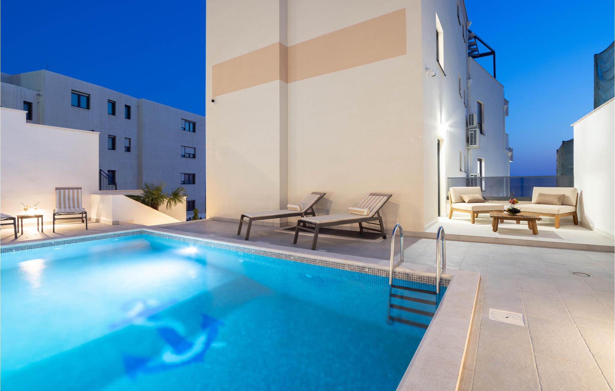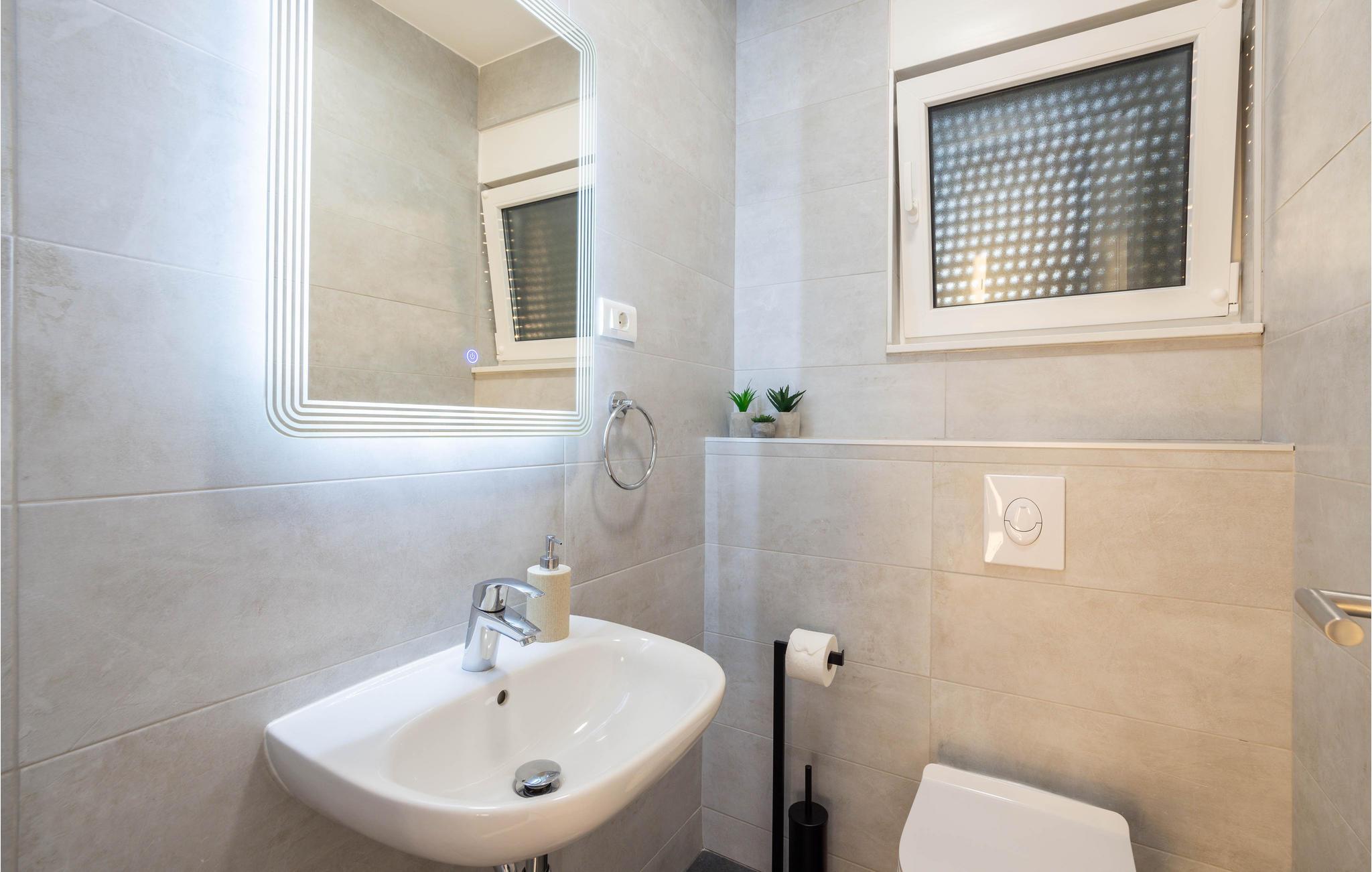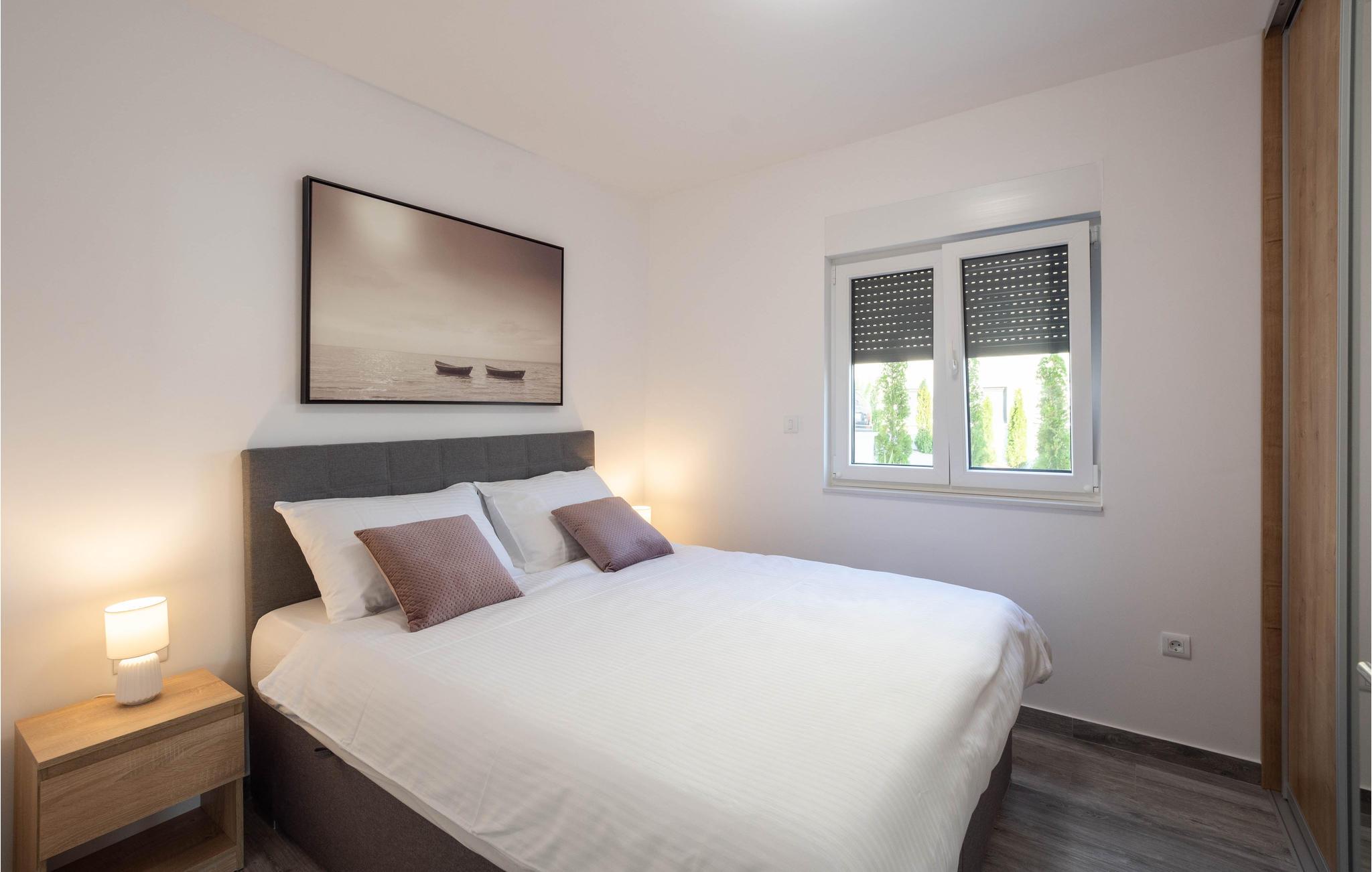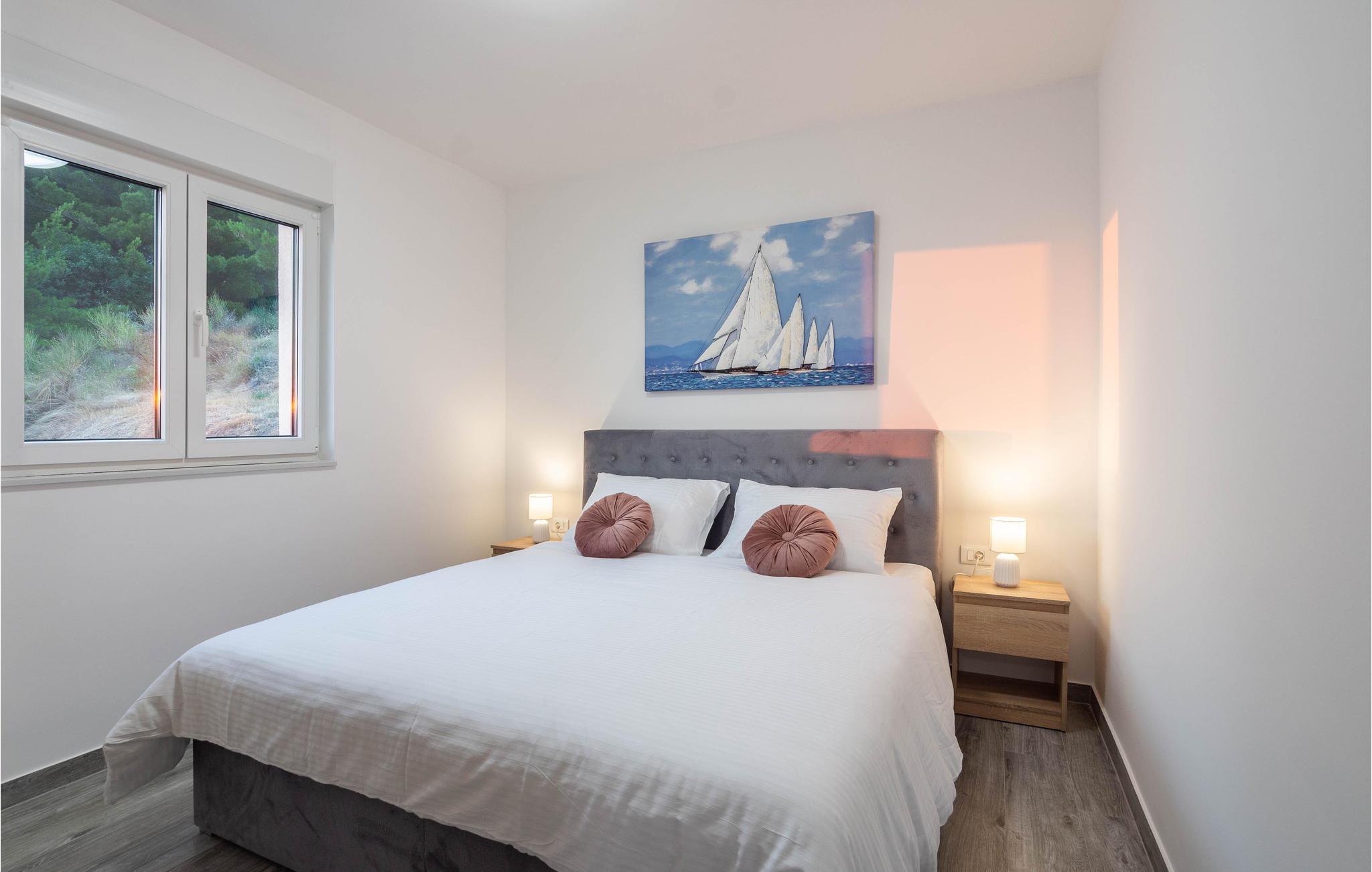 Planlægger I en ferie med familien? Så har I fundet jeres drømmebolig her. Denne stilfulde lejlighed i et moderne hus troner over centrum af Makarska. I kan næsten se det som jeres private hotel. Antallet af soveværelser, badeværelser og toiletter sørger for afslapning og privatliv. Den smarte indretning emmer af hygge, og den smagfuldt indrettede stue giver jer også mulighed for at lave noget i huset sammen med familien. Faciliteterne i huset fuldendes af et fitnessrum og et fritidsrum.