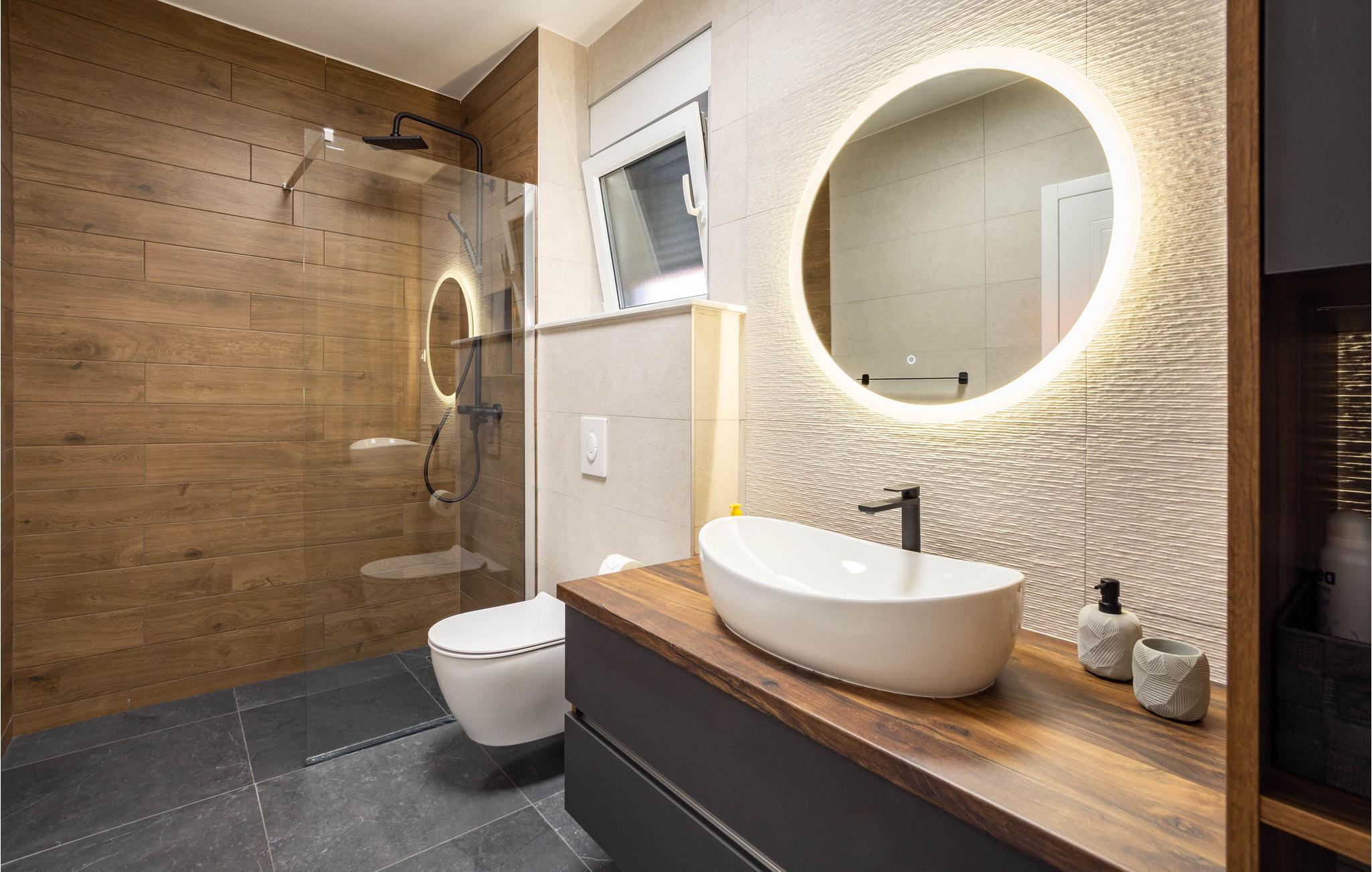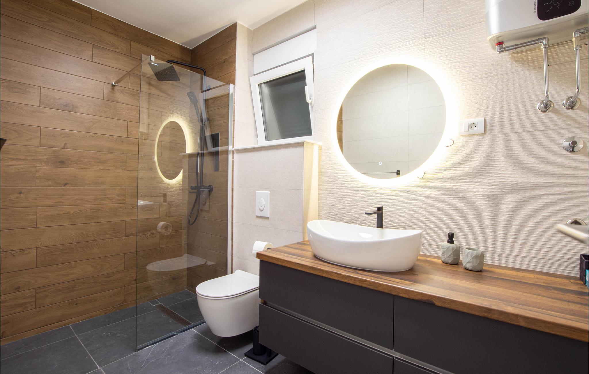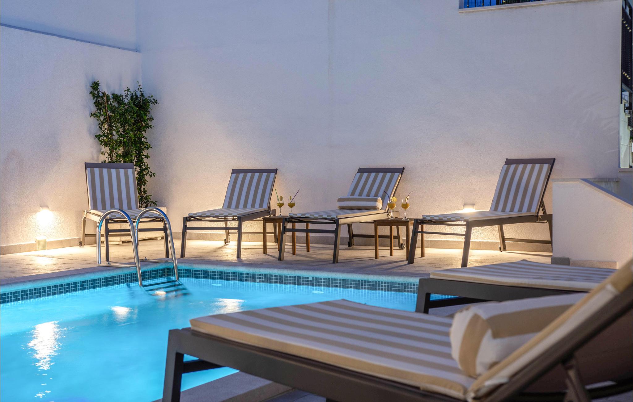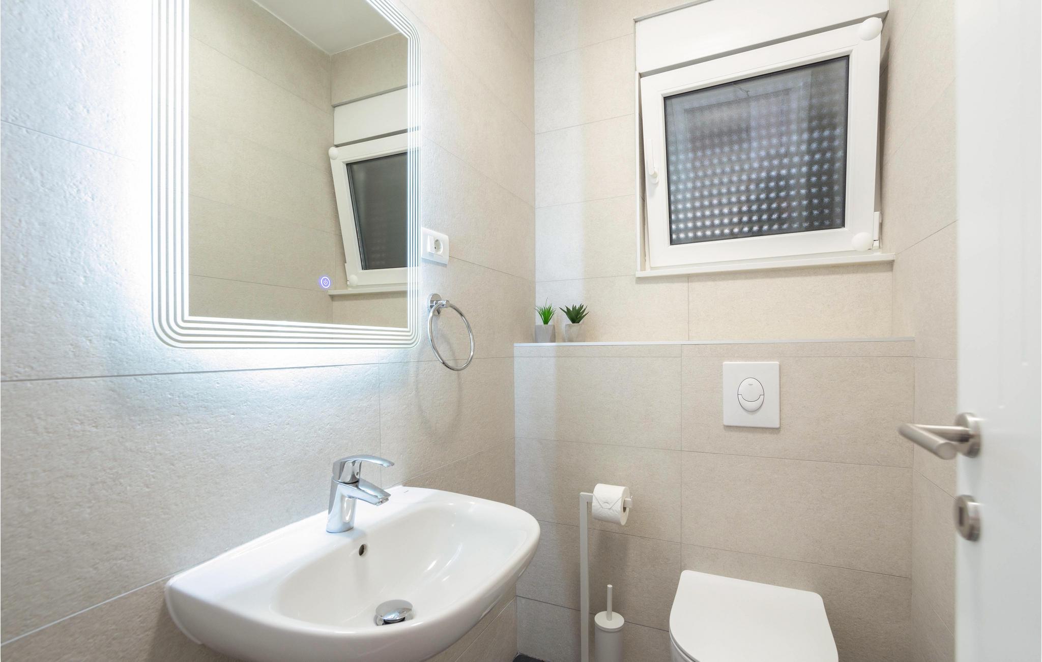 Planlægger I en ferie med familien? Så har I fundet jeres drømmebolig her. Denne stilfulde lejlighed i et moderne hus troner over centrum af Makarska. I kan næsten se det som jeres private hotel. Antallet af soveværelser, badeværelser og toiletter sørger for afslapning og privatliv. Den smarte indretning emmer af hygge, og den smagfuldt indrettede stue giver jer også mulighed for at lave noget i huset sammen med familien. Faciliteterne i huset fuldendes af et fitnessrum og et fritidsrum.
