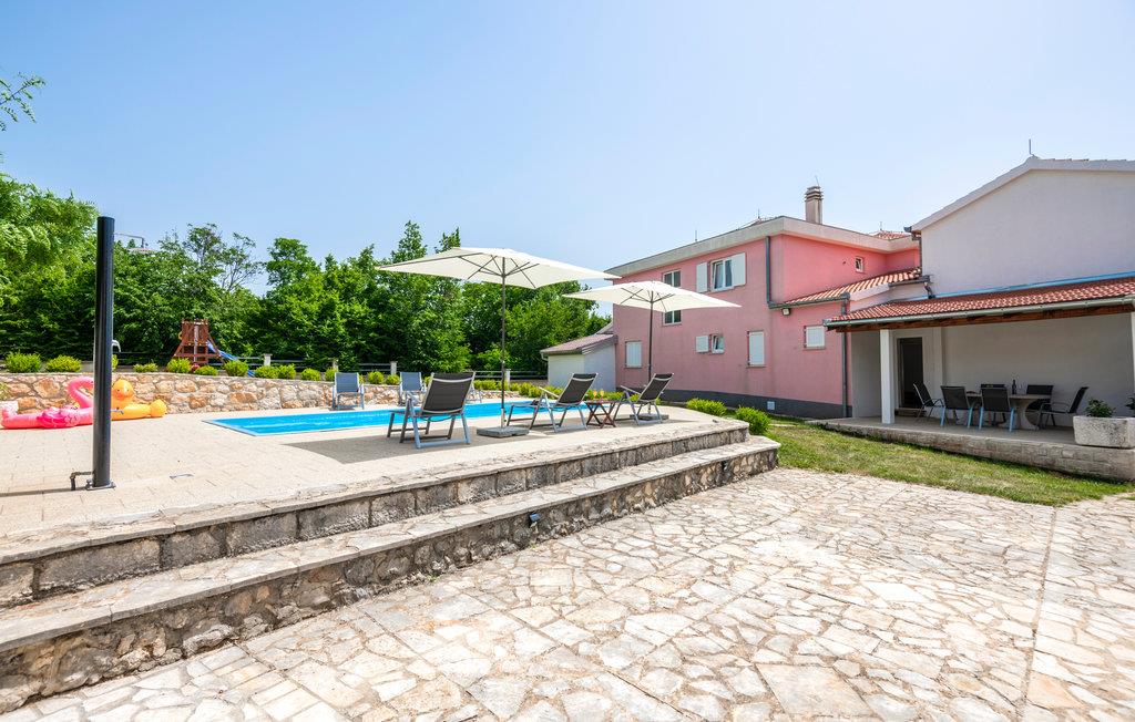 Huset er rummeligt og behageligt og traditionelt indrettet. Udendørspoolen ligger dejligt ugenert i husets baghave. Bag huset er der desuden en velplejet park med græsplæne og terrasse med spabad. Her kan I virkelig slappe af. Der er også et bord og en hyggelig solkrog, hvor man kan sætte sig med en bog. Ikke nok med det, men der er også et udekøkken, cykler, et billardrum og meget andet til at forsøde jeres ophold. Lav jeres yndlingsretter på grillen og nyd det færdige resultat på den overdækkede terrasse og drik kroatisk vin til, så bliver det ikke mere autentisk. Ved siden af huset ligger et privat kapel, der hører med til grunden.