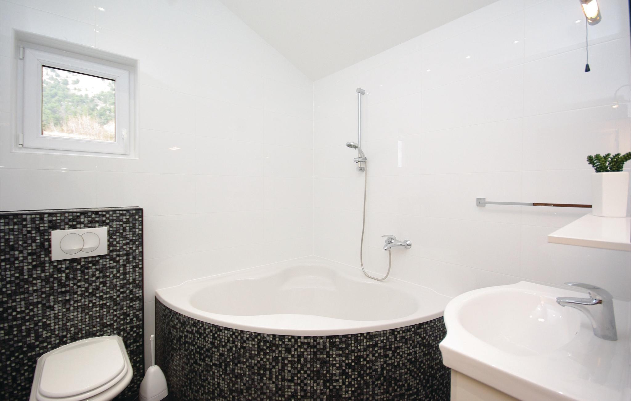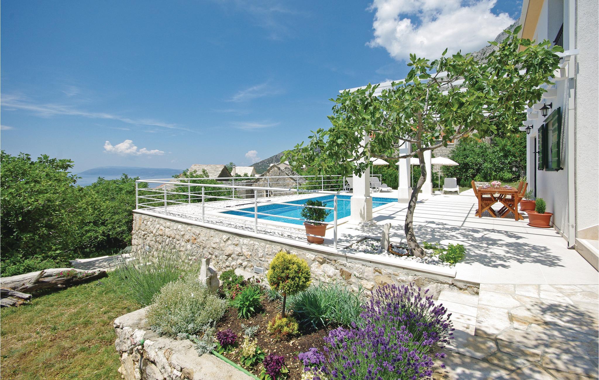 Dette godt indrettede feriehus med pool og terrasse, fra hvilken der er en betagende havudsigt, ligger i den lille by Gornje Tucepi, foran Naturparken Biokovo. I husets stueplan ligger køkken, en stue med kamin et aktivitetsrum samt et ekstra toilet. På første sal er der to soveværelser med hvert et tilhørende badeværelse. Etagerne er forbundet med en udendørs trappe. De nærmeste dejlige kiesstrande ligger ca. to km væk. Vi kan også anbefale et besøg i den populære turistby Makarska med mange underholdningsmuligheder.