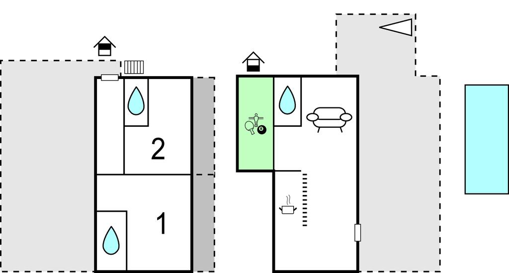 Opholdsstue/køkken - 2 Sovepladser. (Sofa, madras eller lignende).