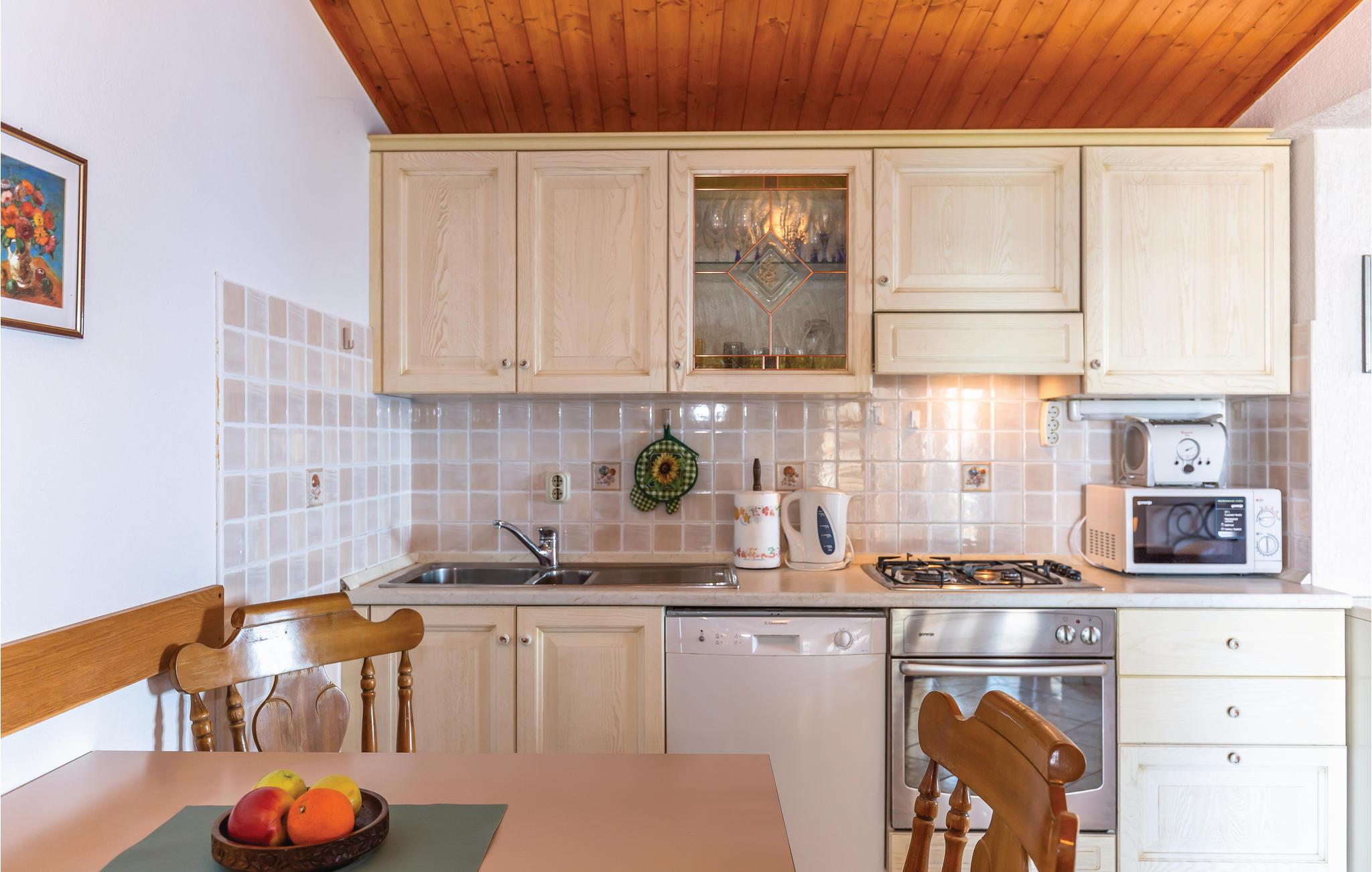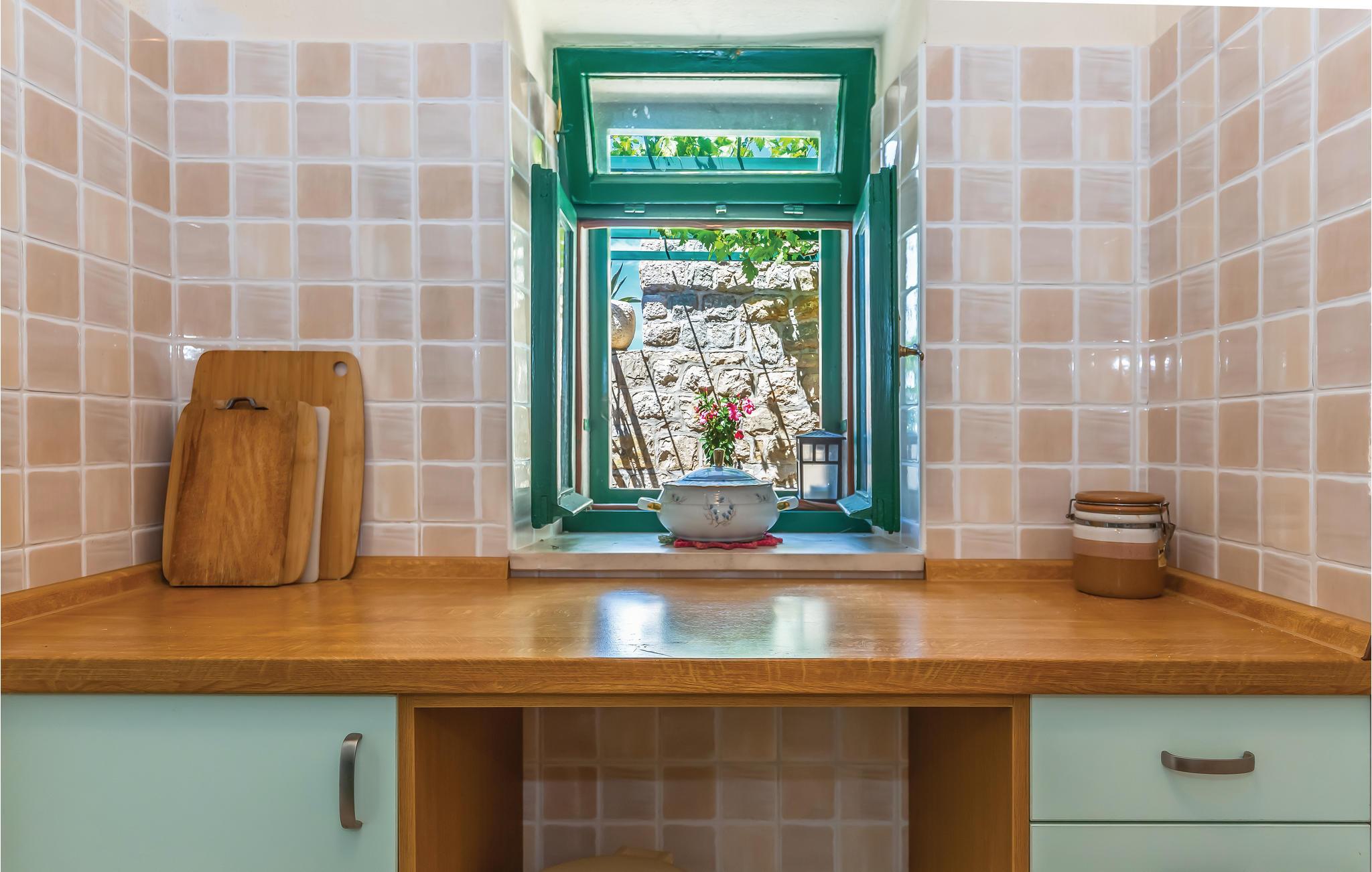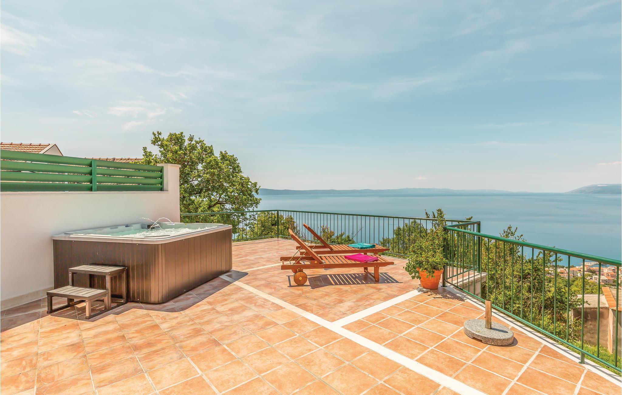 Fra dette enkelt og praktisk indrettede feriehus er der en betagende udsigt over havet. I kan nyde det dejlige klima i en whirlpool på terrassen overfor huset. Huset ligger i en lille by over Tucepi og er indrettet med to lejligheder. I den ene er der soveværelse, køkken i åben forbindelse med stuen og badeværelse, mens der i den anden ferielejlighed er stue, soveværelse, badeværelse og køkken med separat indgang til et yderligere badeværelse. Der er en stejl trappe op til soveværelset på første sal, hvor der er hyggelige skrå vægge og en laveste loftshøjde på ca. 100 cm. Det tager ikke lang tid at køre til de nærmeste skønne kiesstrande. Besøg også den livlige by Makarska.