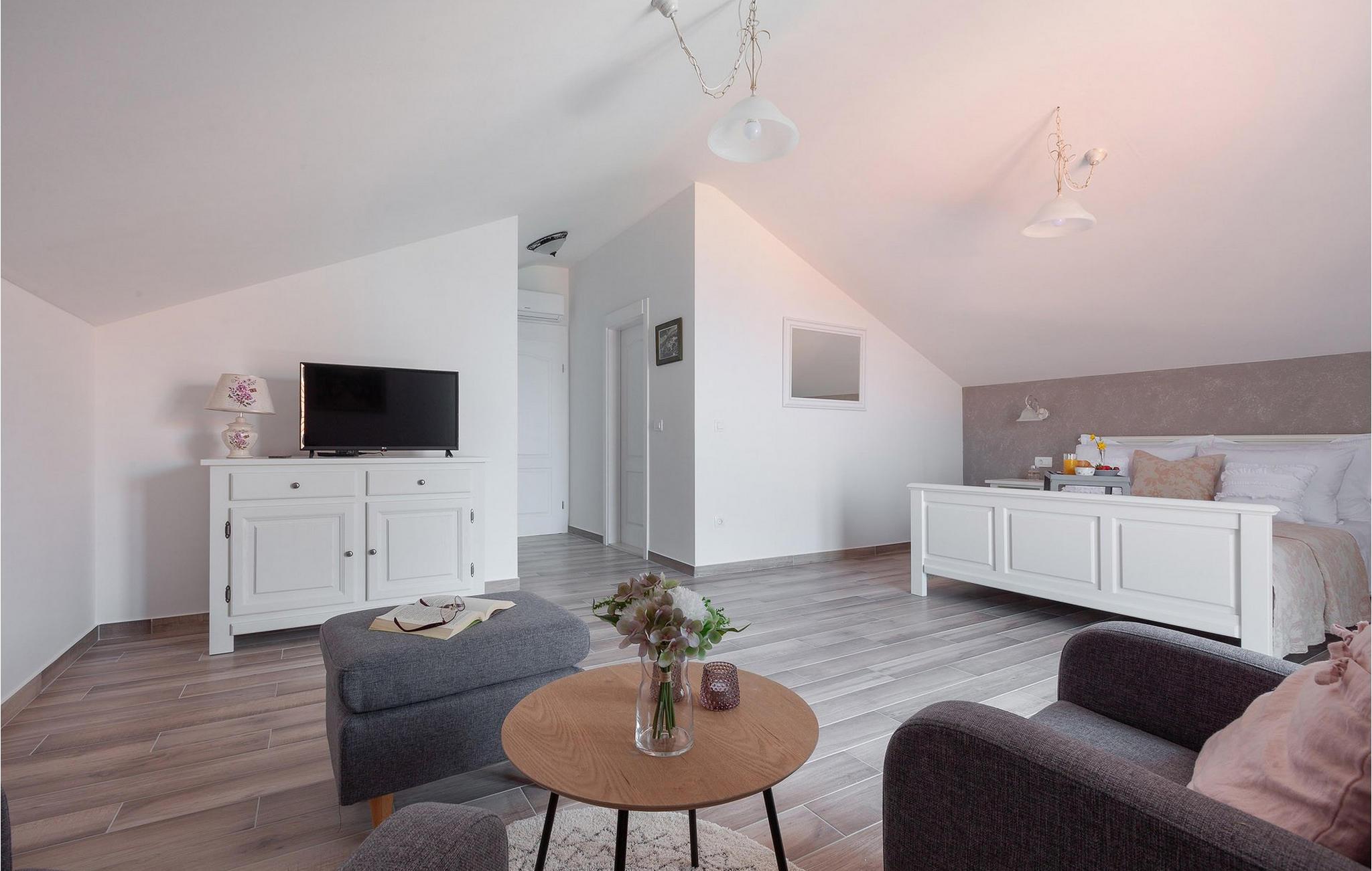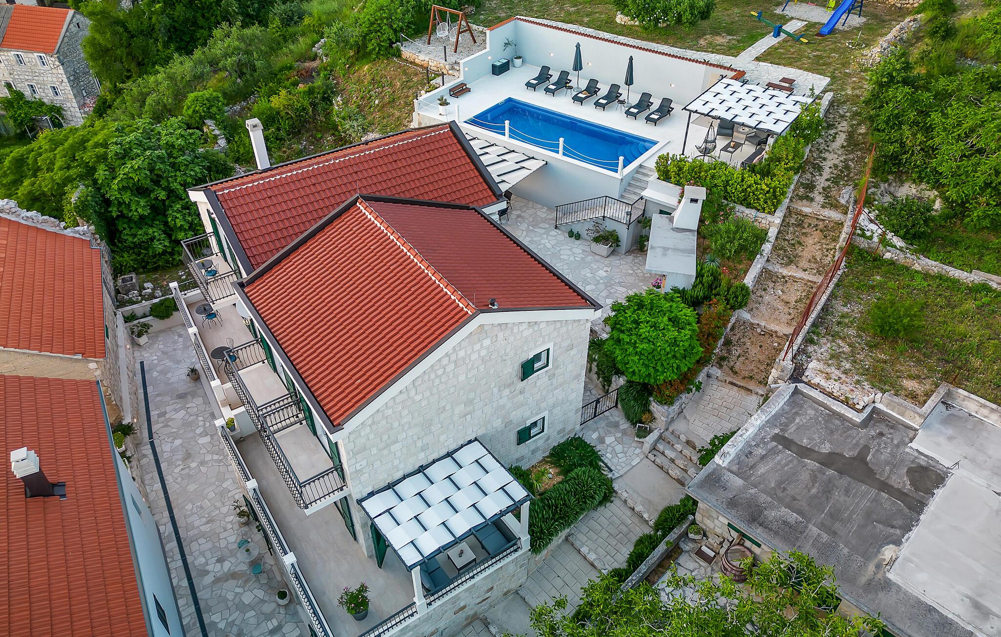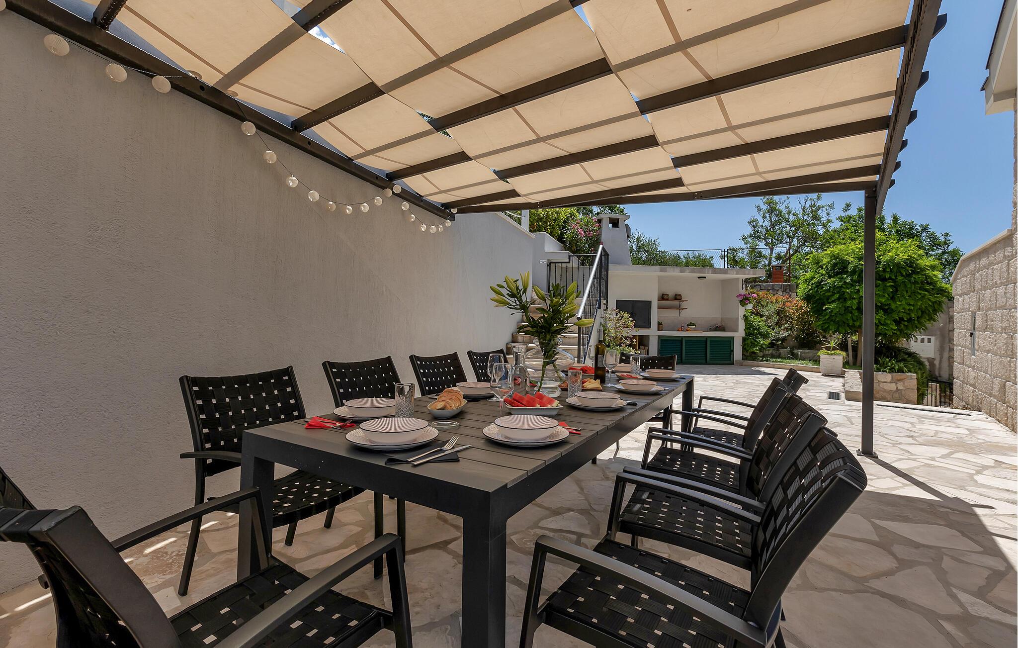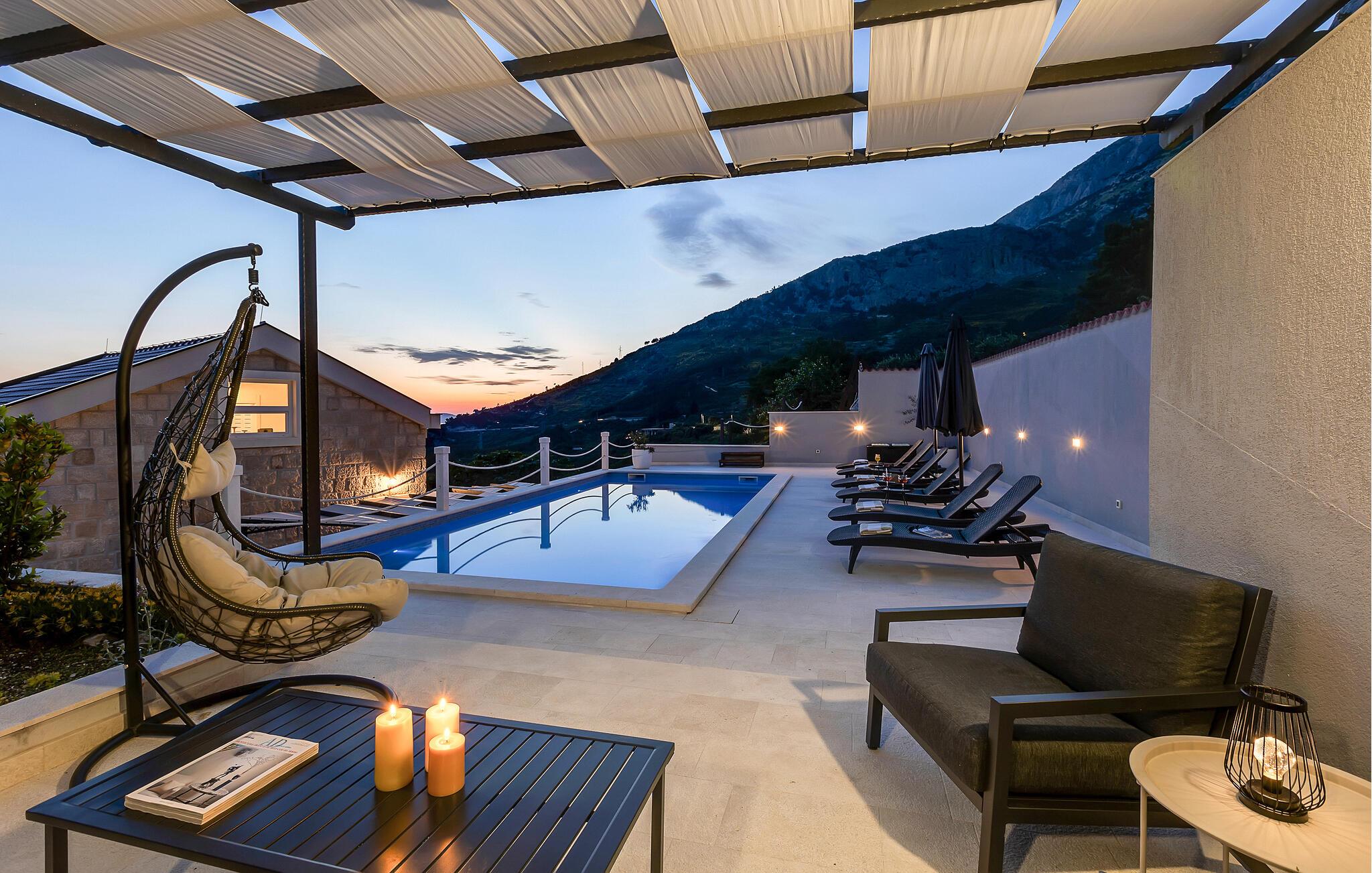 Tilbring en uforglemmelig ferie i dette rummelige feriehus med pool og havudsigt. Den smukke, luksuriøse Villa Nina i Tucepi byder jer velkommen til en privilegeret, let hævet beliggenhed mellem bjergene og havet. Den betagende med sin vellykkede blanding af rustik komfort og moderne møbler af høj kvalitet, der tilbyder dejlige højdepunkter for alle aldre. Glæd jer til lækre måltider ved det lange træbord, dyst i bordfodbold, dart eller billard, hold jer i form på træningsudstyret, og saml jer til sjove spilleaftener i den indbydende stue eller stream en spændende serie. Talrige diskret skyggefulde terrasser gør også spisning udendørs til en behagelig oplevelse. Lad batterierne op på en liggestol, mens børnene morer sig med de udendørs legefaciliteter. Nyd fantastiske solnedgange med et glas vin, glæd jer til forfriskende dukkerter i poolen, som med sin atmosfæriske belysning også lægger op til at svømme om natten, og fejr jeres tid sammen med hyggelige grillfester. Tag en bådtur, solbad på Tucepis stenstrande og nyd det krystalklare vand, mens I snorkler eller dykker. Bestig Biokovo-bjerget på en vandretur, hvor I vil blive belønnet med en betagende panoramaudsigt, og besøg charmerende kystbyer som Brela eller Baška Voda. Gå en tur gennem farverige markeder og prøv frisk fisk og skaldyr i traditionelle taverner. Bemærk venligst: Ejendommen accepterer ikke ungdomsgrupper under 30 år eller polterabender. Sådanne bookinger kan blive afvist eller annulleret uden refusion, selv ved ankomst eller under opholdet.