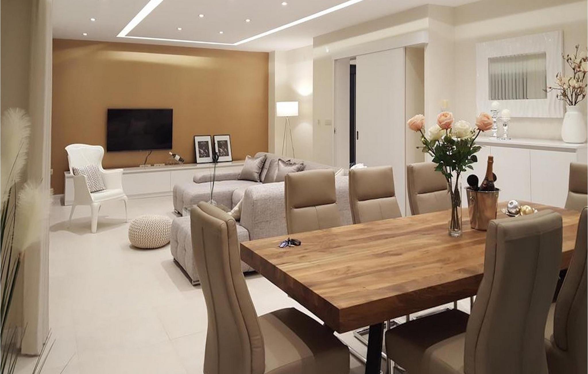 Stueetagen er indrettet med en lys komfortabel stue, spiseplads, et fuldt udstyret køkken, et af de ensuite dobbeltværelser og et separat gæstetoilet. 1. sal rummer de 3 ekstra ensuite dobbeltværelser.