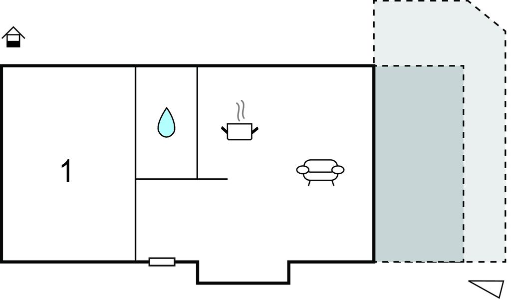 Opholdsstue/køkken 28m2 - 2 Sovepladser. (Sofa, madras eller lignende).