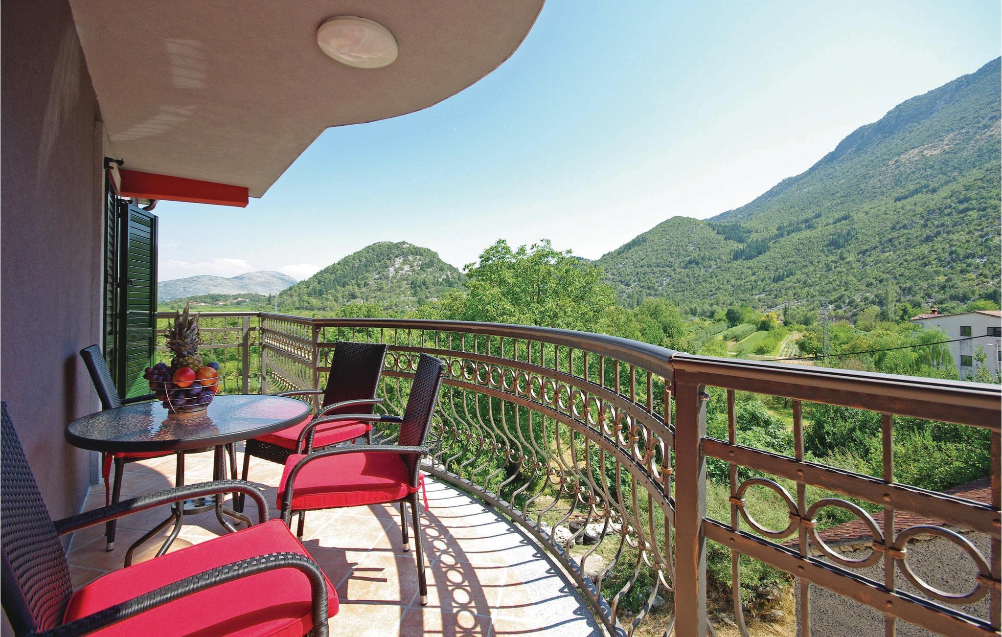 Dette indbydende og rummelige feriehus ligger i en lille by i Dalmatiens bagland. I huset er der tre lejligheder. I stueplan er der aktivitetsrum og på første sal ligger den største lejlighed med fire soveværelser. På anden sal er der en lejlighed med to soveværelser, samt endnu en lejlighed med et soveværelse og to soveværelser på hemsen, med en laveste lofthøjde på 120 cm. På niveau med første sal er der en udendørs pool, med skøn udsigt over vinbjergene. I en sidebygning er der en grill og et sommerkøkken. Du finder også en multifunktionel legeplads og en børnelegeplads. Nærmeste strande i Ploce ligger i en afstand af ca. 15 km. Der er kun en time i bil til Makarska.