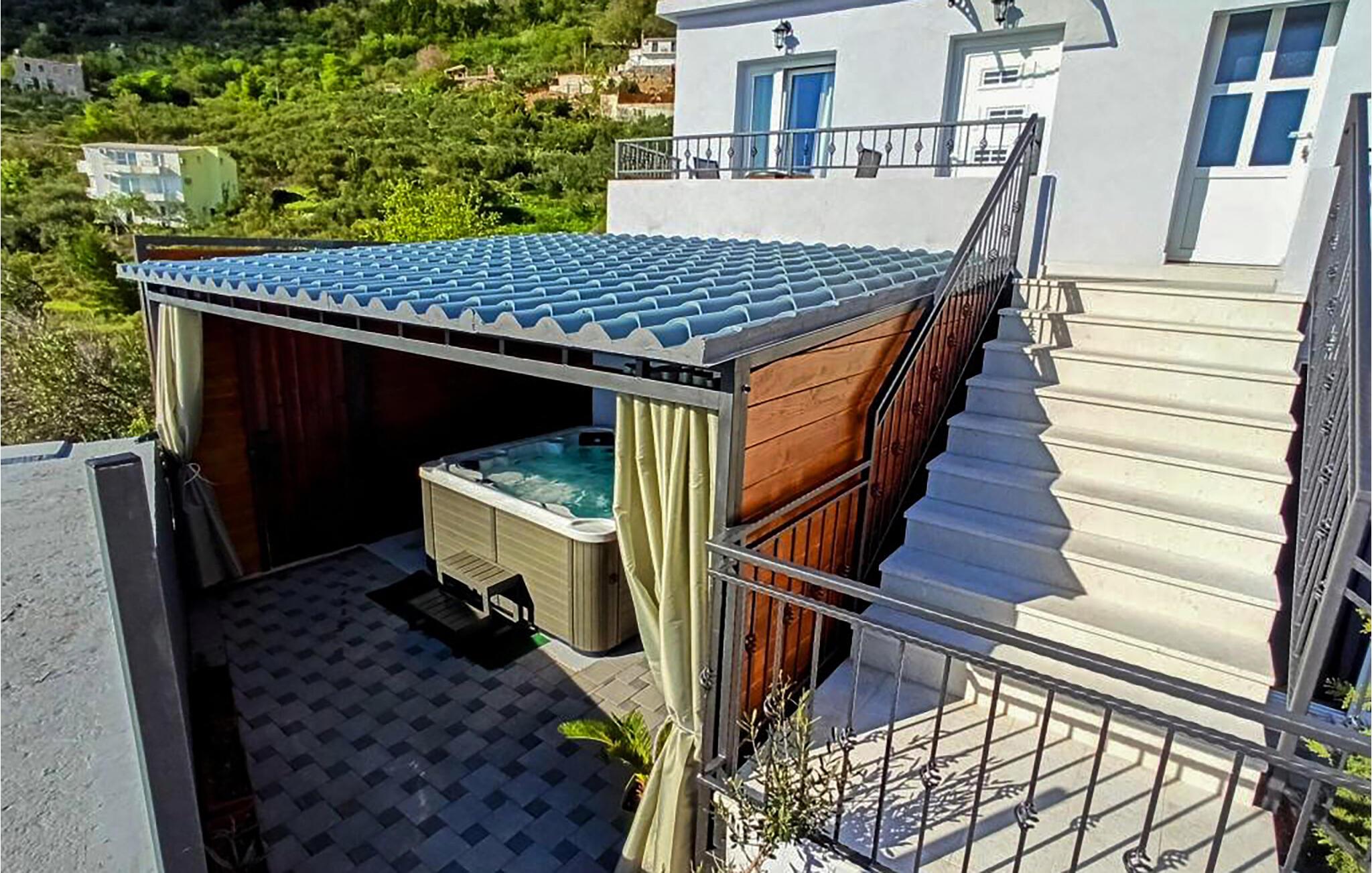 Glæd jer til en behagelig ferie i dette feriehus med pool, spabad og sensationel havudsigt.