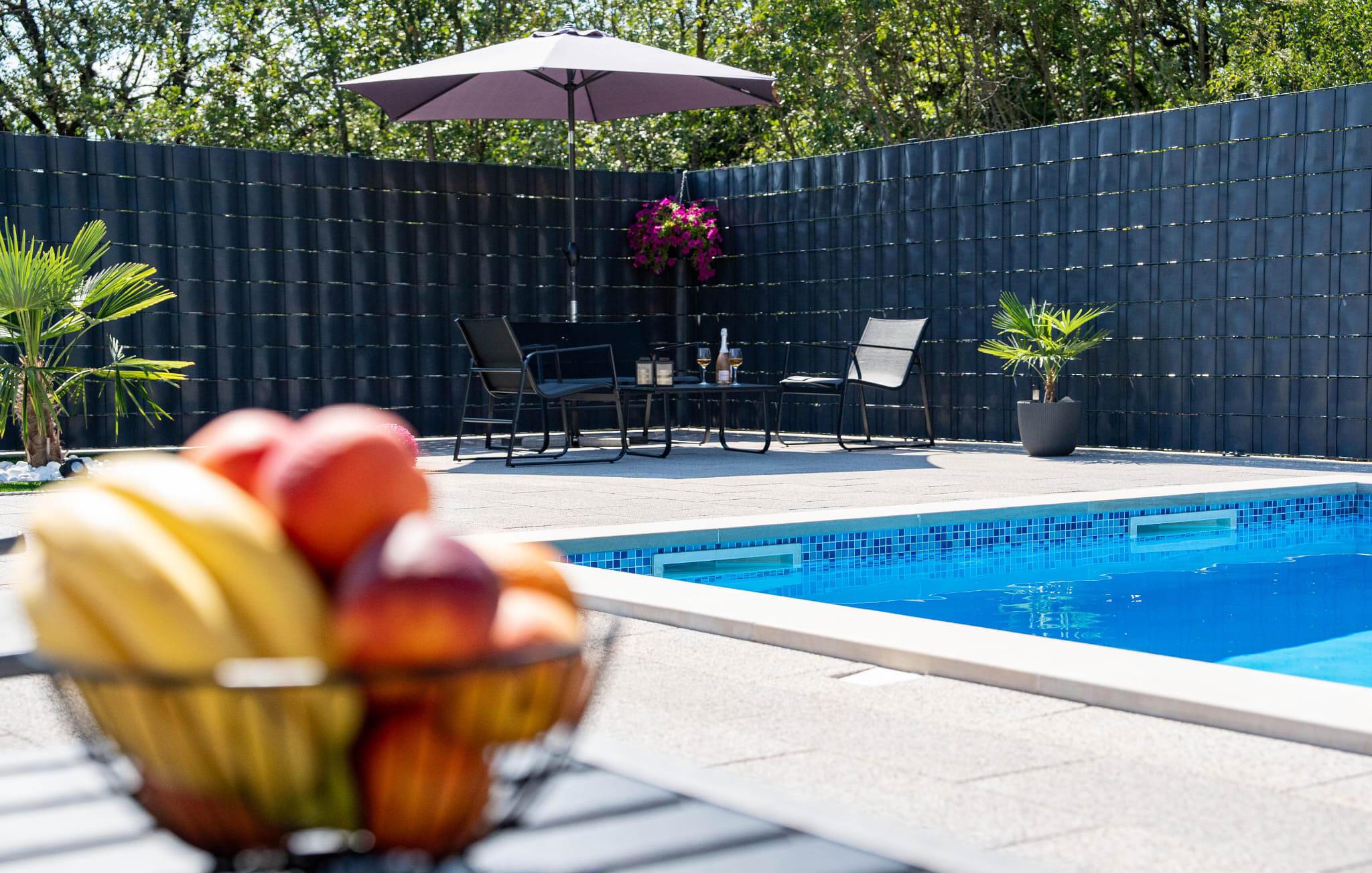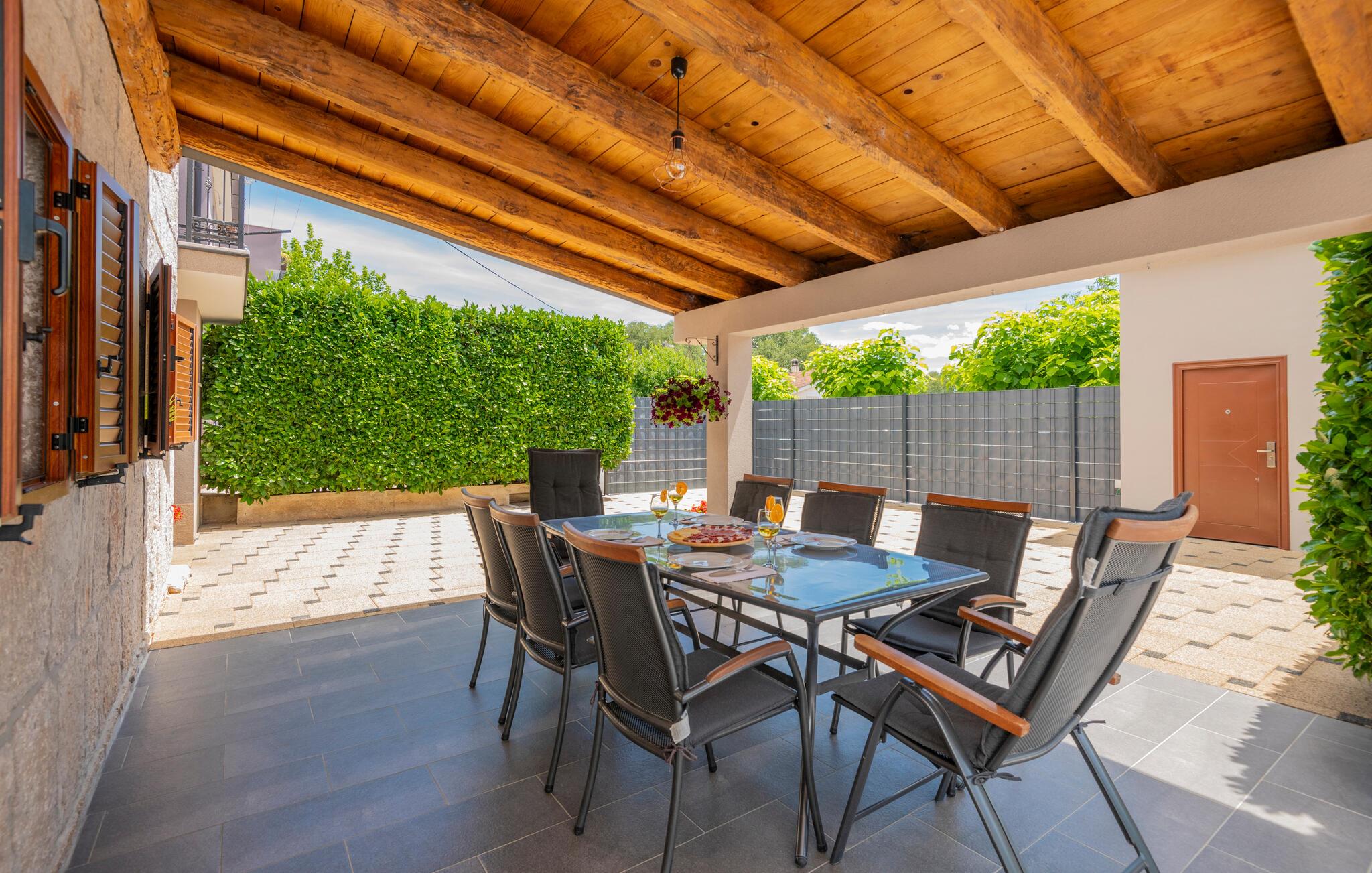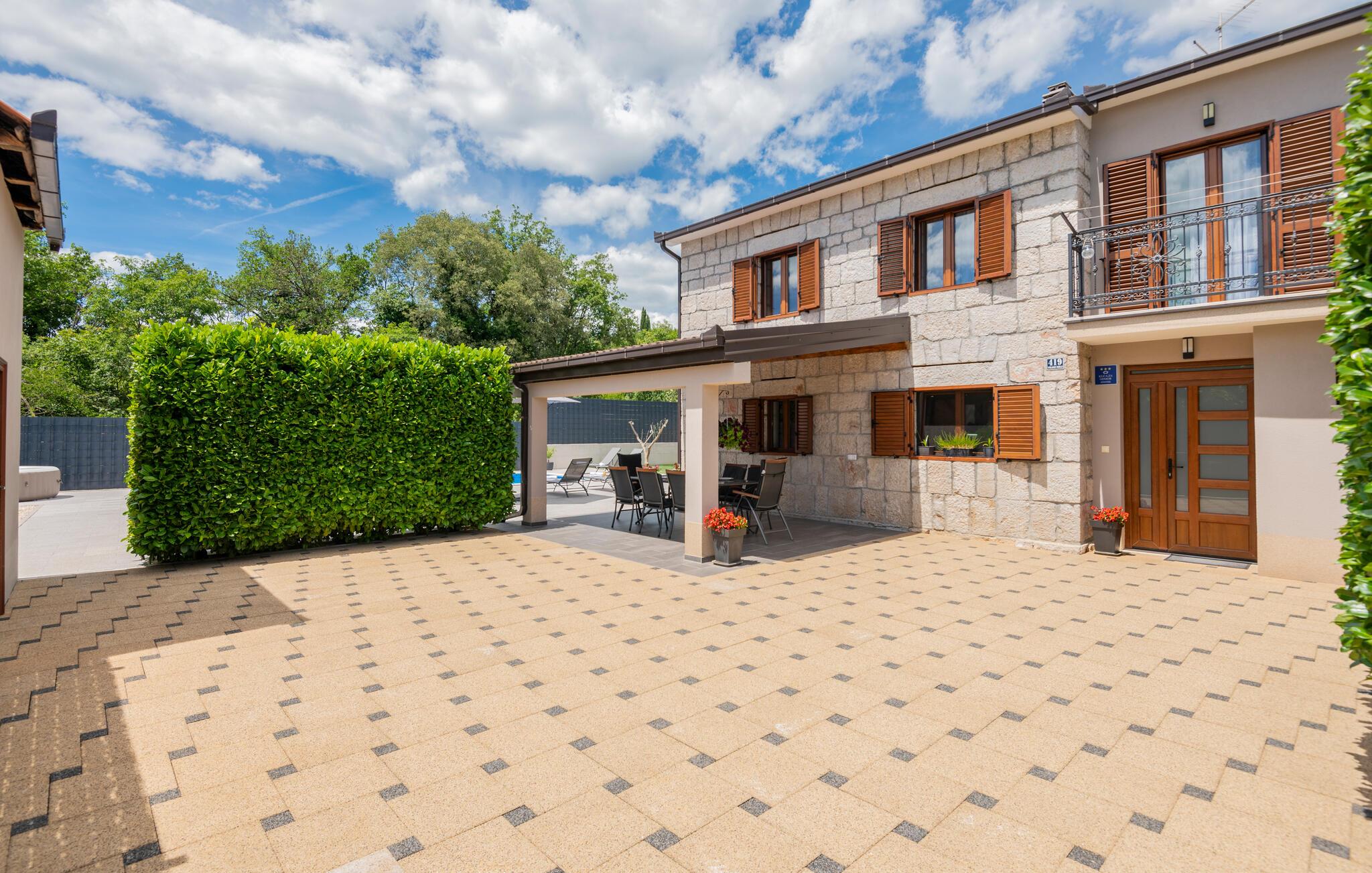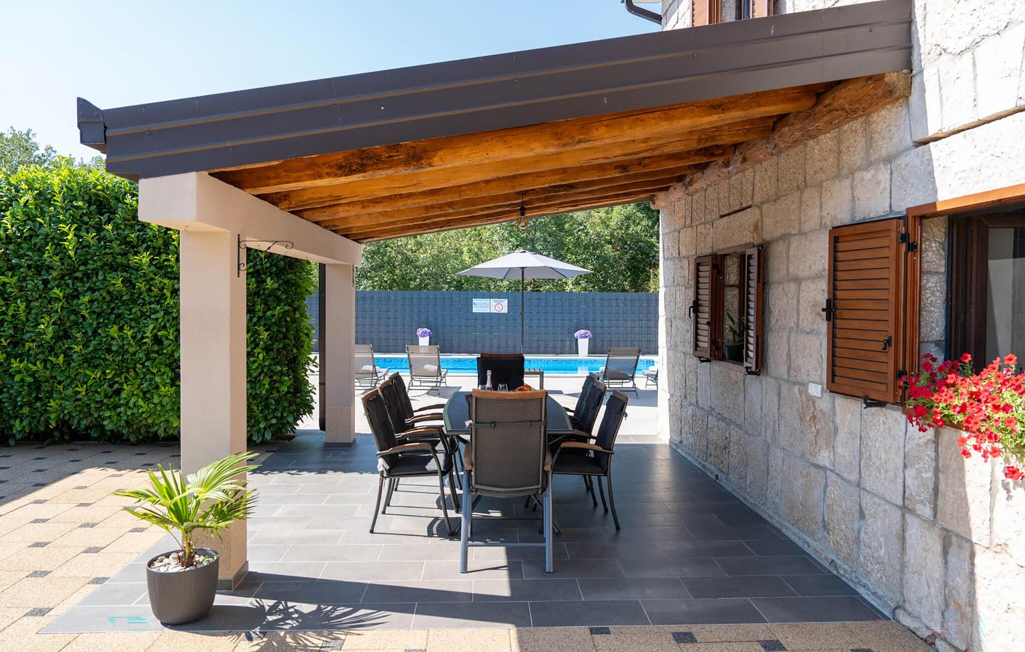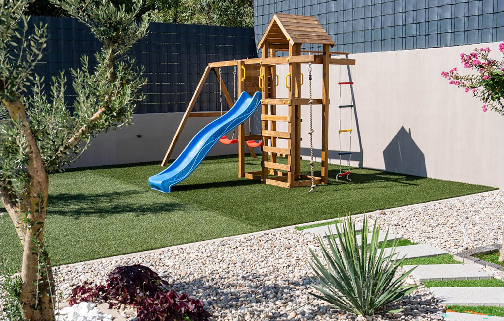 Det smukt indrettede hjem er ideelt til en stressfri familieferie. Forfrisk jer selv i poolen på de varme sommerdage eller slap af i spabadet foran huset. Det er også skønt at opholde sig i skyggen på terrassen. I haven finder I en grill, hvor I kan tilberede jeres yndlingsspecialiteter.