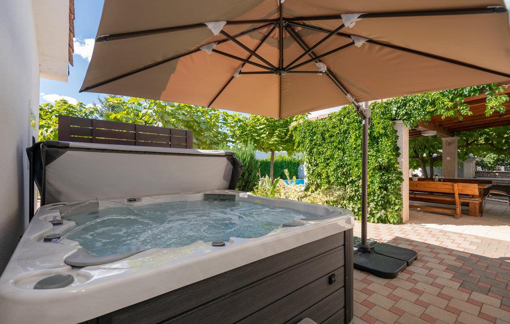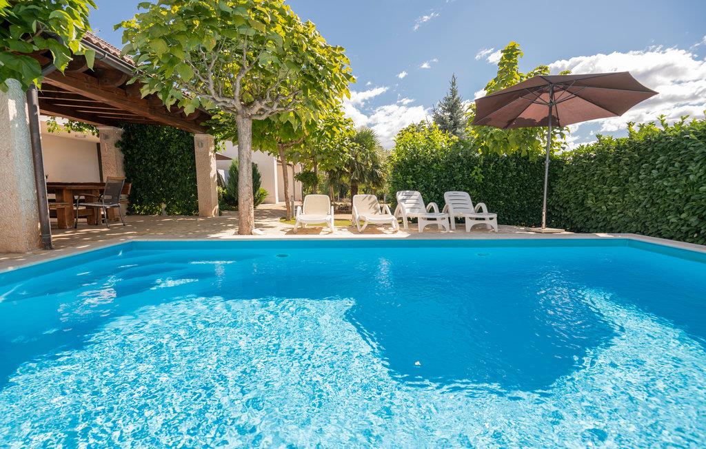 Forkæl jer selv med solrige dage i landlige omgivelser i dette komfortable feriehus med pool og spabad.